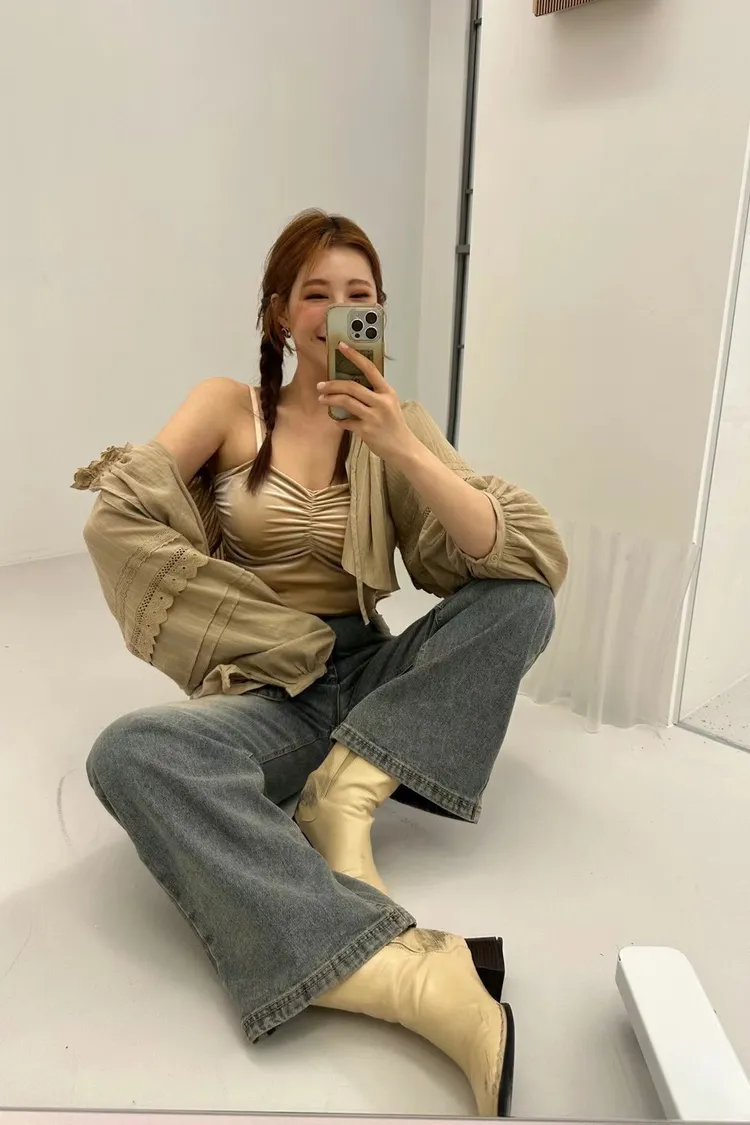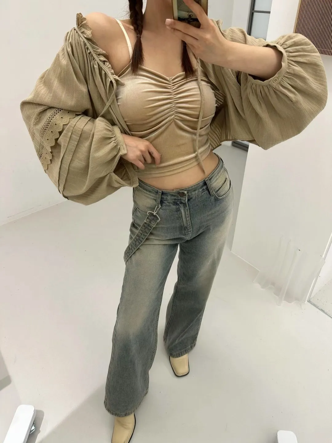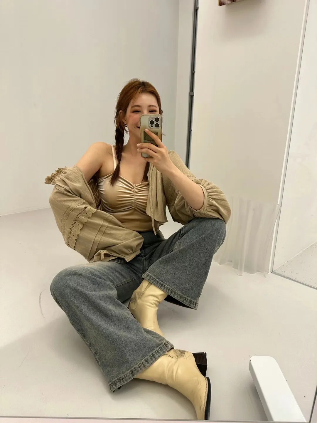 CS082桃心領胸抓皺up絨面光澤小可愛 咖 藍 黑 奶茶 線上價$410 回放價$460