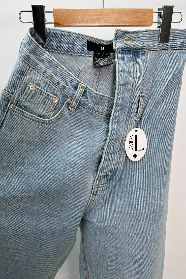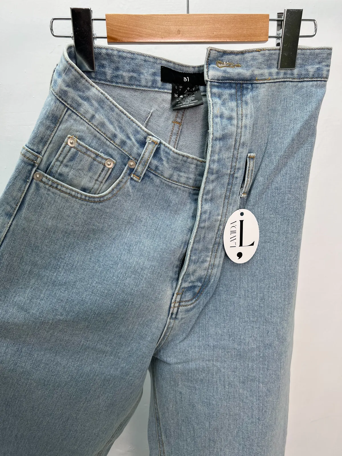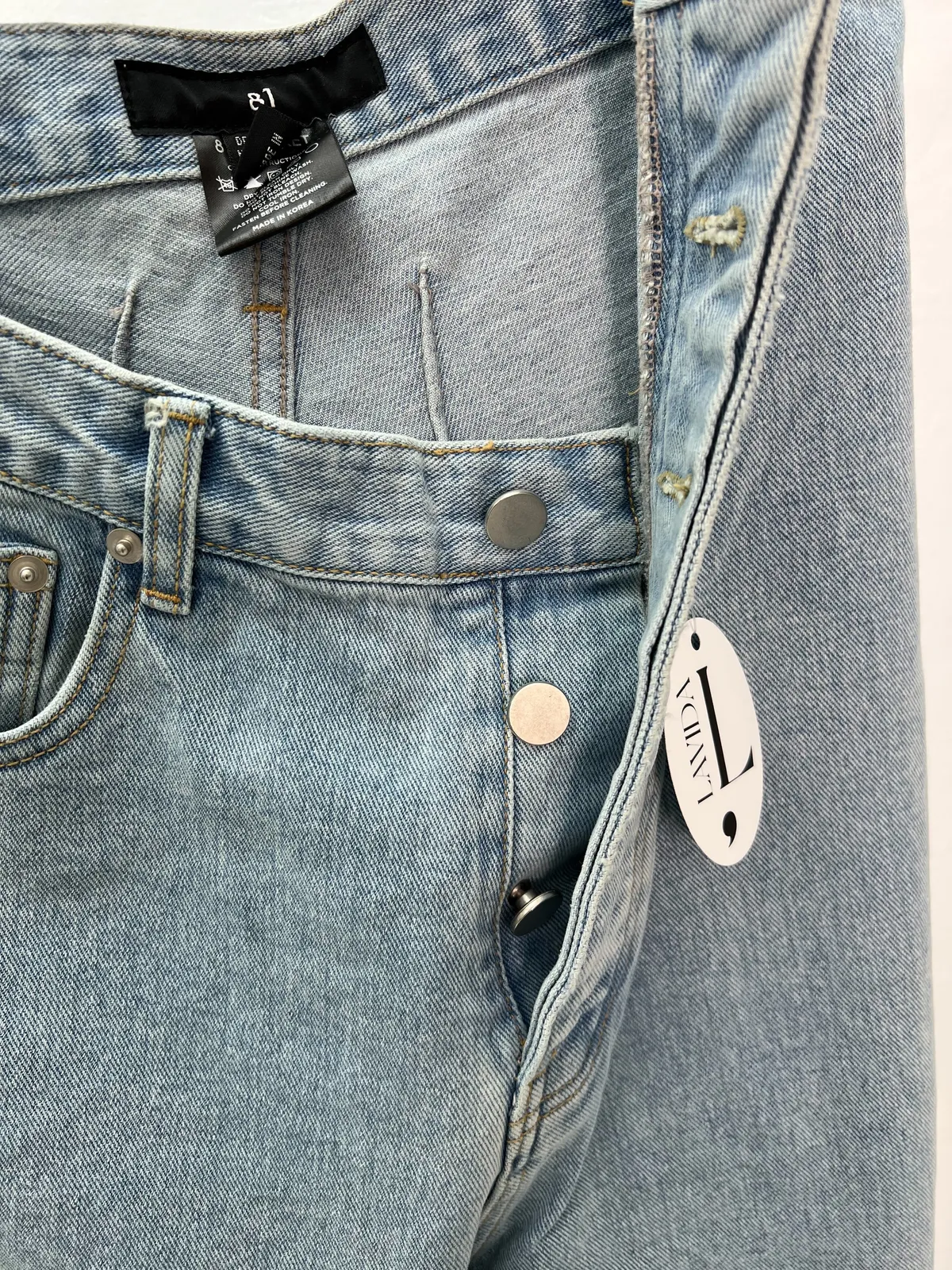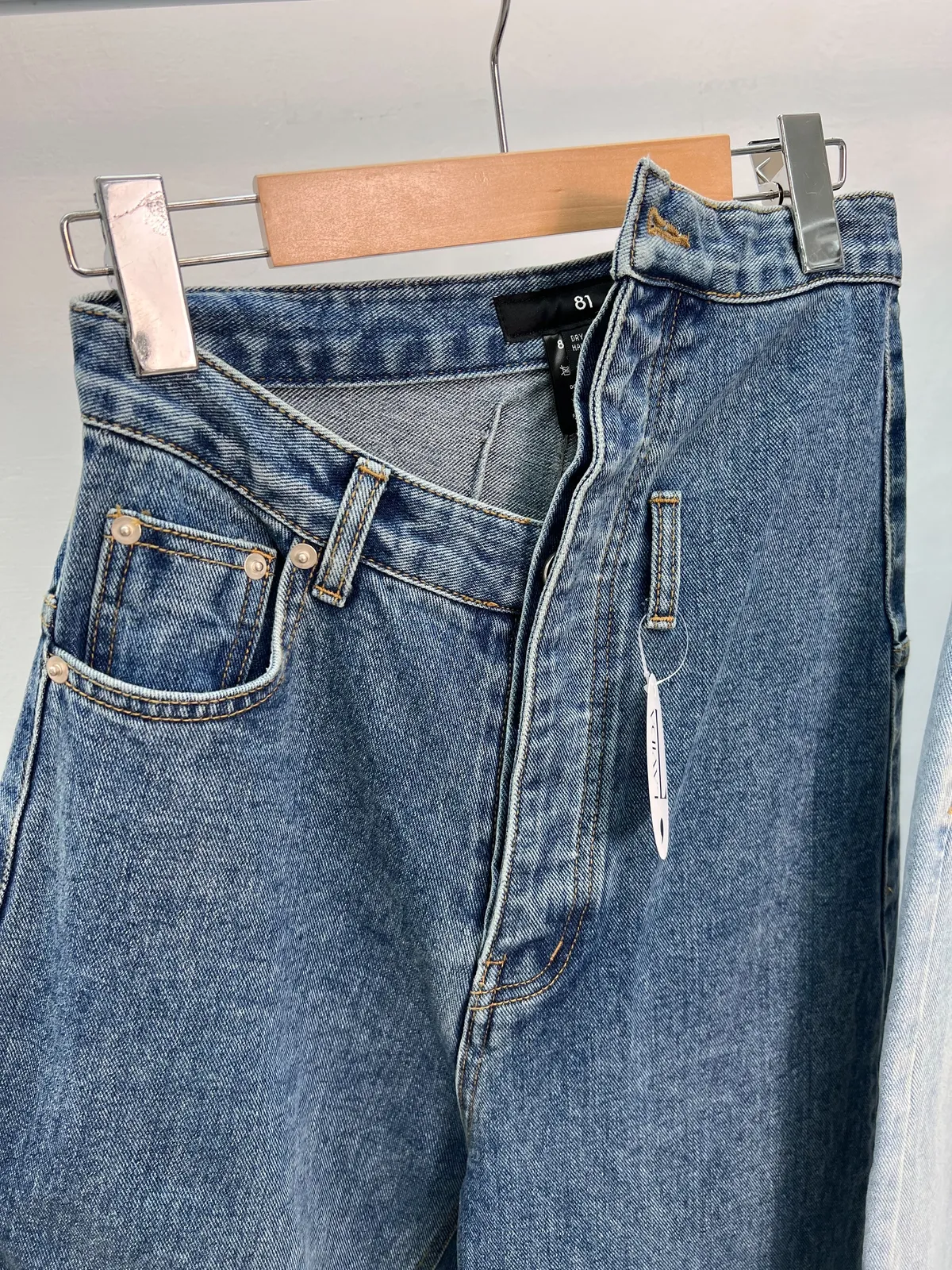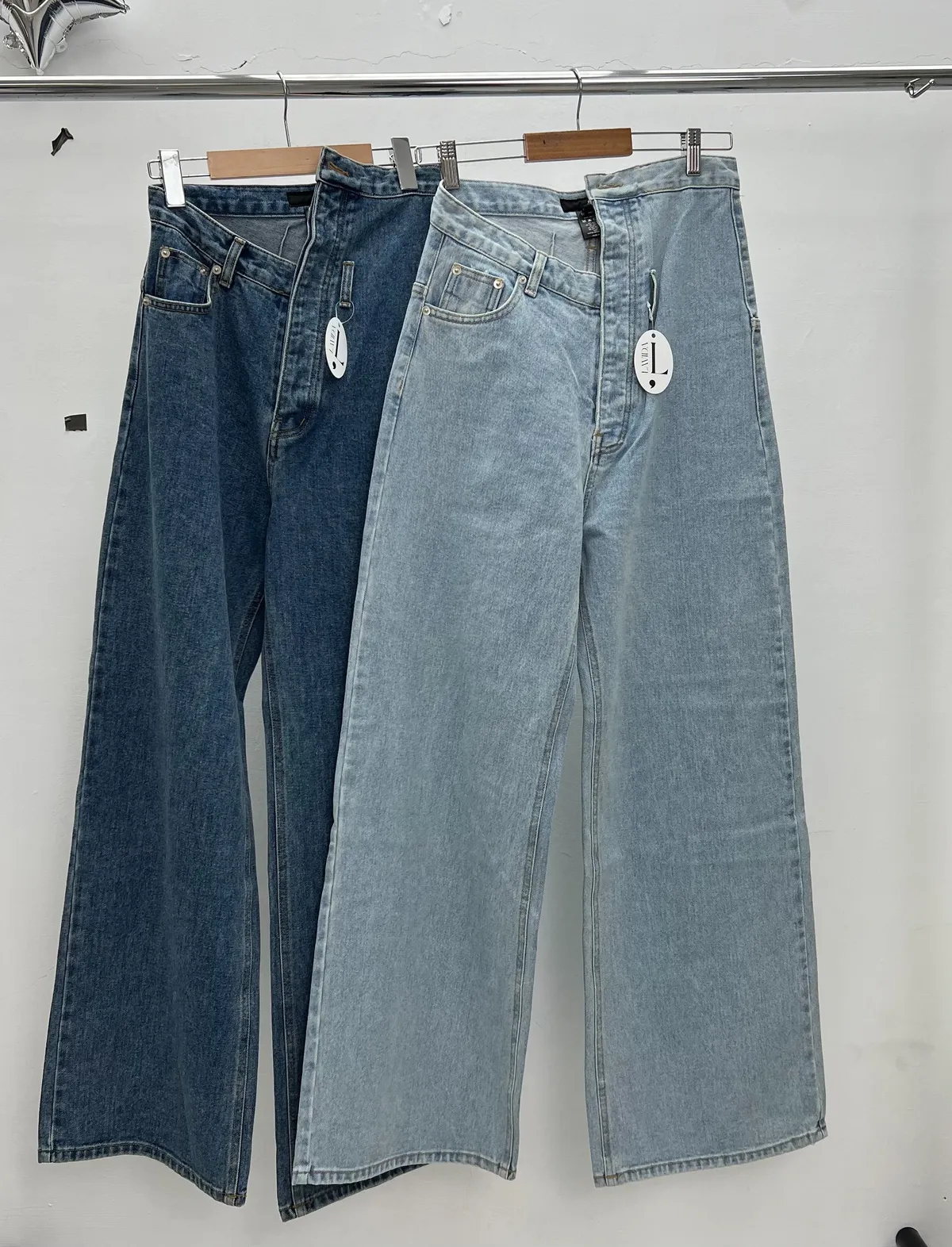 CS085設計款翻腰牛仔長褲 淺藍 深藍 S M L 線上價$1440 回放價$1490