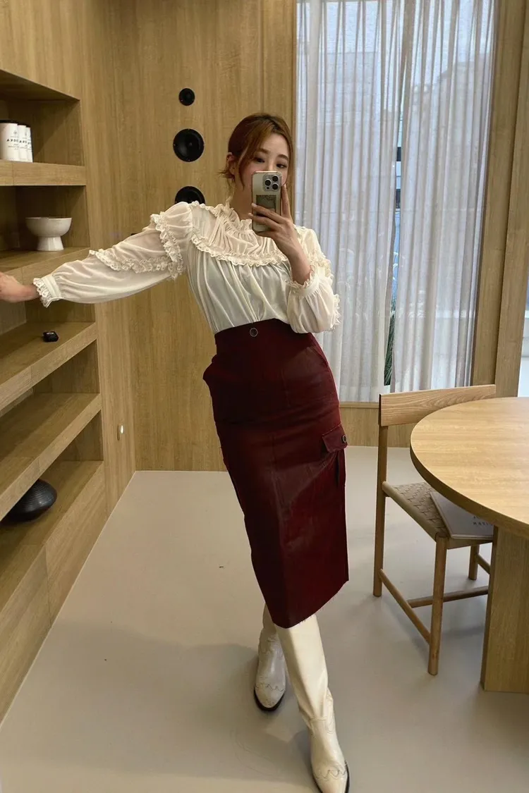 CS100復古鉛筆皮裙 紅 咖 黑 線上價$1470 回放價$1520