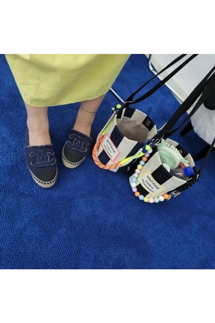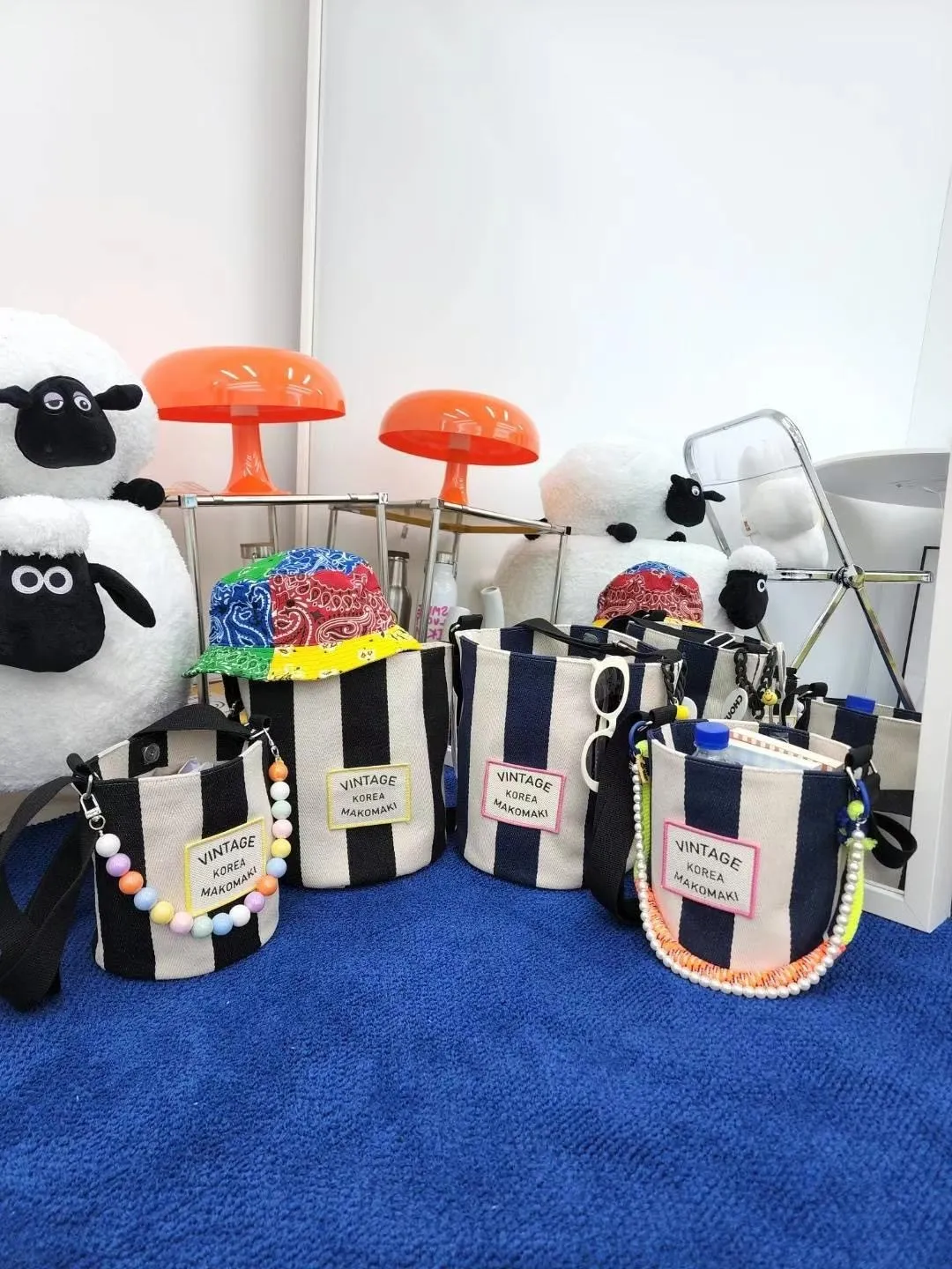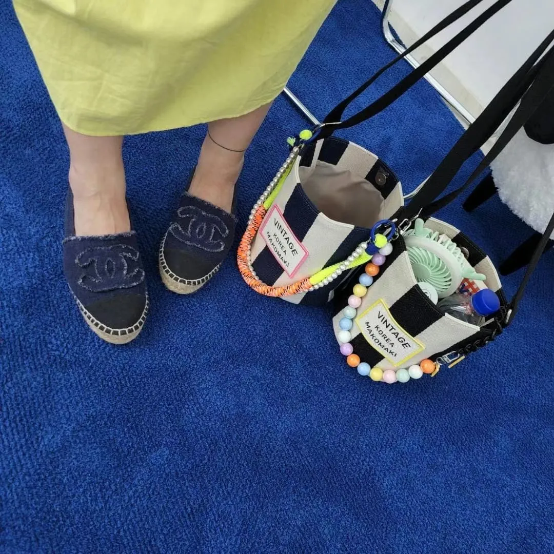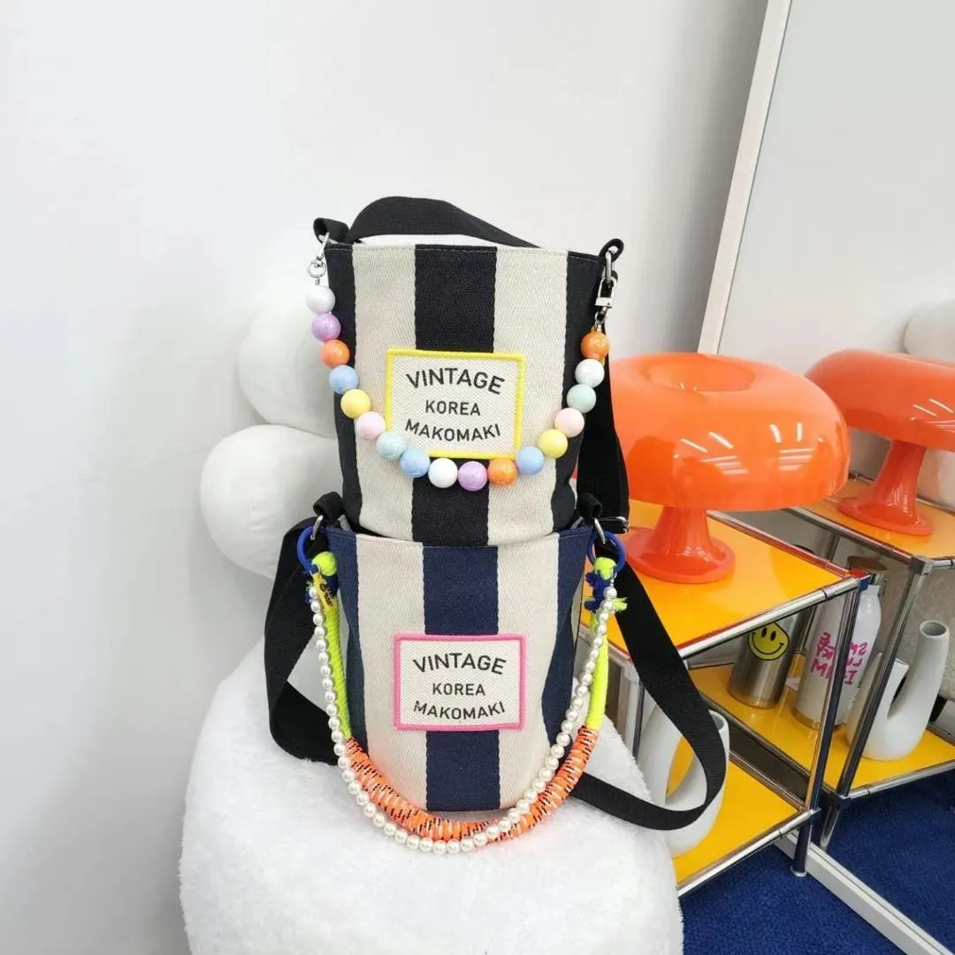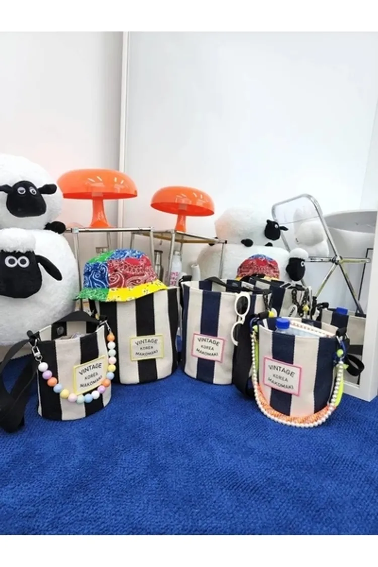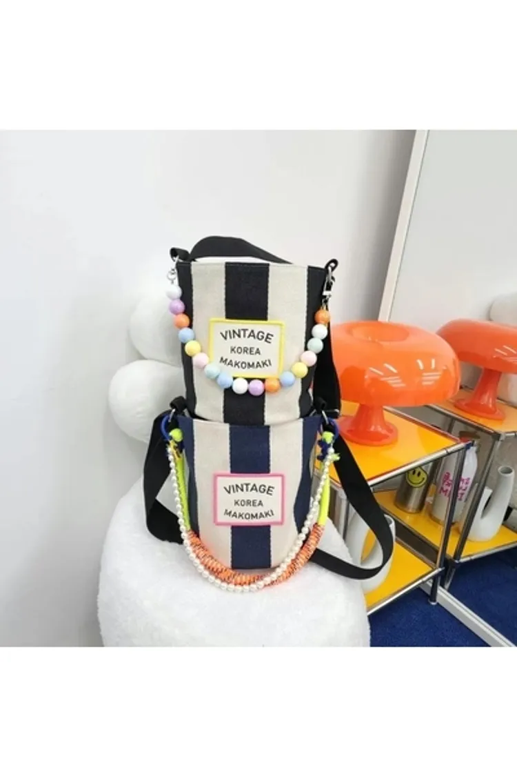 CS1001條紋Vintage帆布水桶包小款 藍 黑 $800