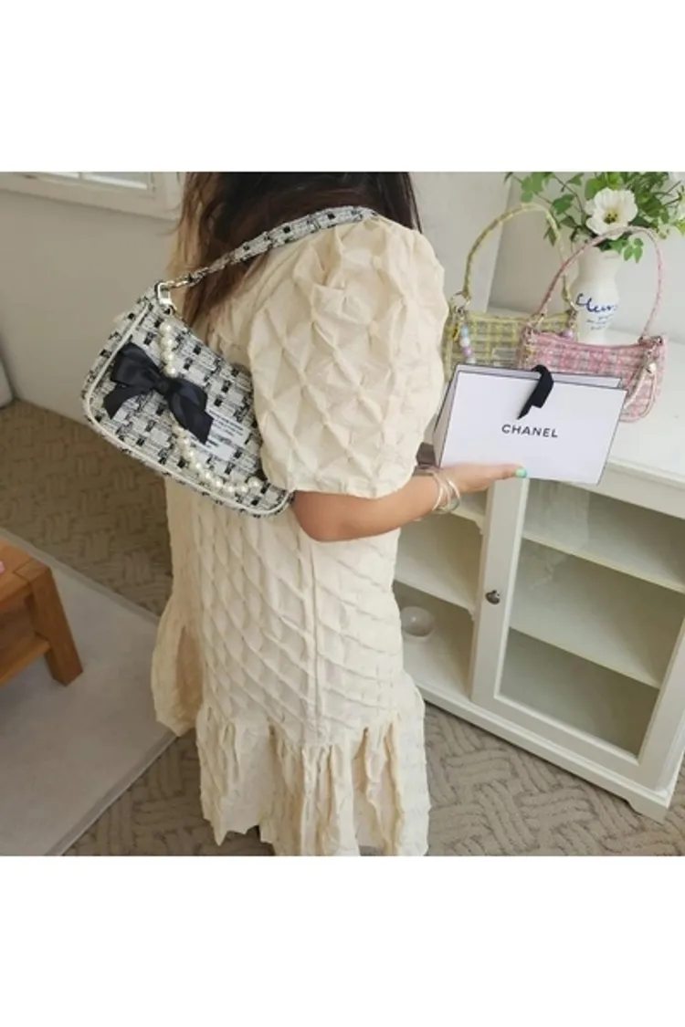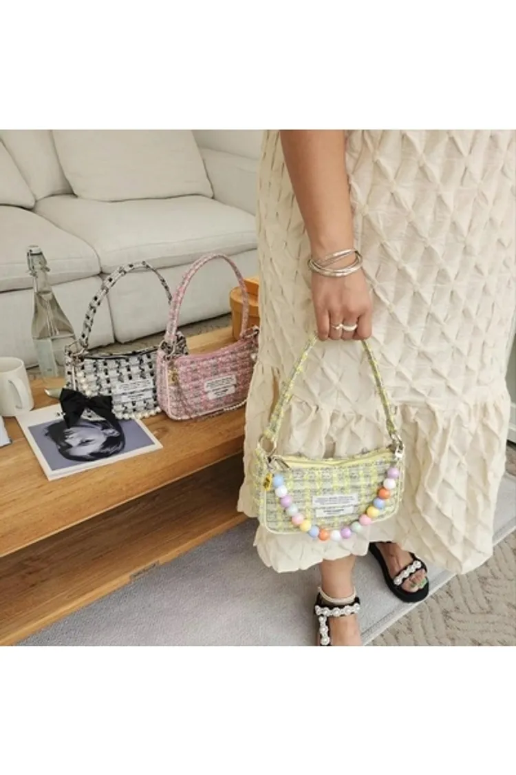CS1005精緻編織小香風腋下包 黑 粉 黃 $960
