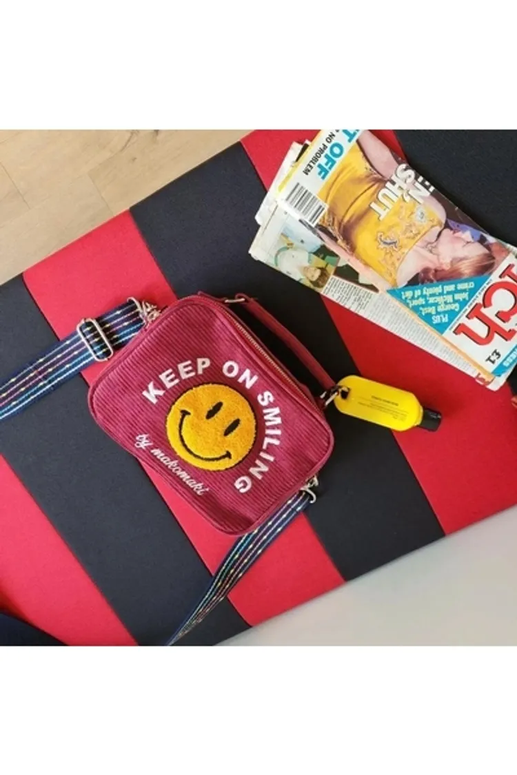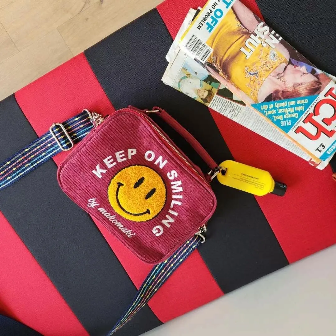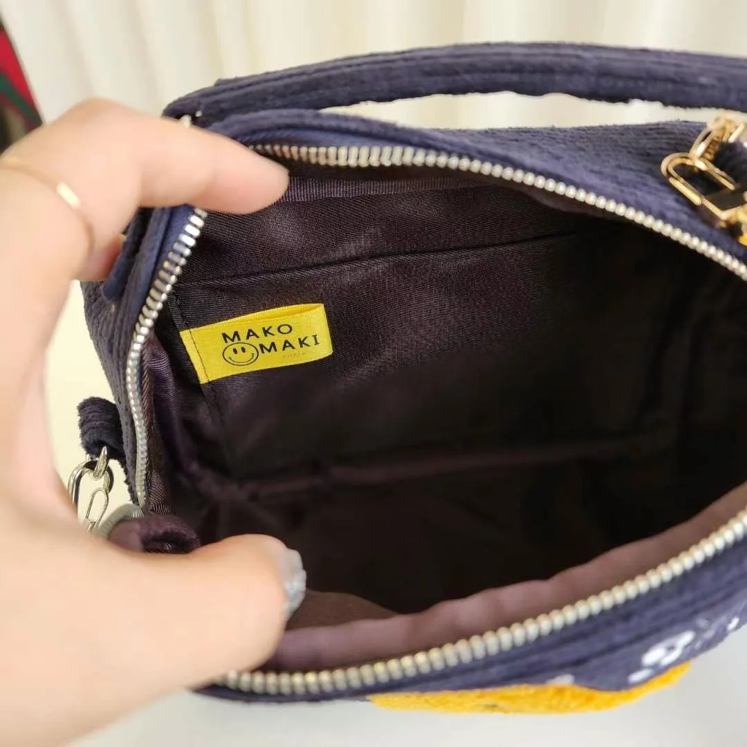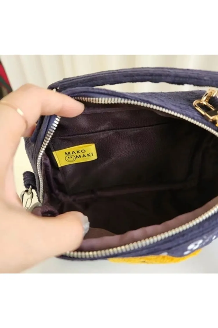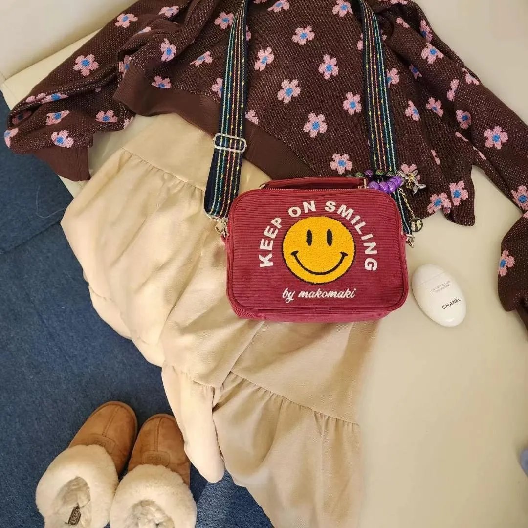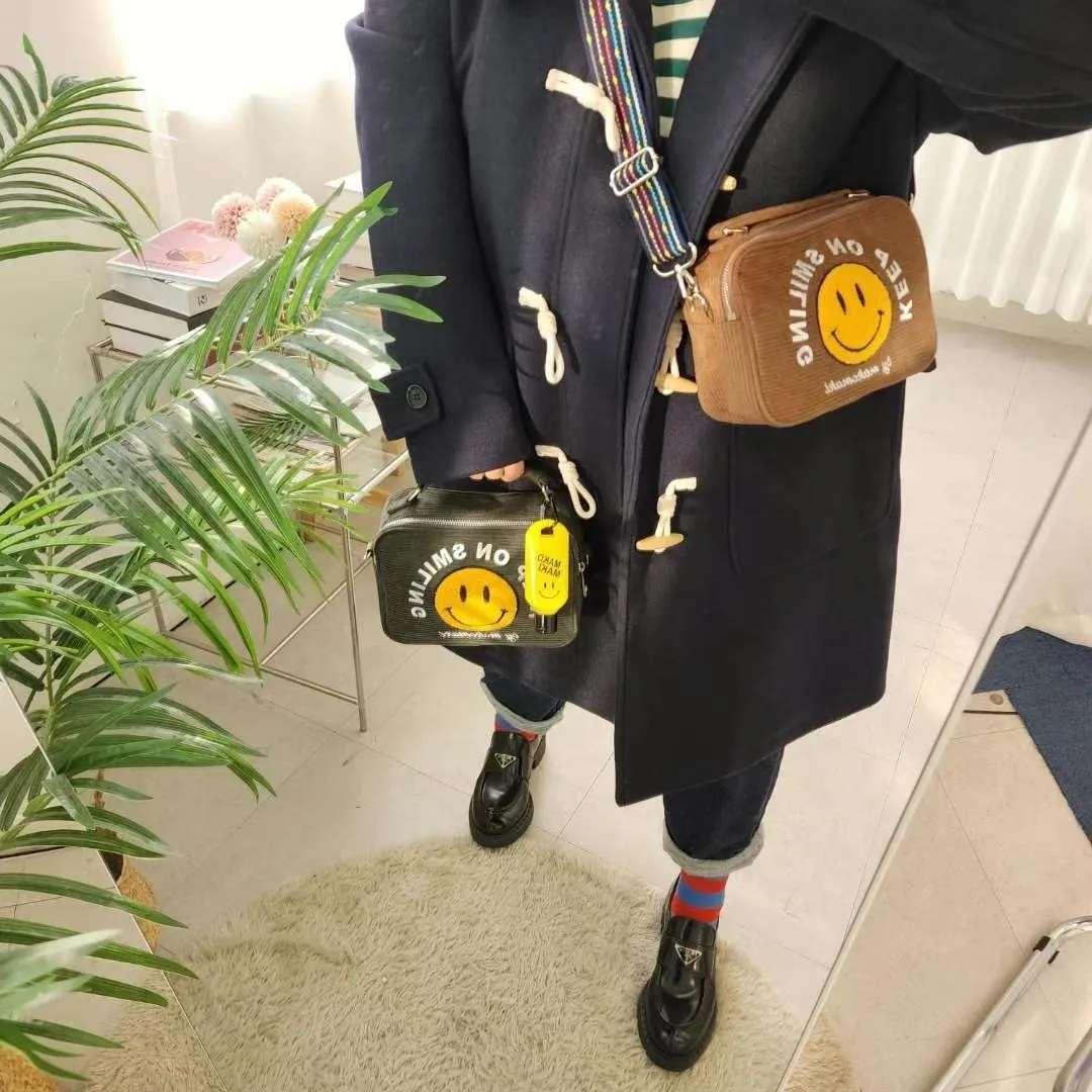 拉鍊封口 有提帶有背帶 可愛毛呢笑臉 刺繡英文 22*16*8公分