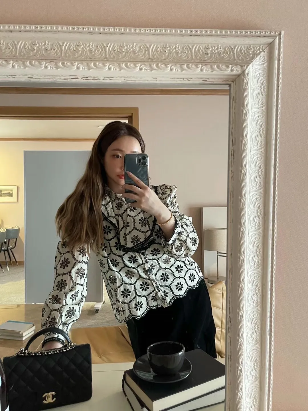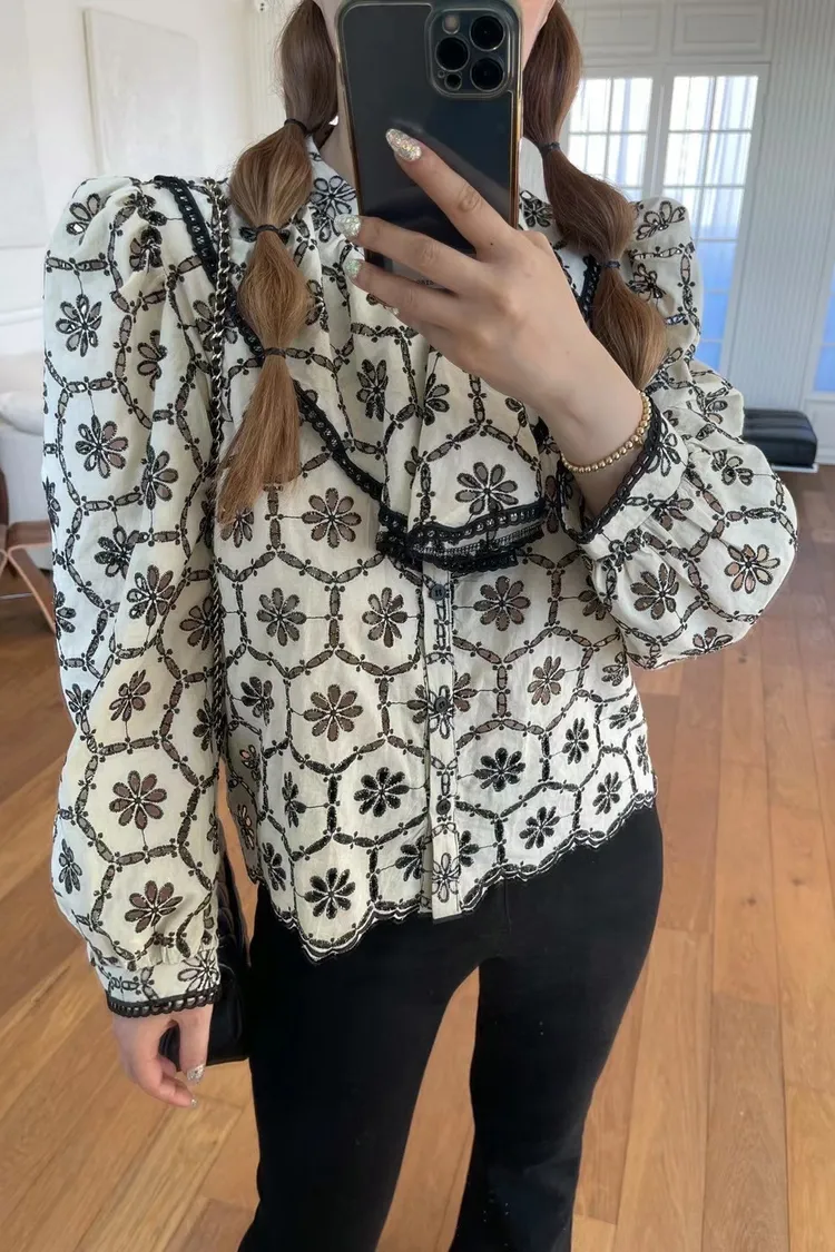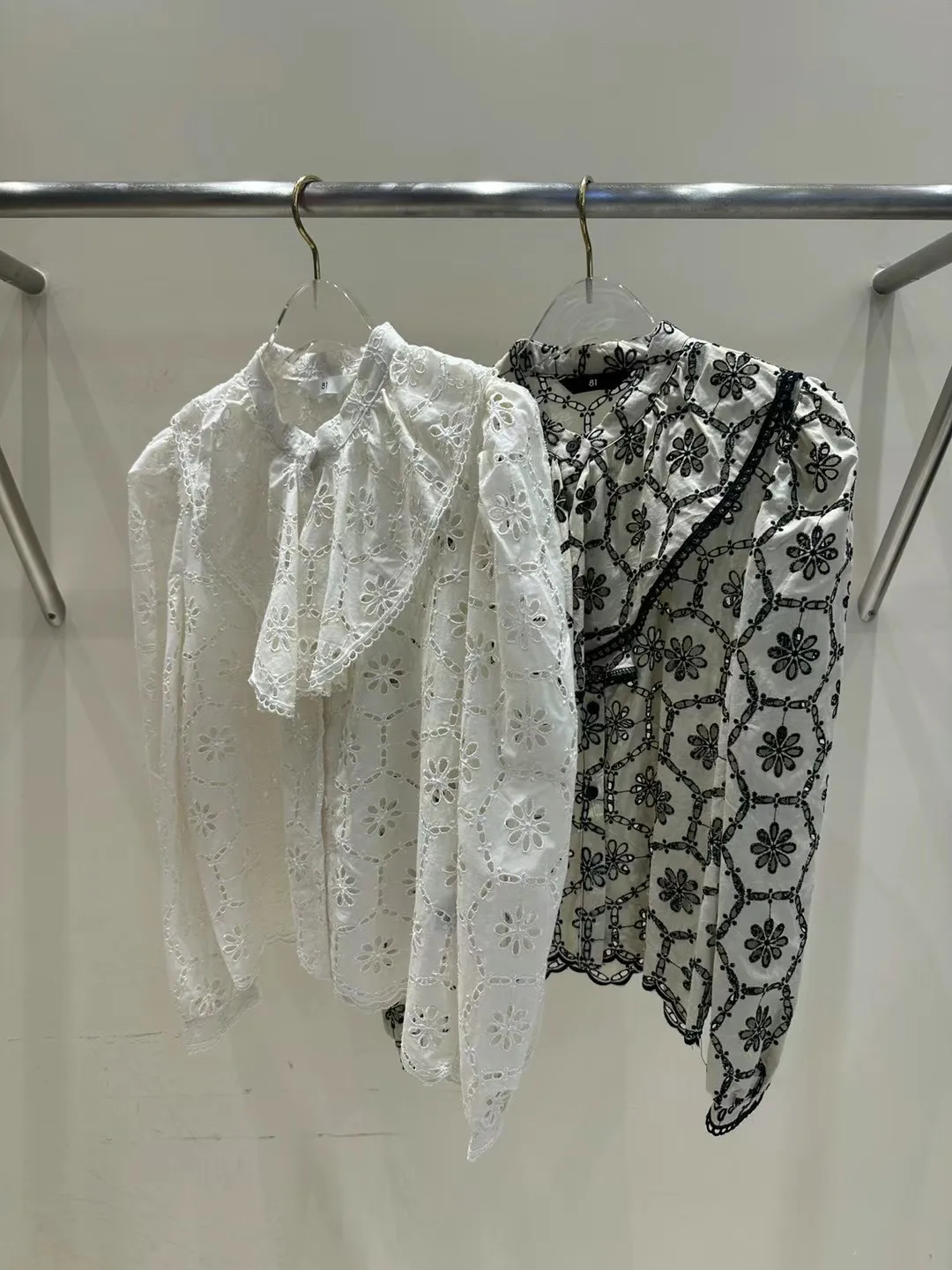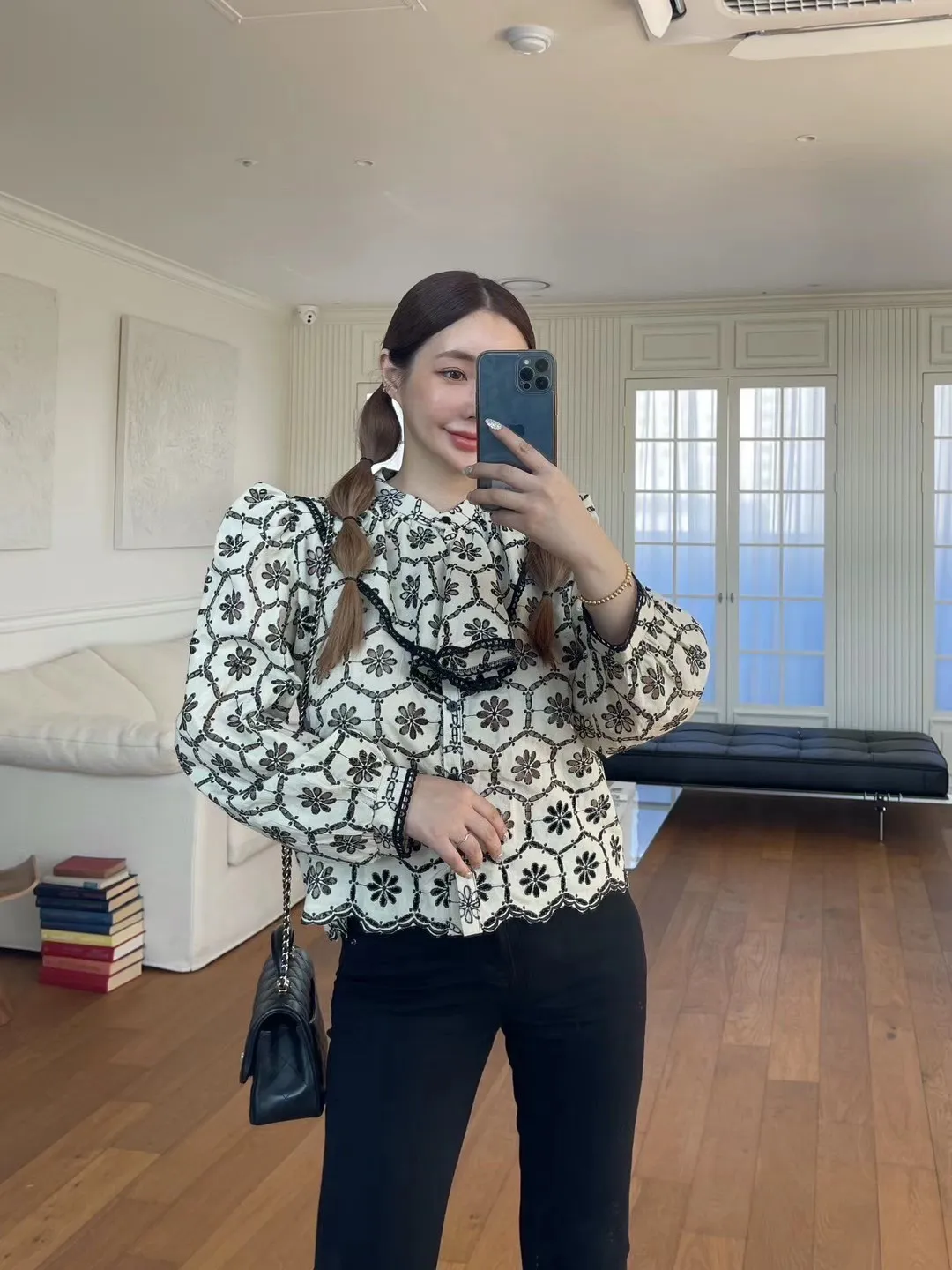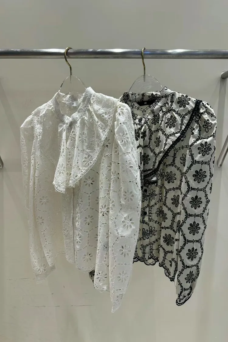 CS101宮廷蕾絲燒花洞洞美衣 米 黑 線上價$1699 回放價$1749