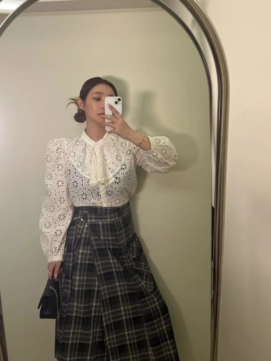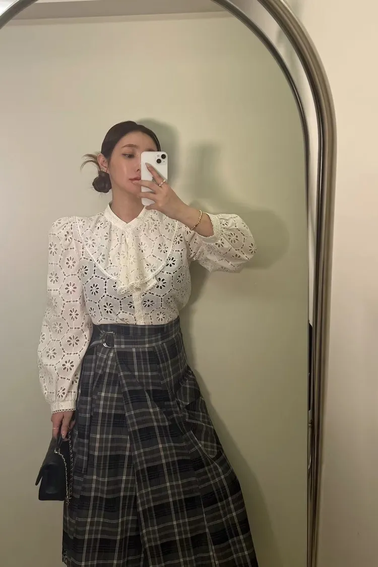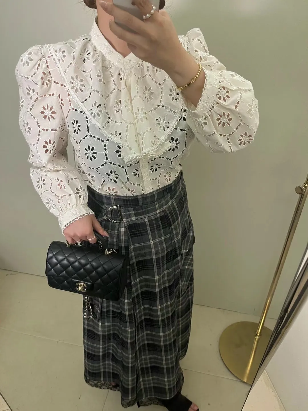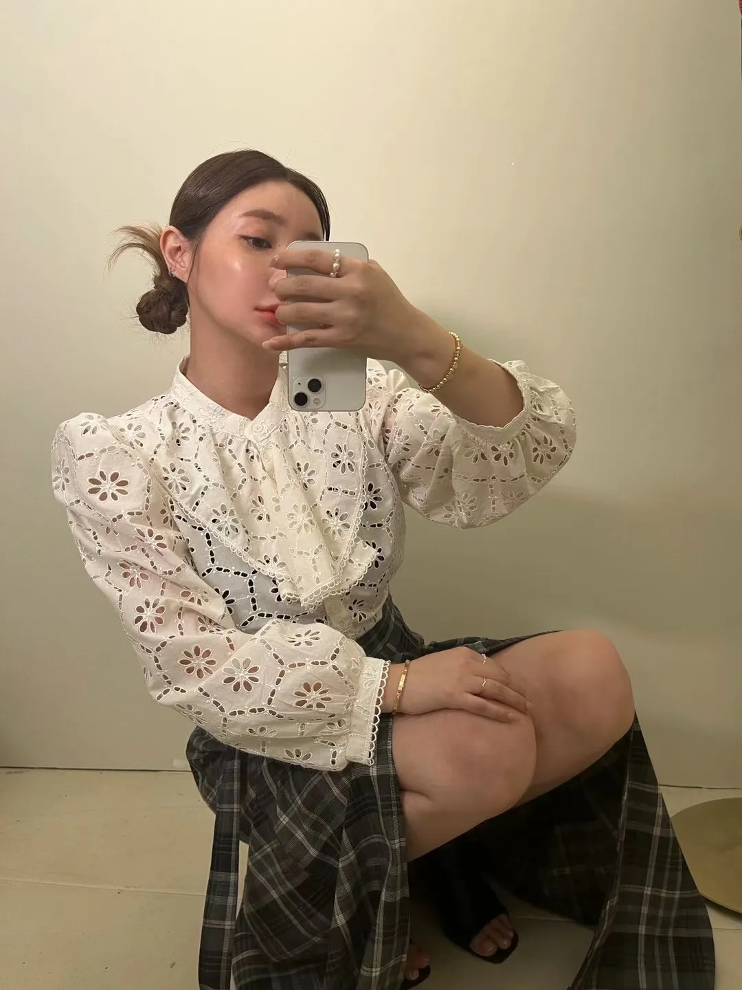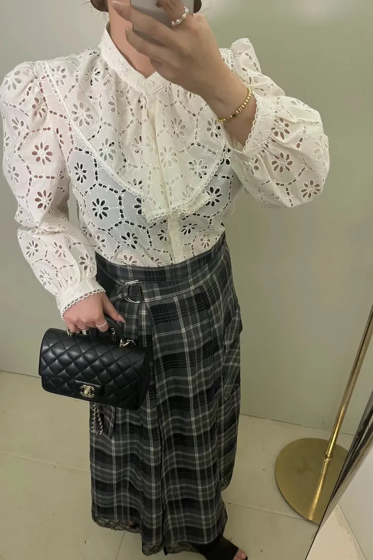 CS101宮廷蕾絲燒花洞洞美衣 米 黑 線上價$1699 回放價$1749