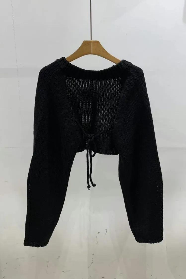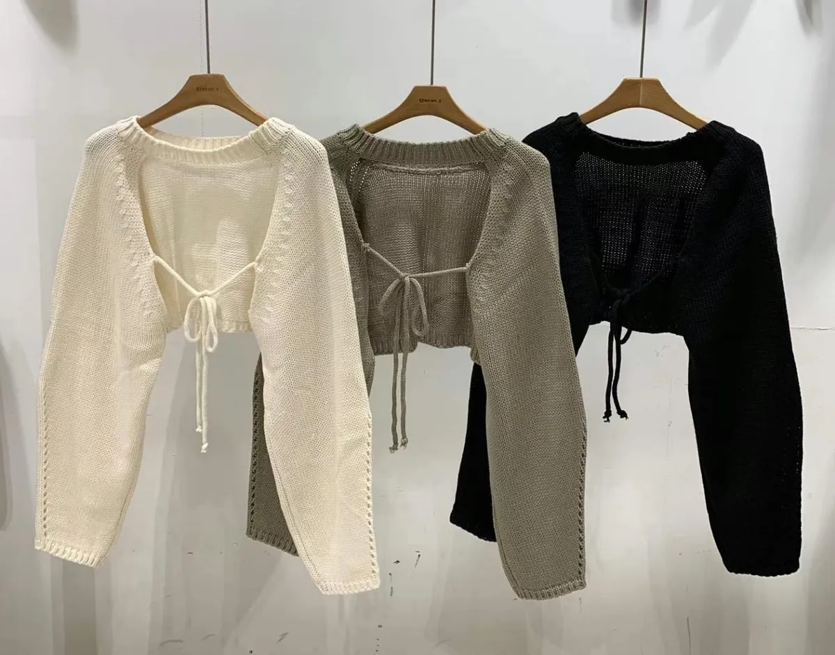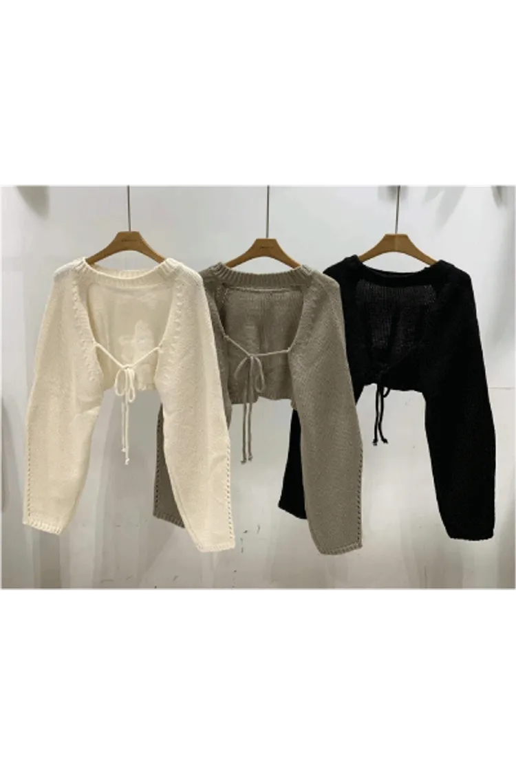CS1023胸前圓領手袖簍空小罩衫 白 綠 黑 $380