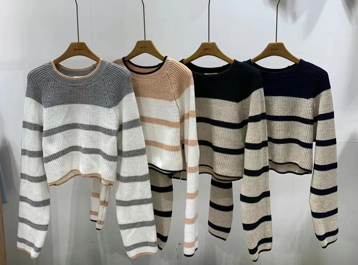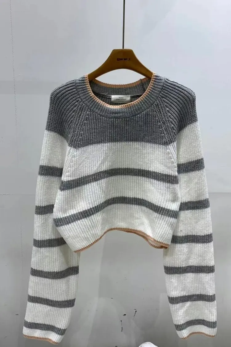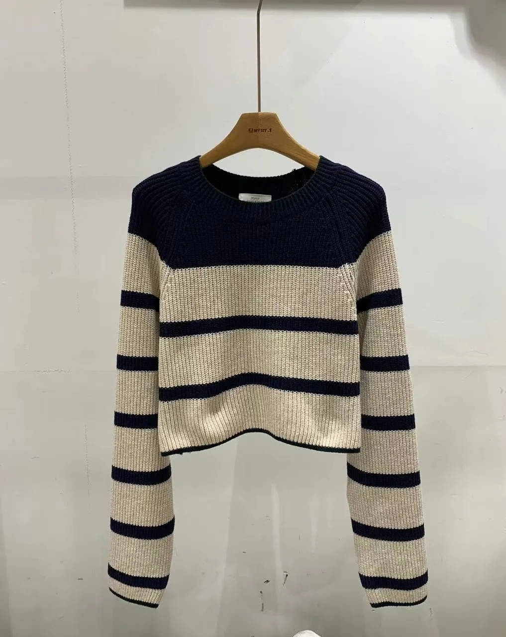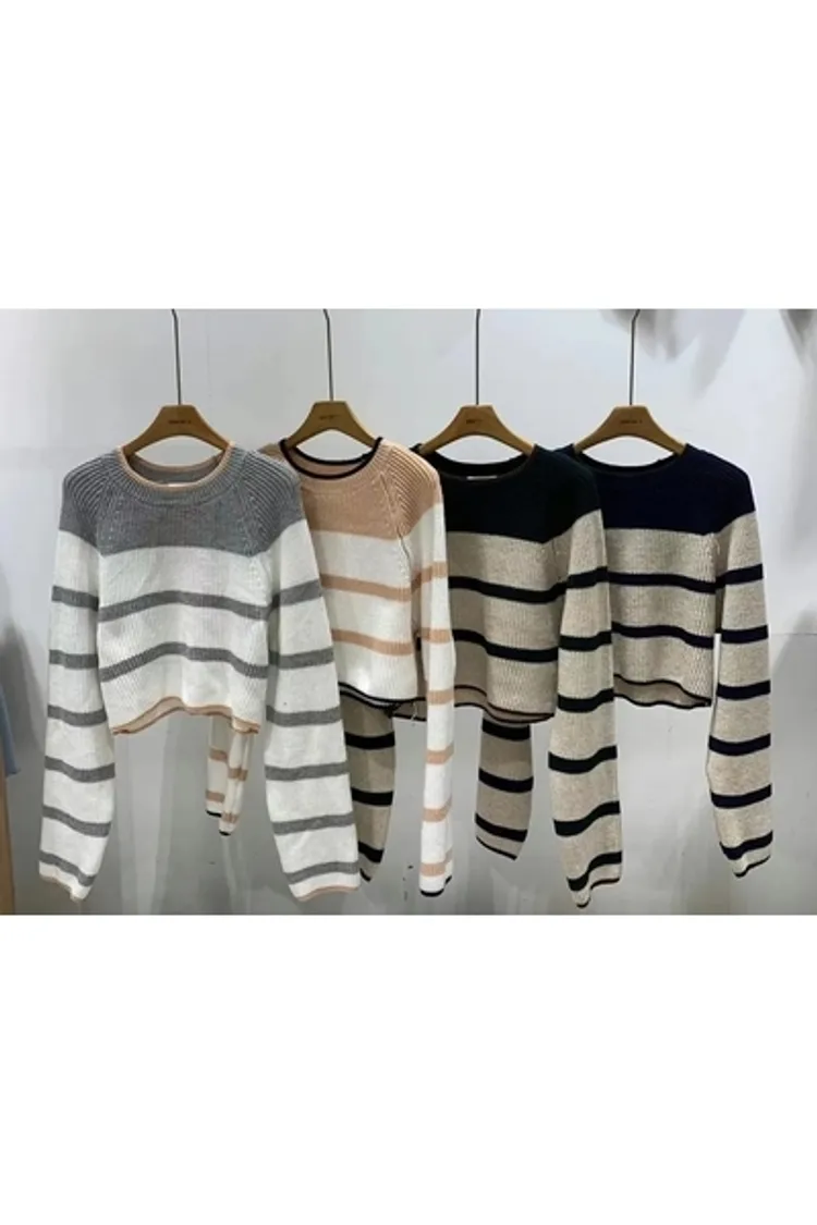 CS1035條紋針織短版長袖上衣 藍 灰 綠 奶茶 $480