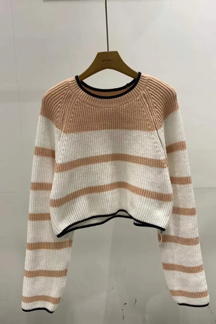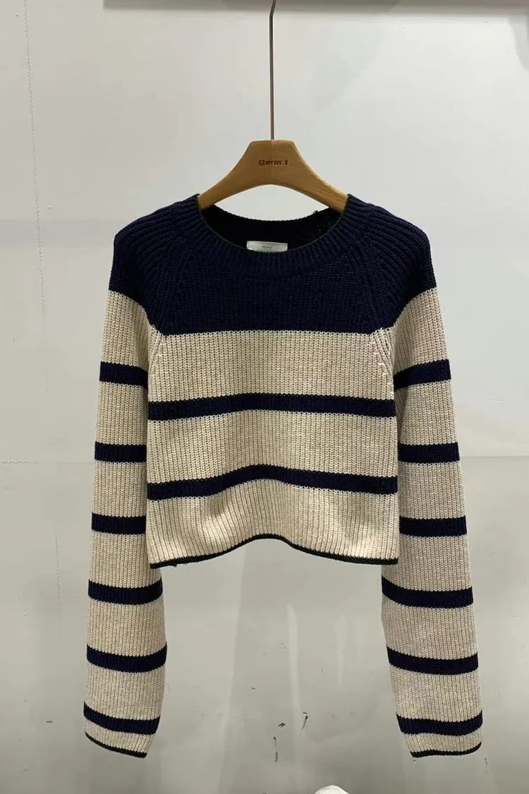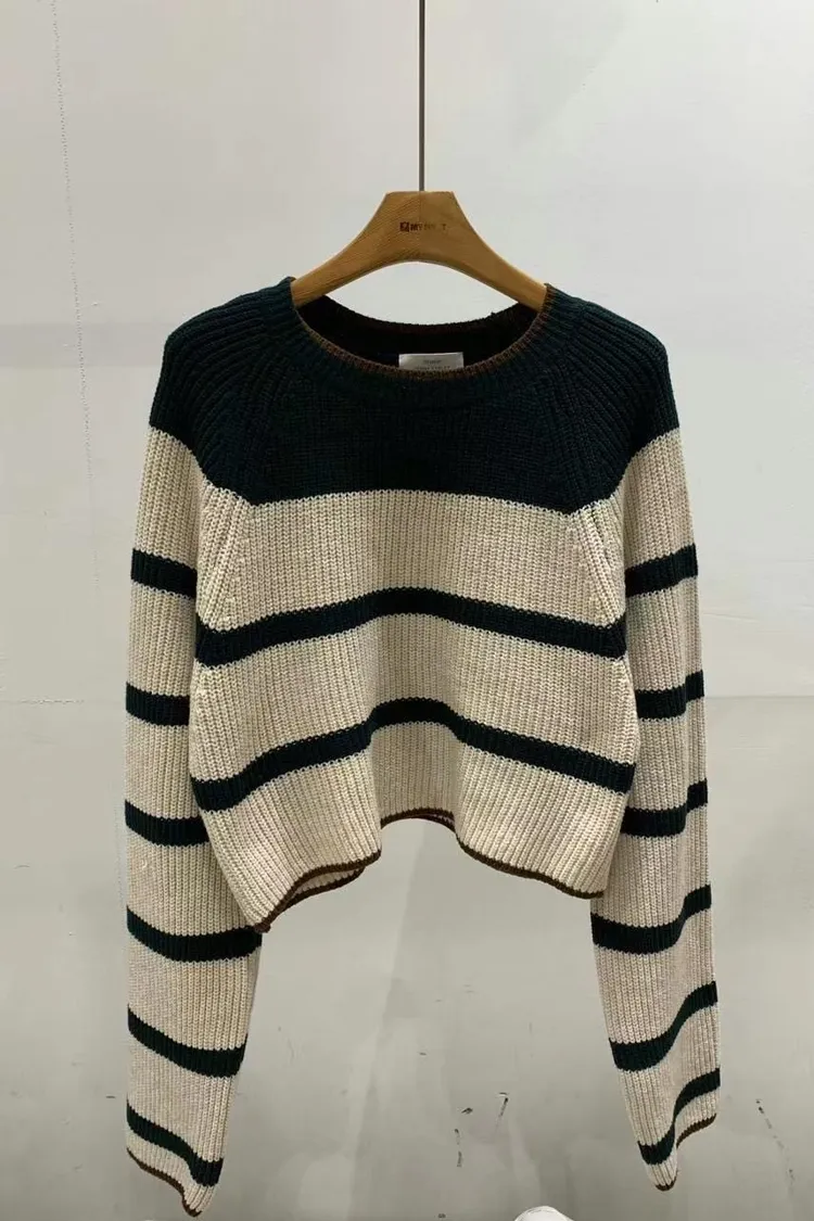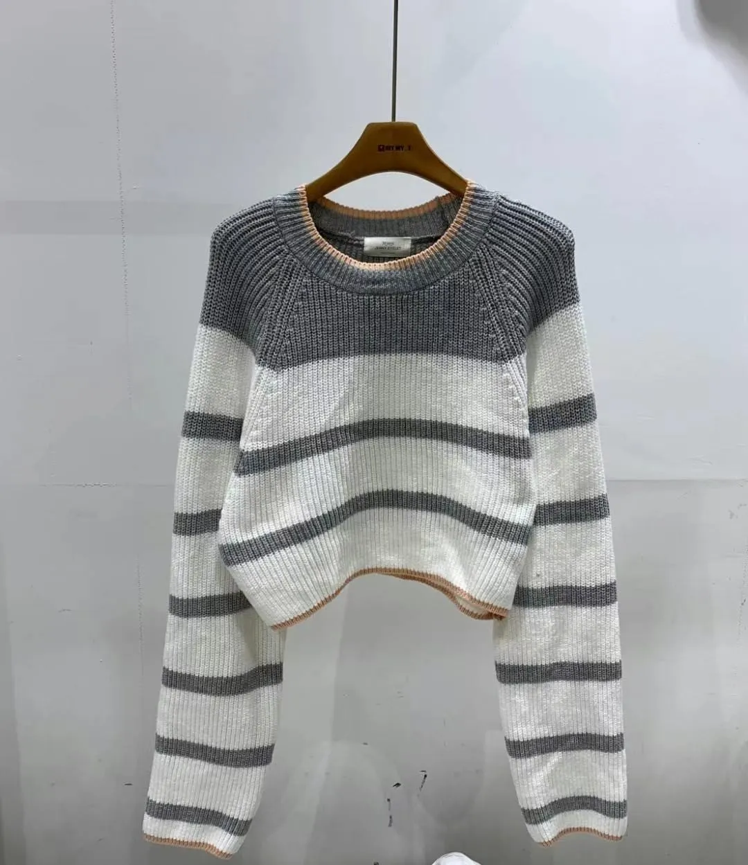 CS1035條紋針織短版長袖上衣 藍 灰 綠 奶茶 $480