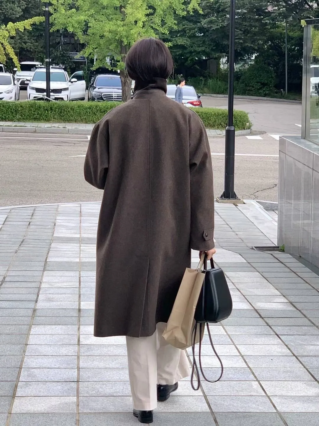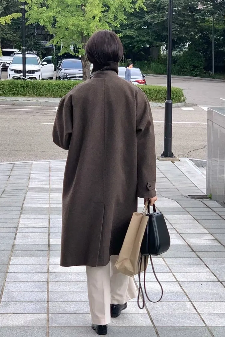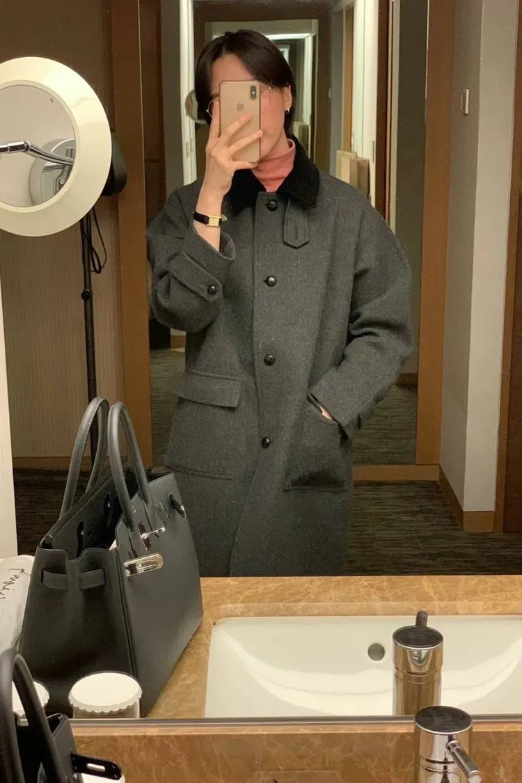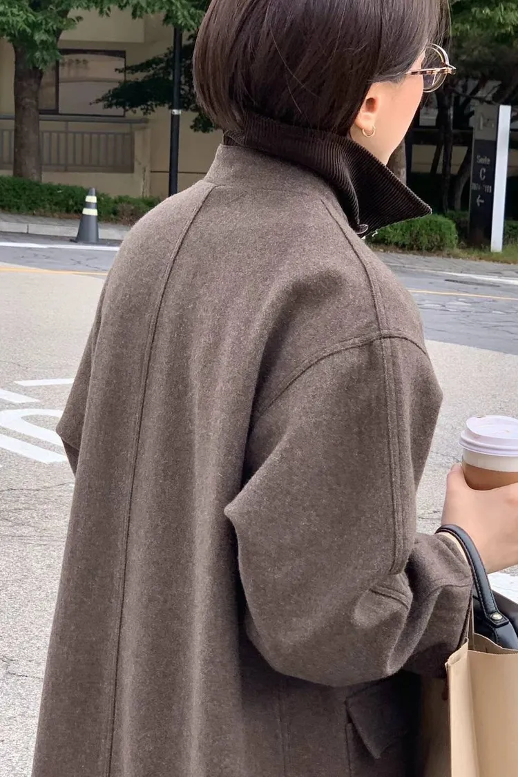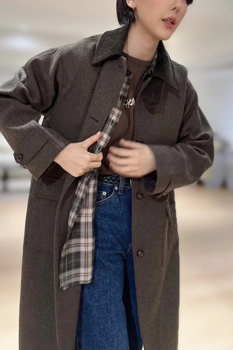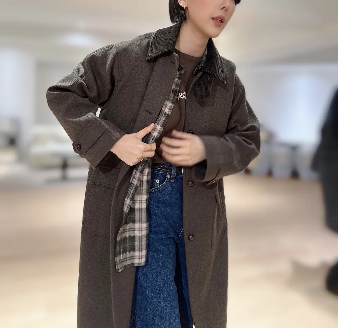 CS1041跳色翻領手工羊毛外套 咖 灰 線上價$3650 官網價$3680