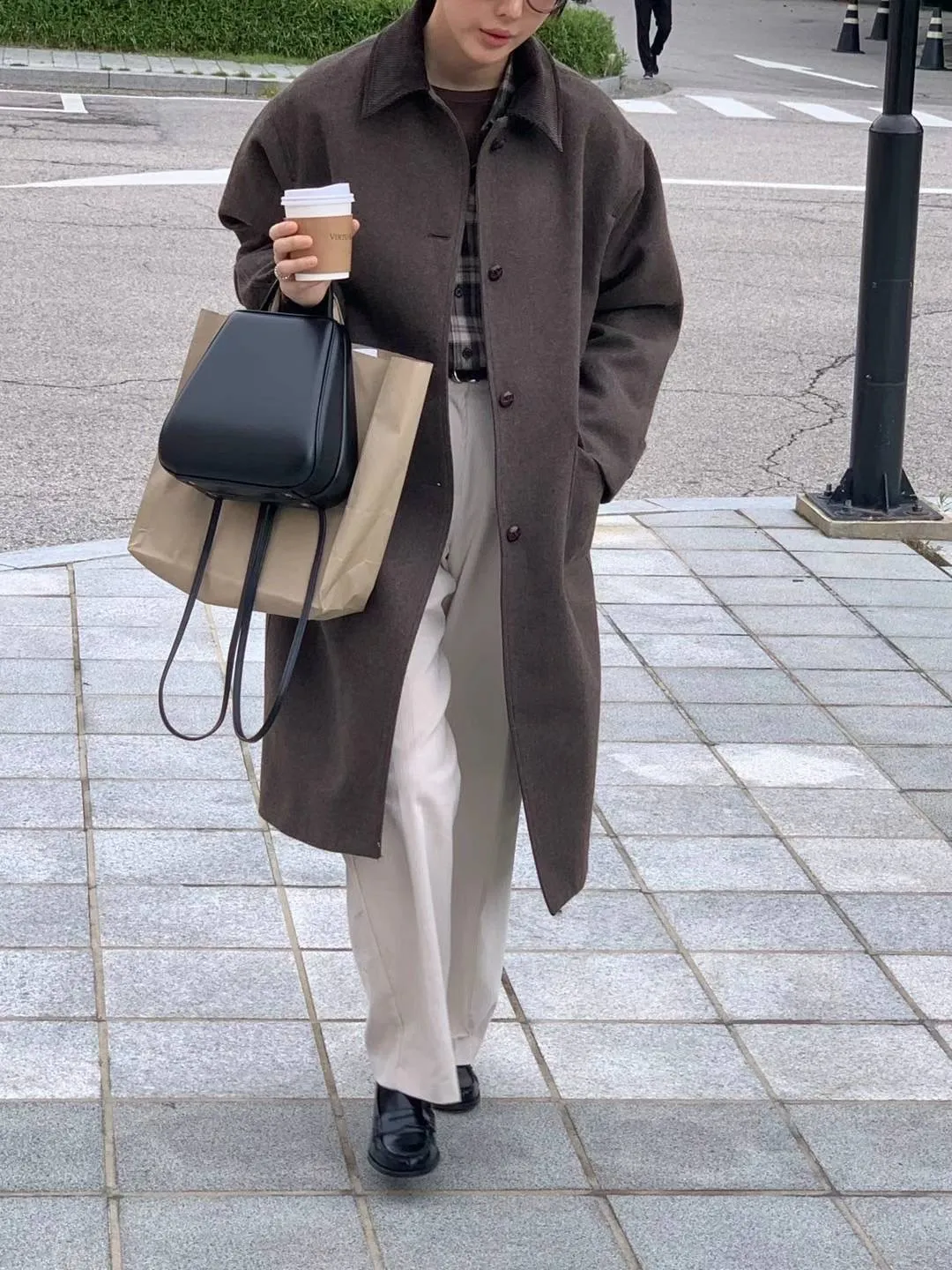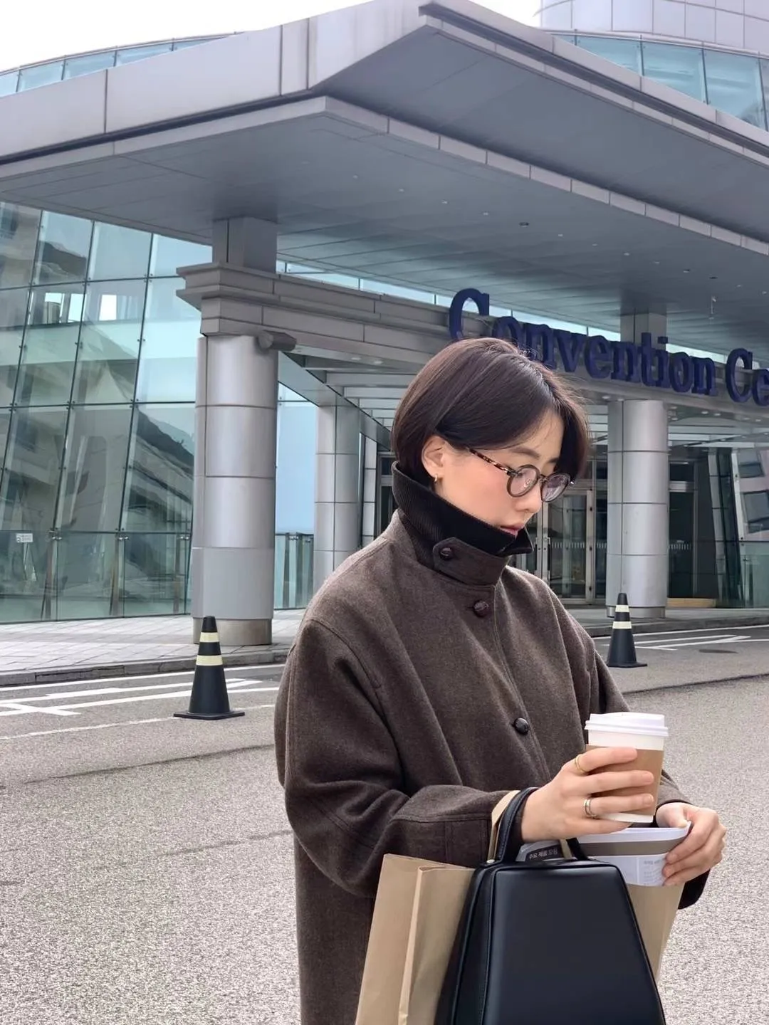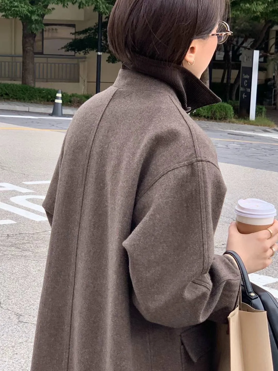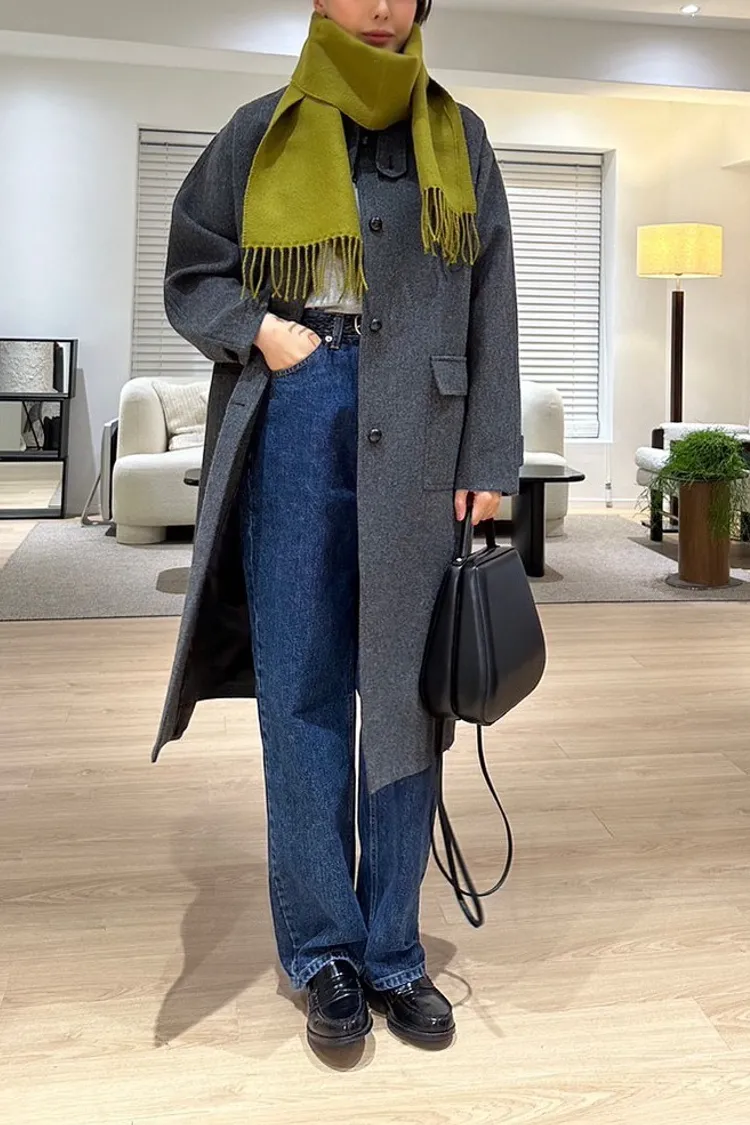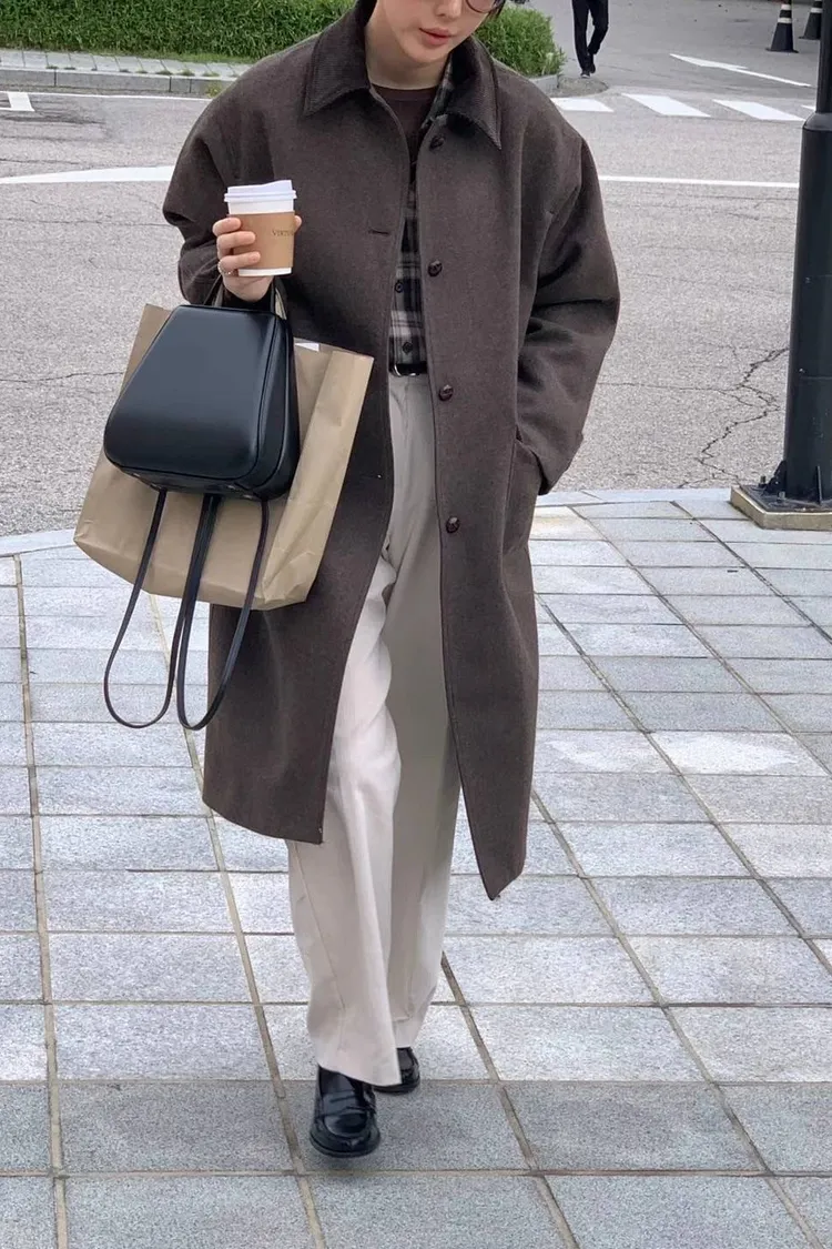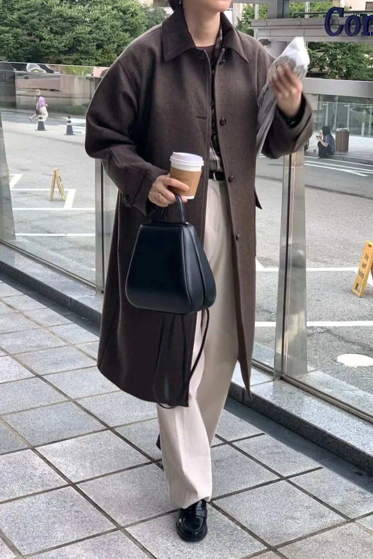 CS1041跳色翻領手工羊毛外套 咖 灰 線上價$3650 官網價$3680