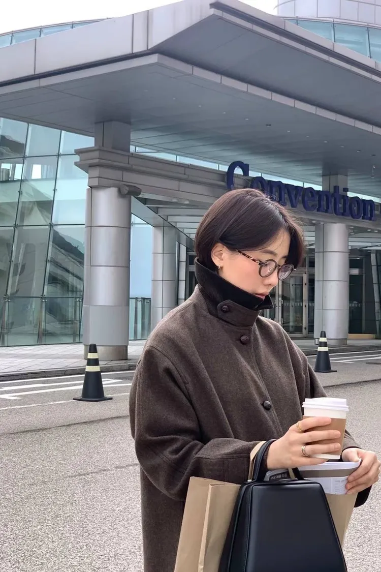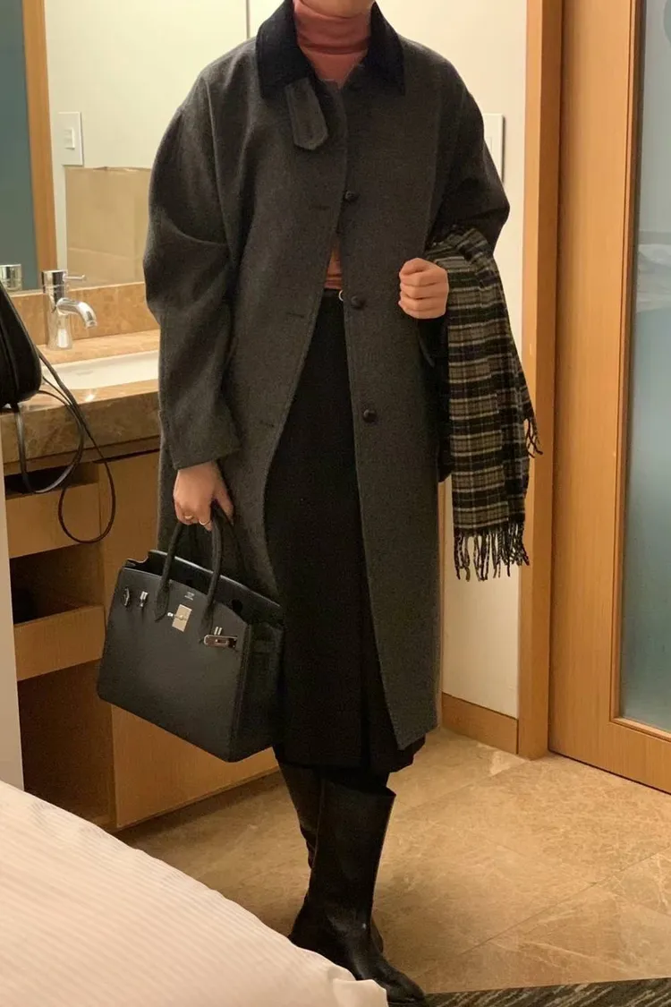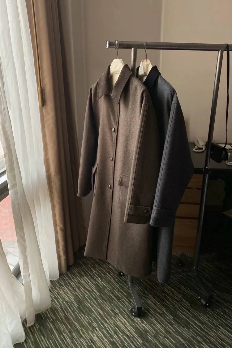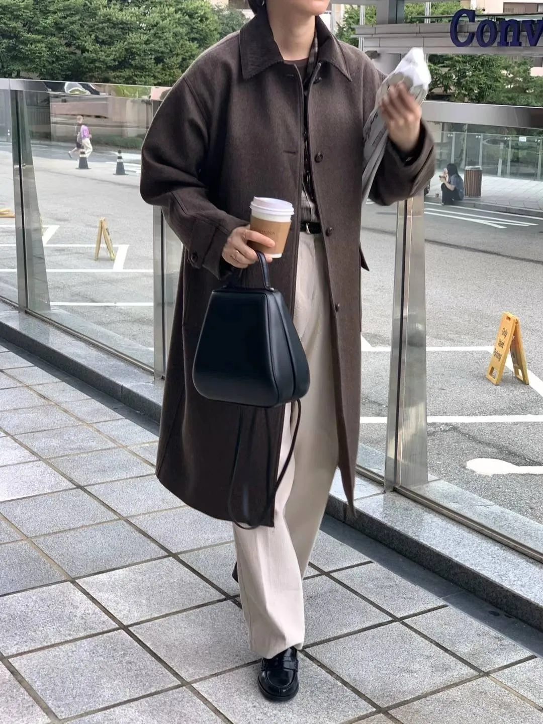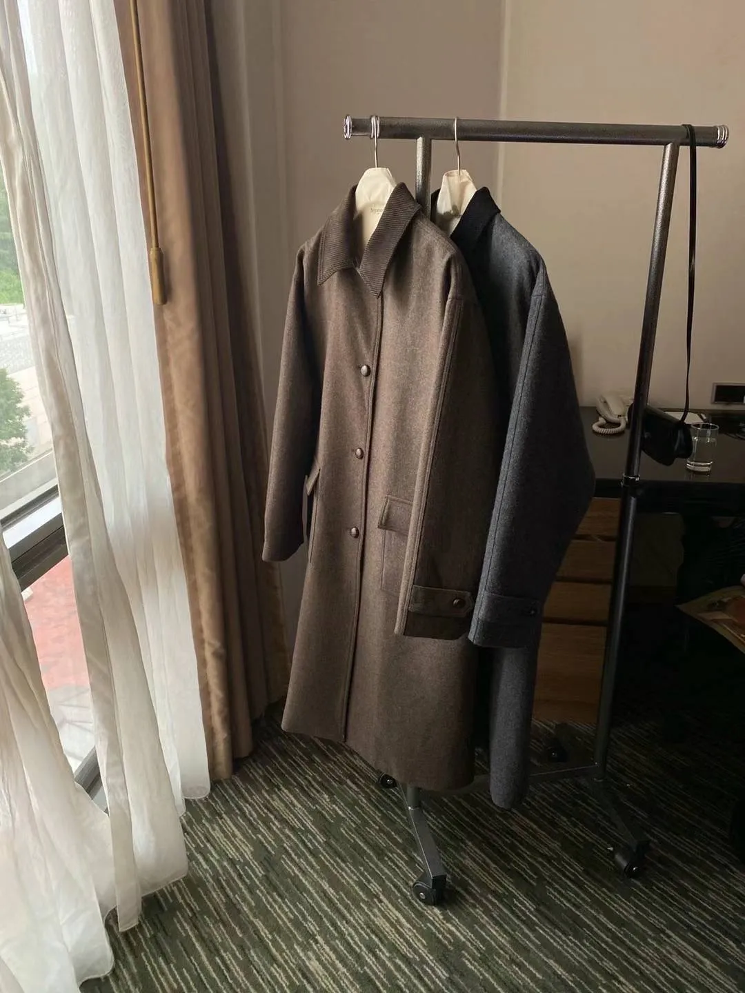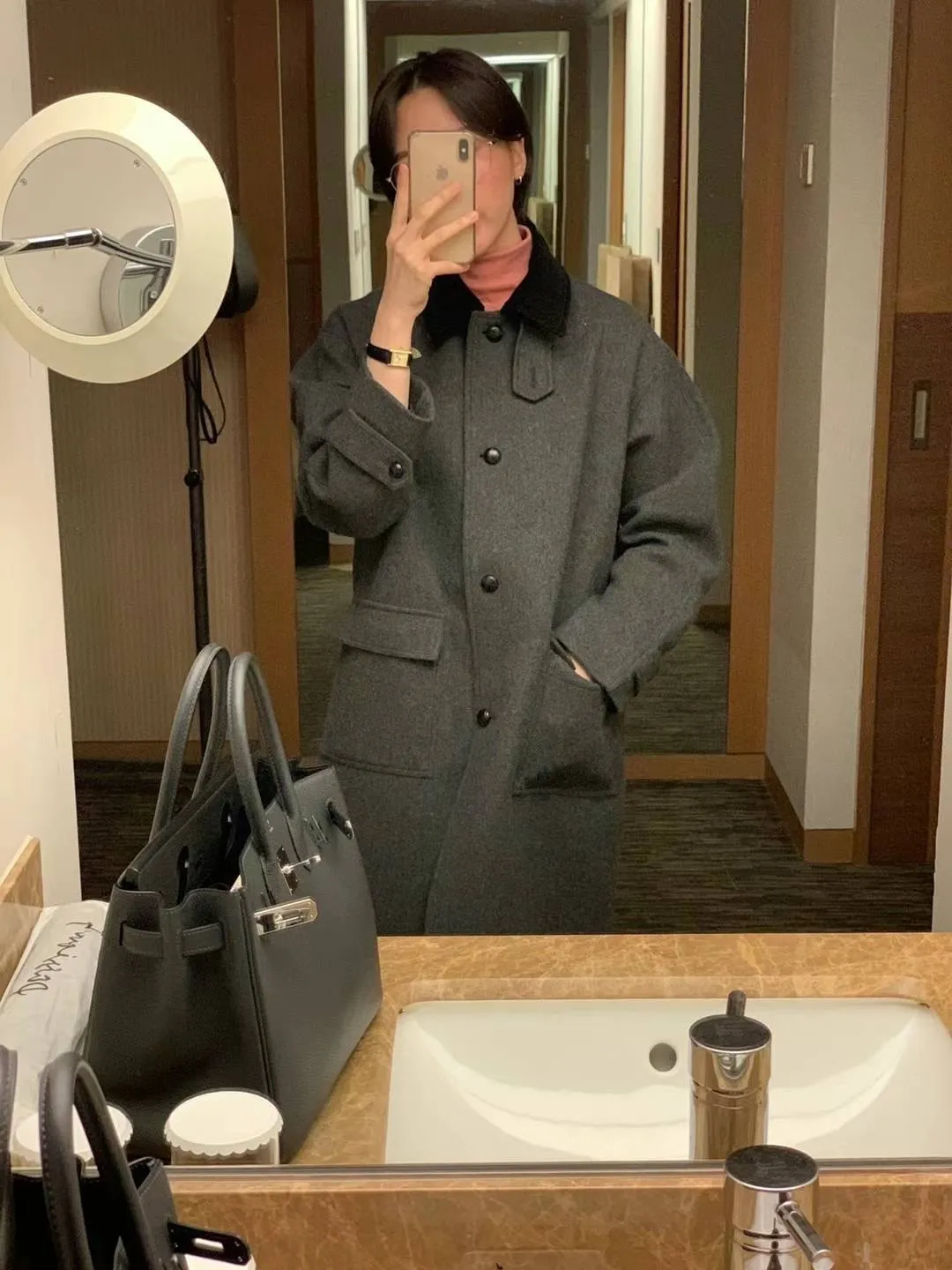 CS1041跳色翻領手工羊毛外套 咖 灰 線上價$3650 官網價$3680