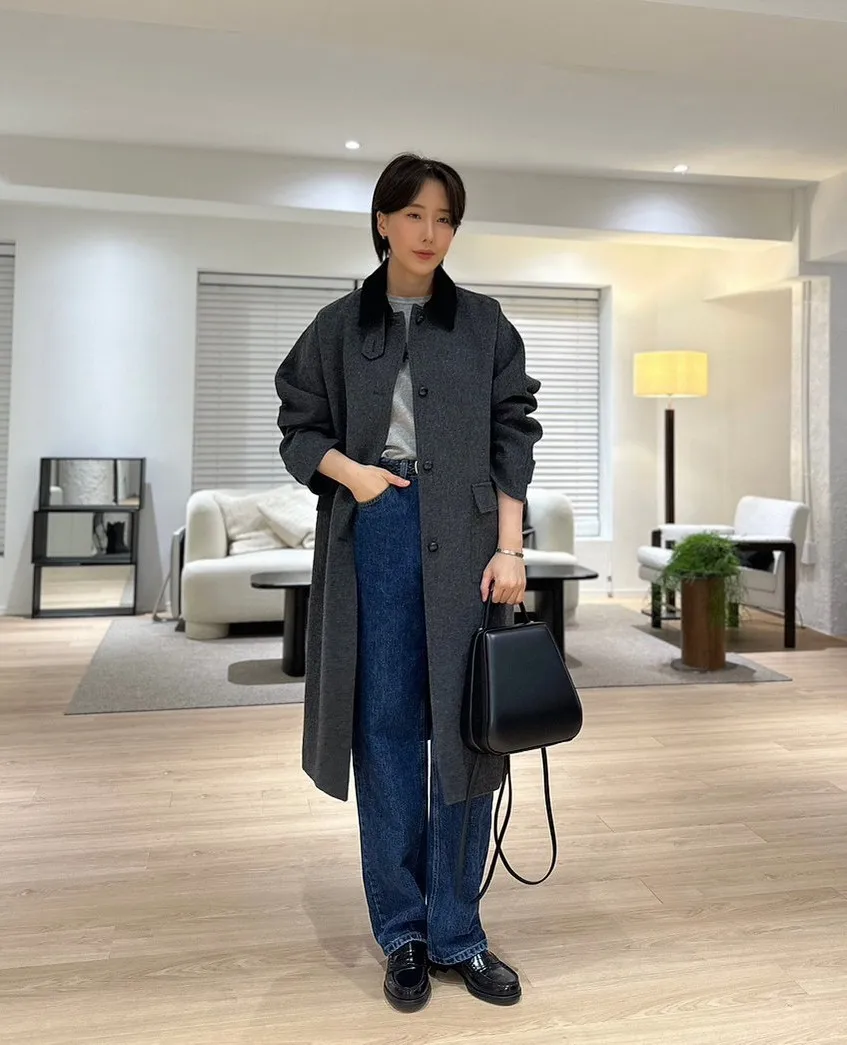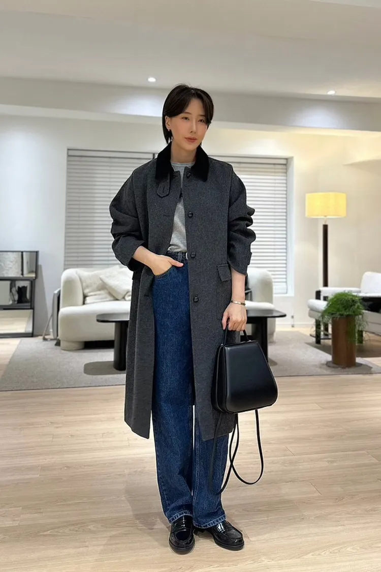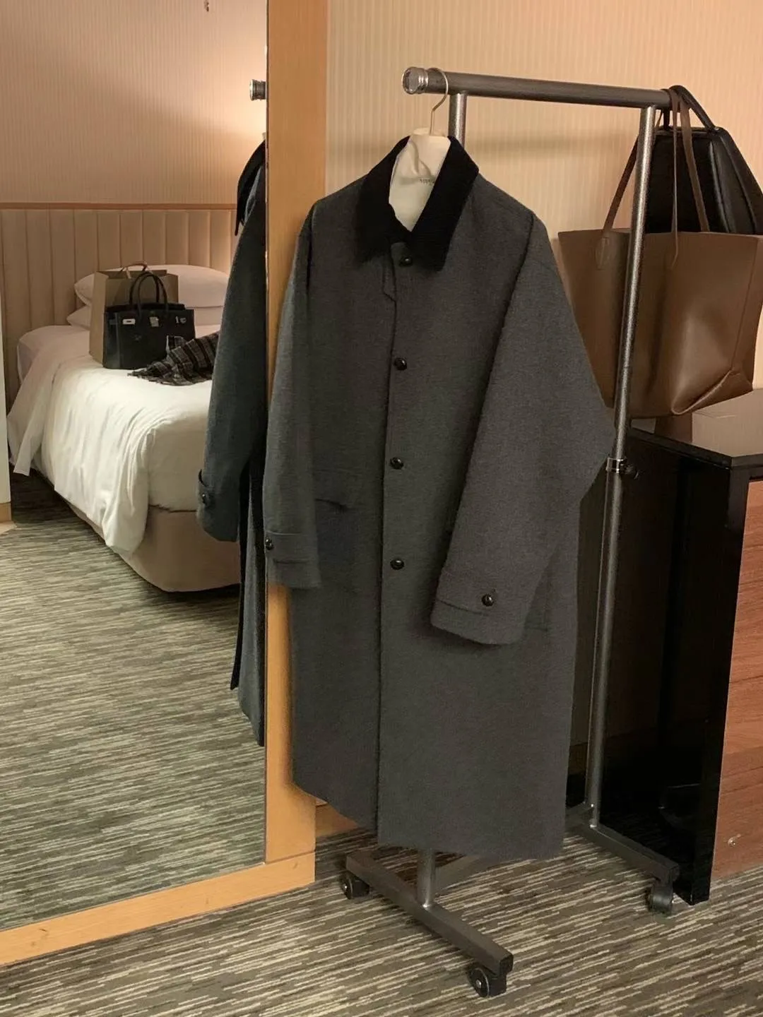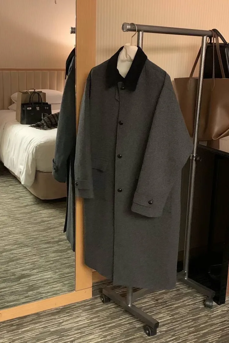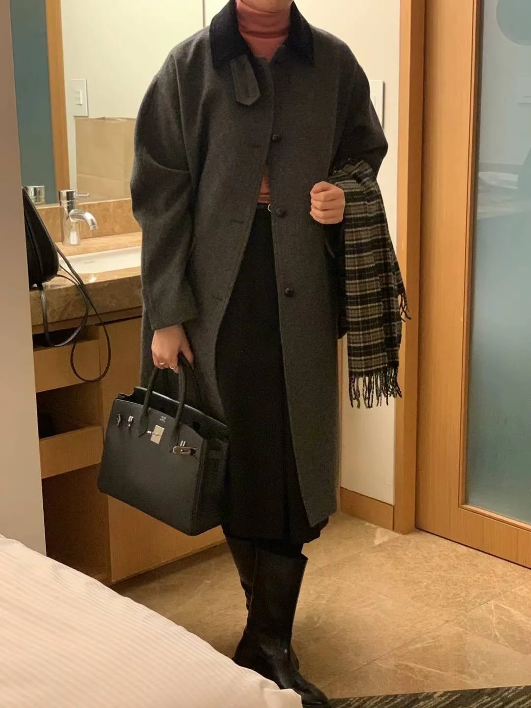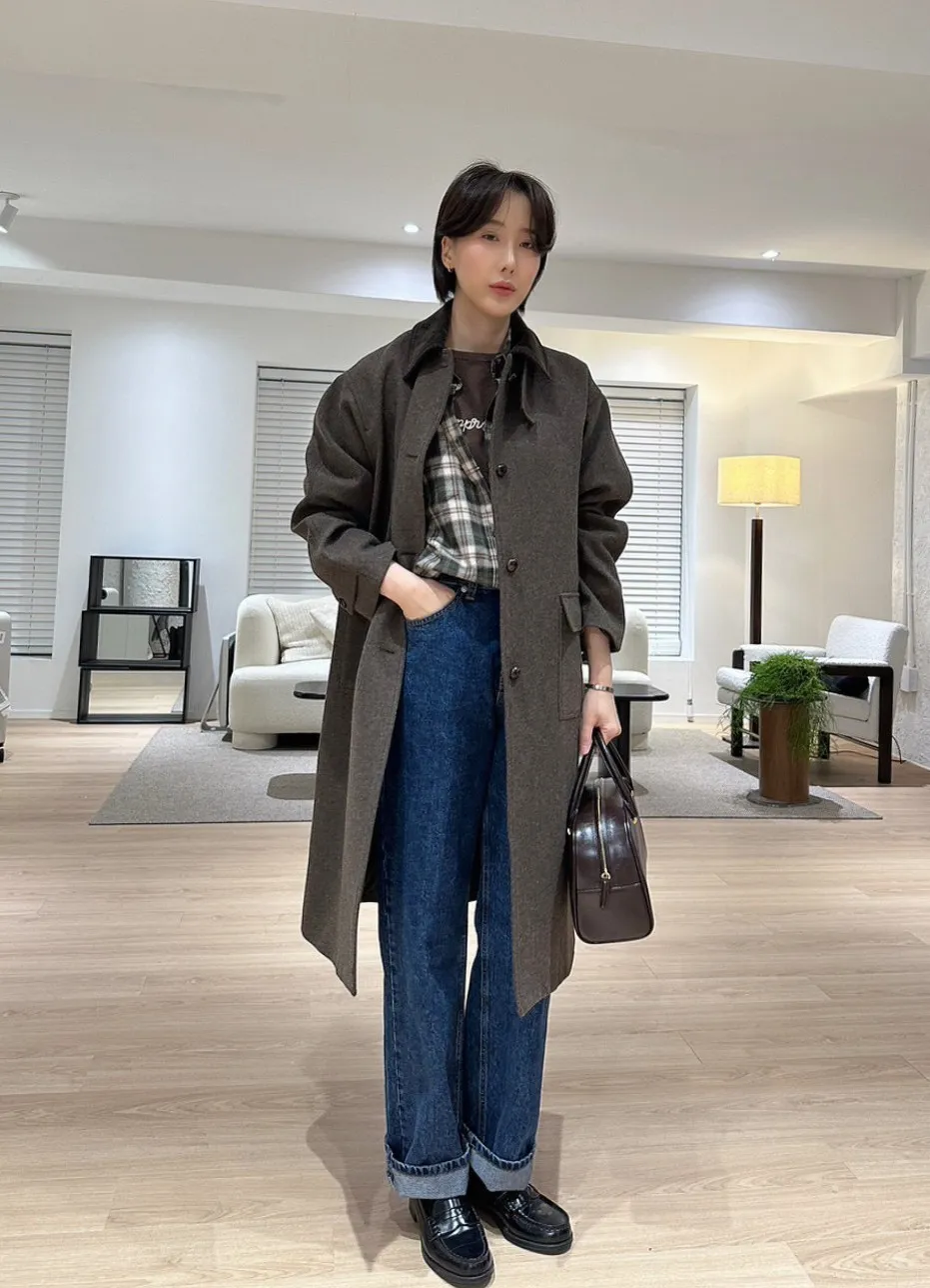 CS1041跳色翻領手工羊毛外套 咖 灰 線上價$3650 官網價$3680