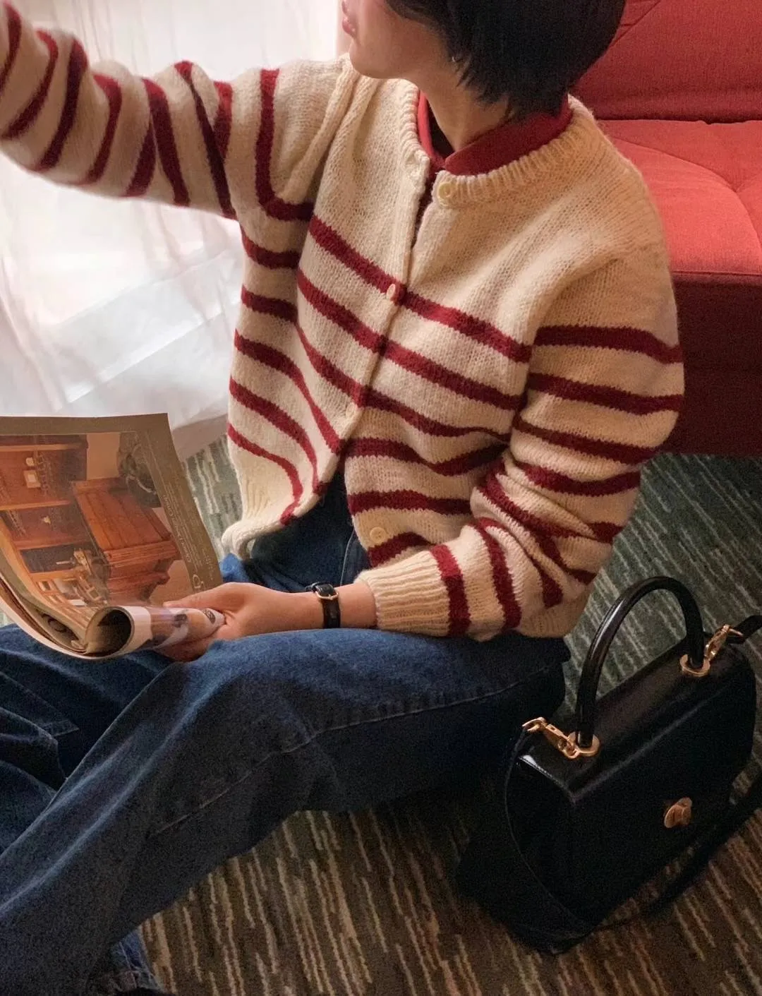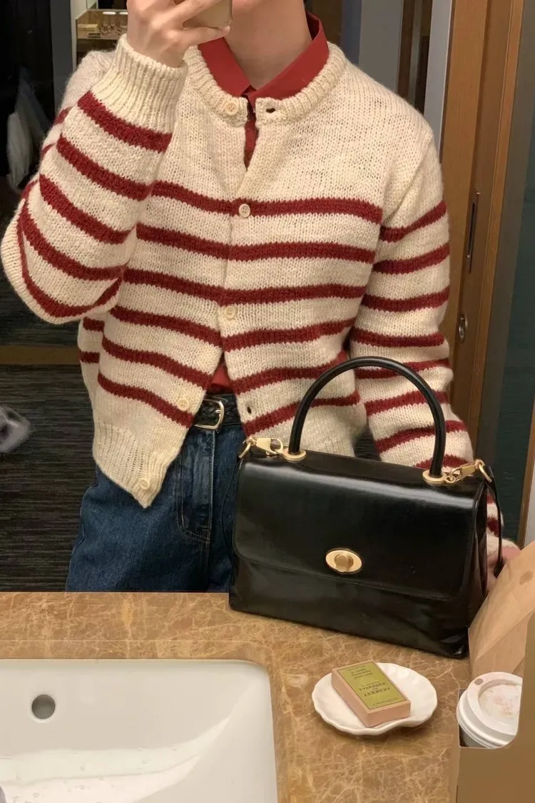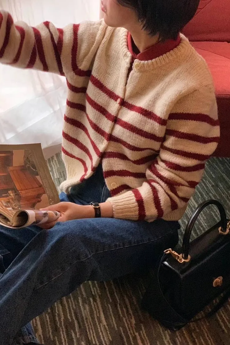 CS1042條紋羊毛100%針織衫 咖 綠 紅 線上價$ 1340 官網價$1370