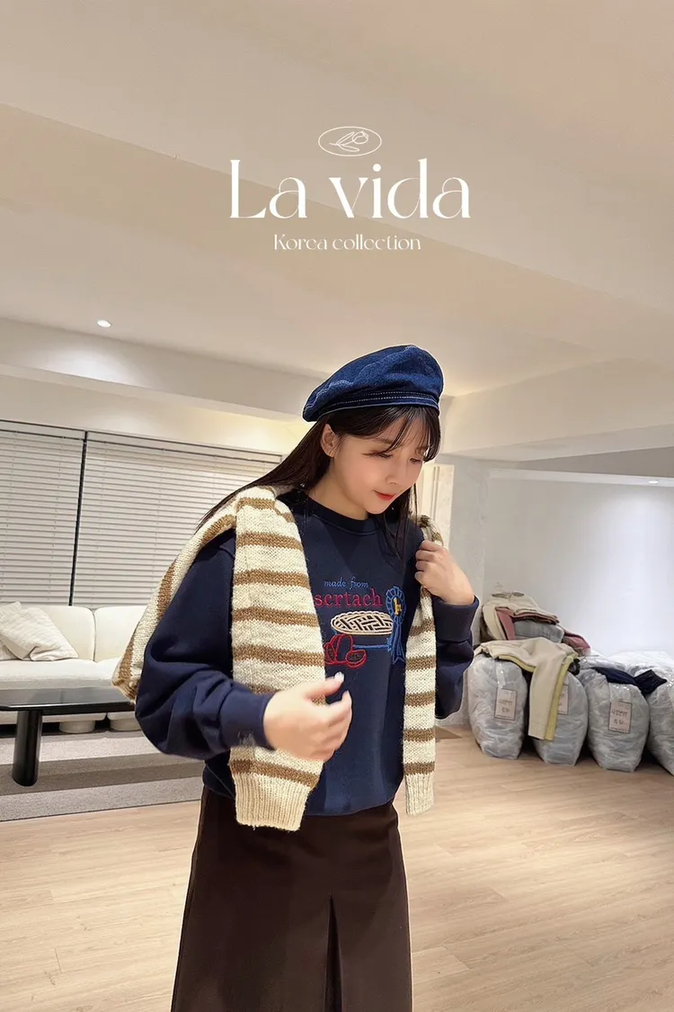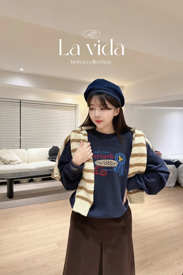 CS1050刺繡甜點可愛休閒大學T 米 藍 線上價$1070 官網價$1100