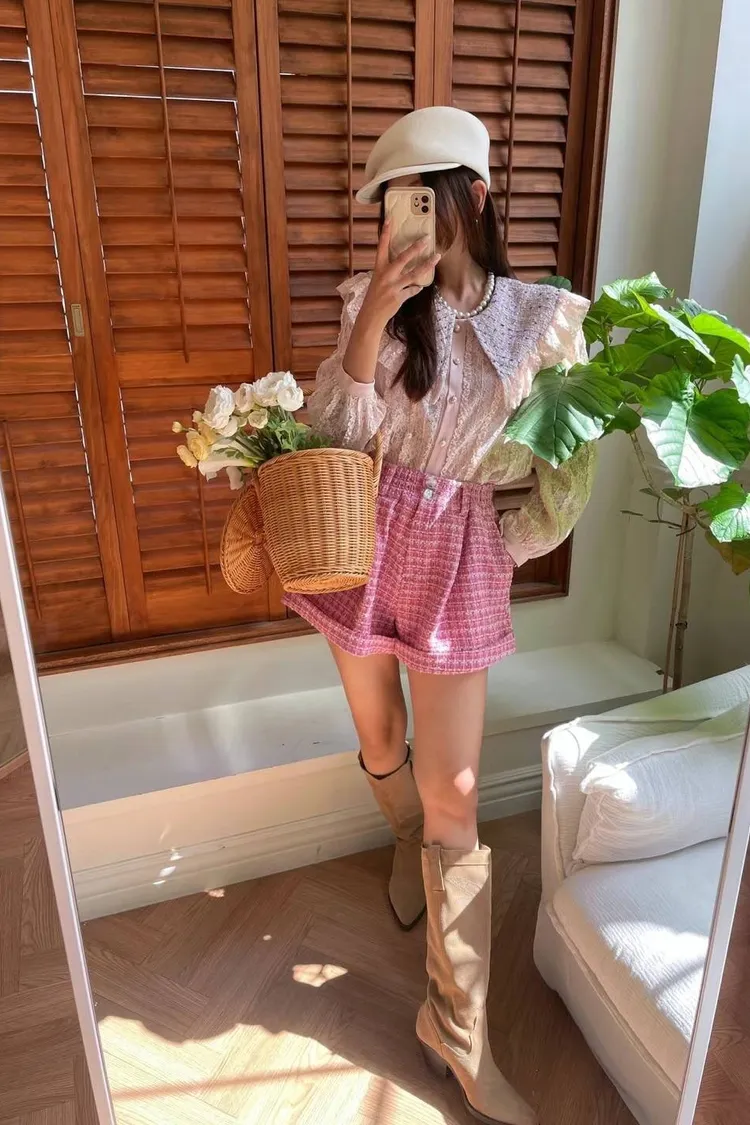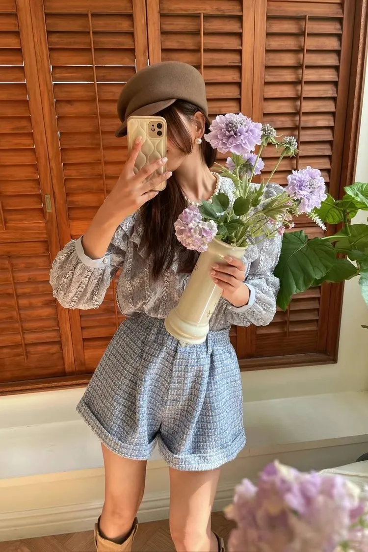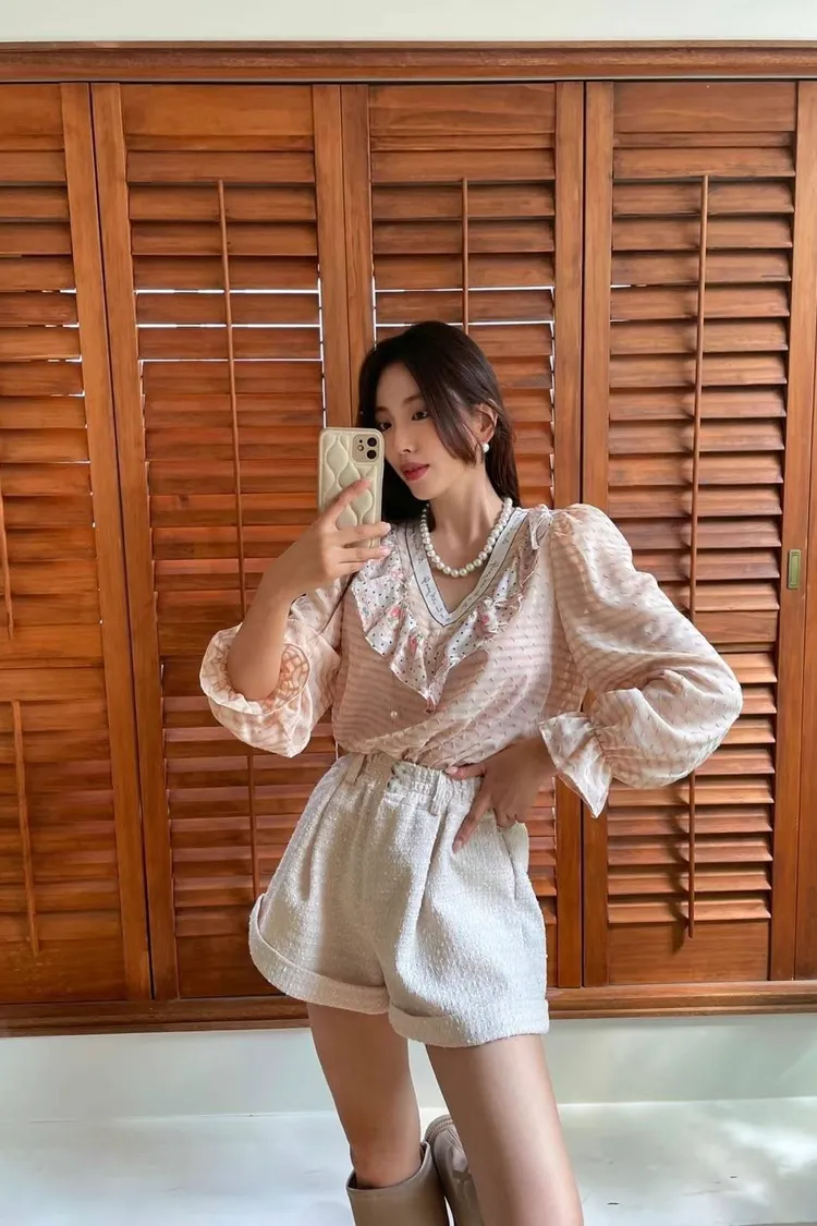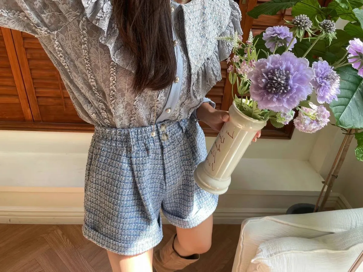 CS1056質感精緻小香織線Aline短褲 米 粉 藍 線上價$1120 官網價$1150