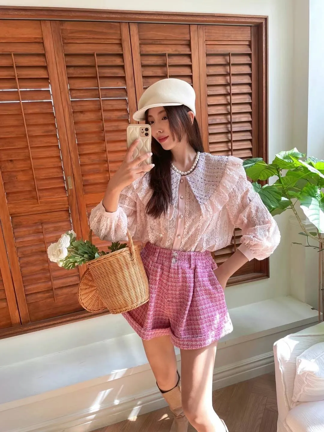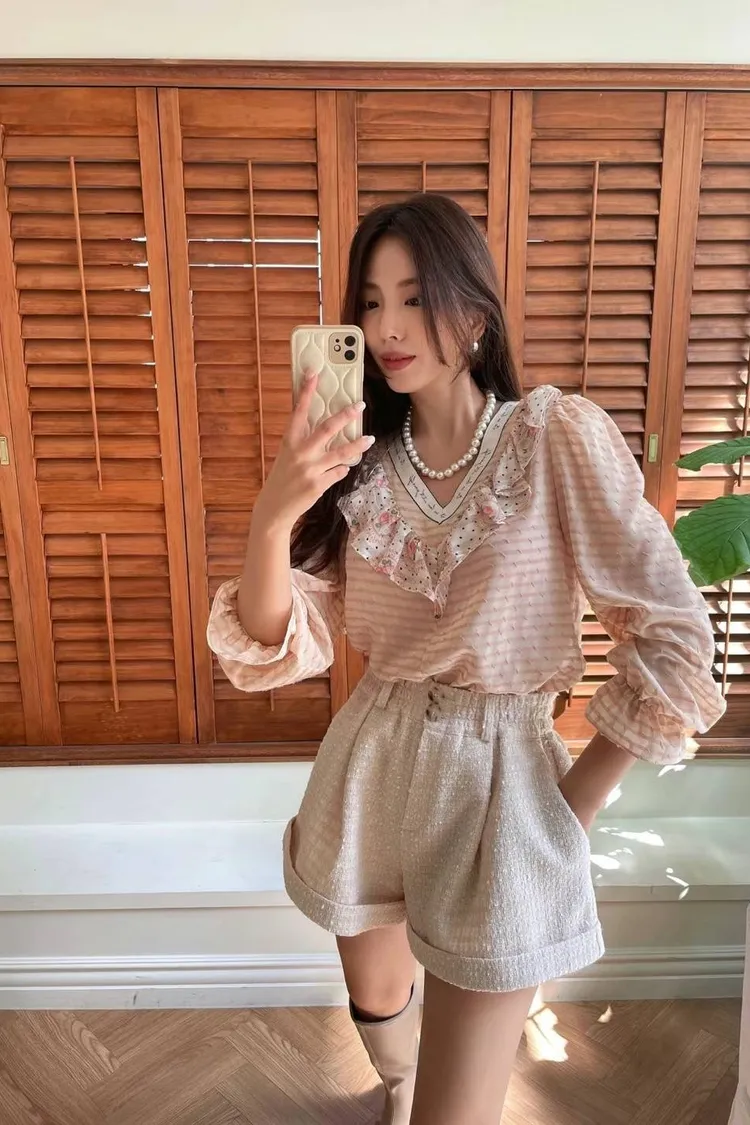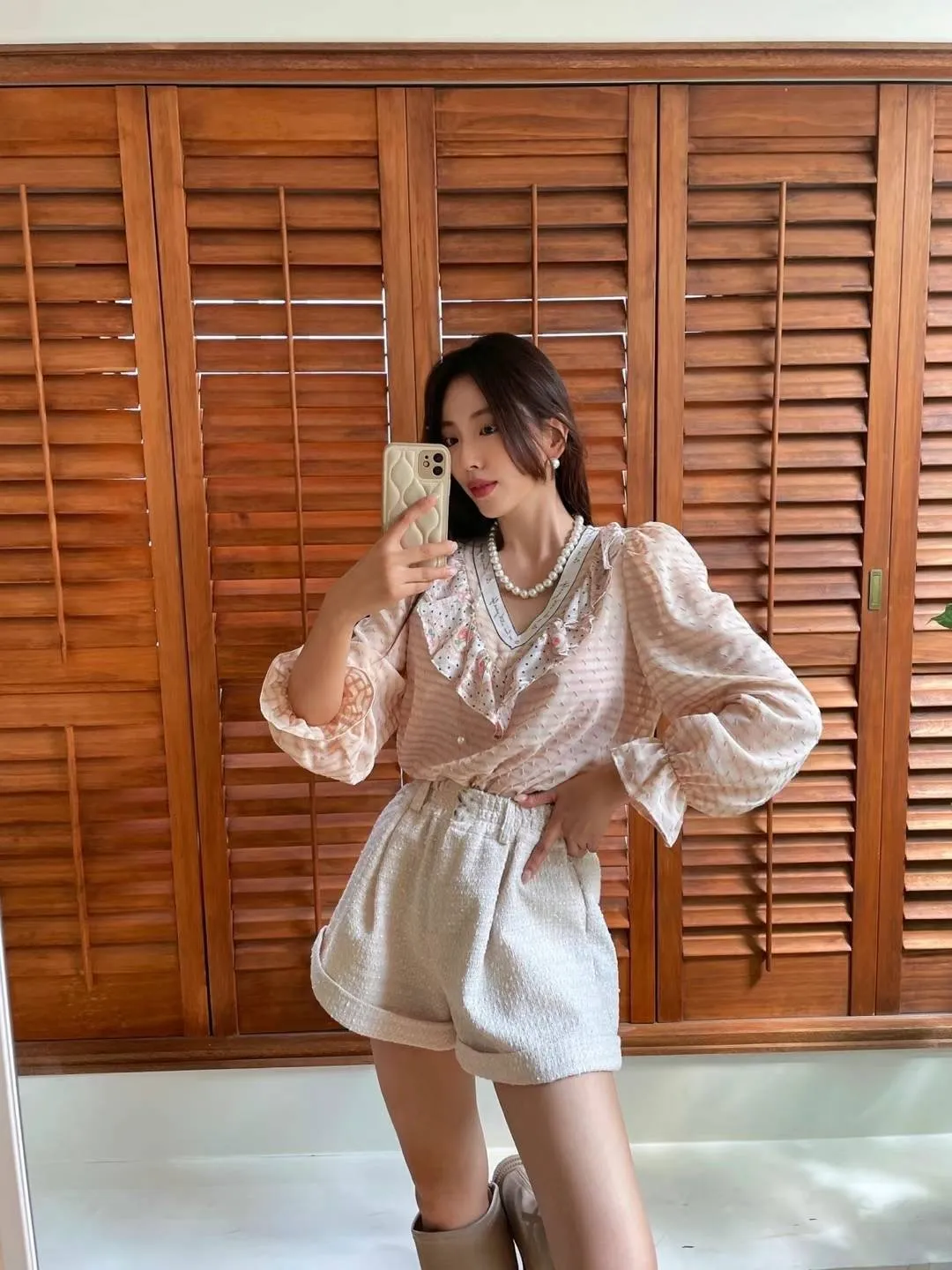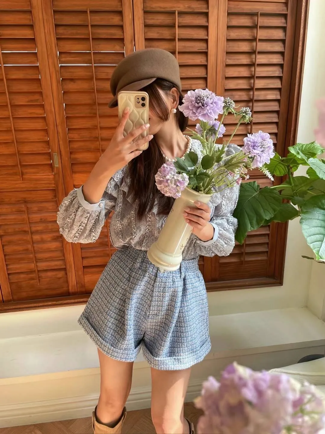 CS1056質感精緻小香織線Aline短褲 米 粉 藍 線上價$1120 官網價$1150