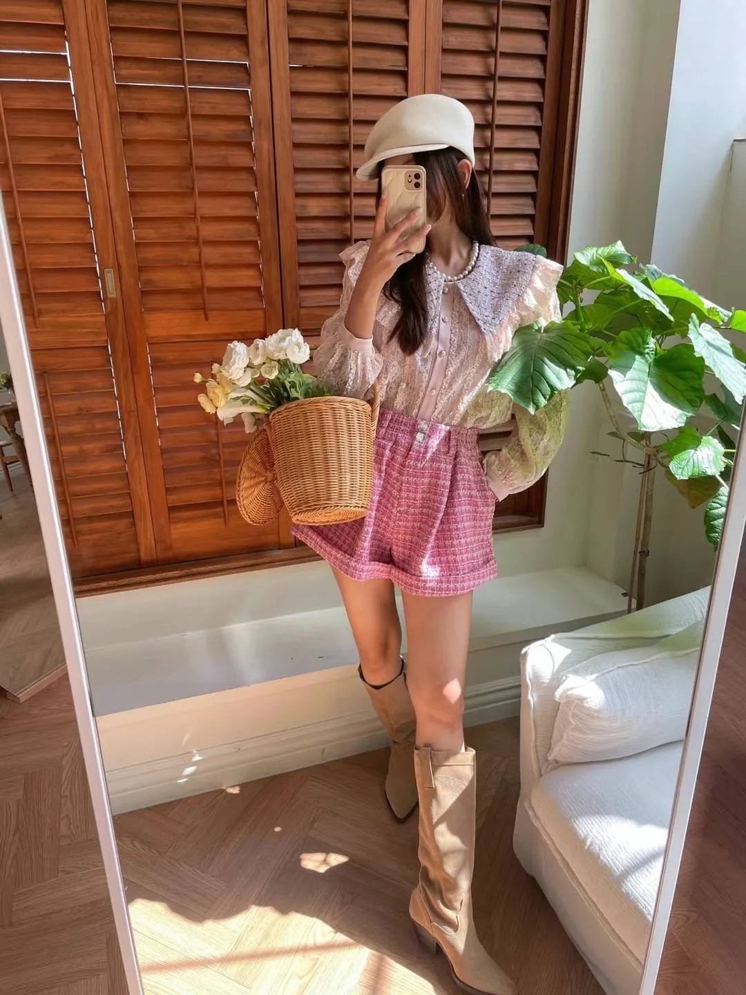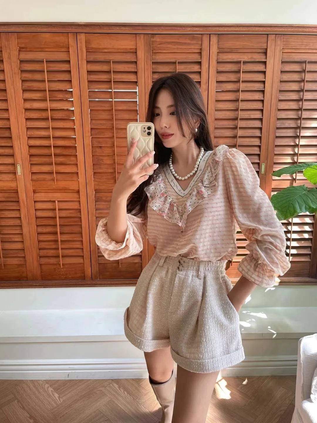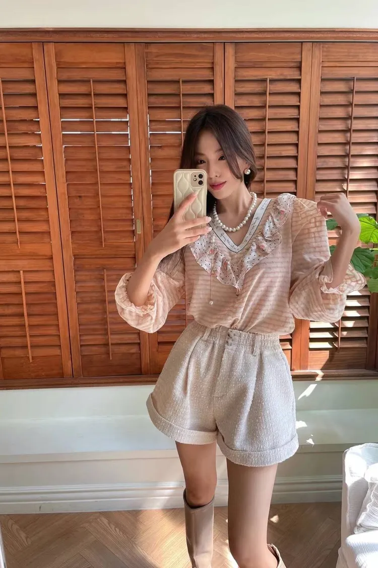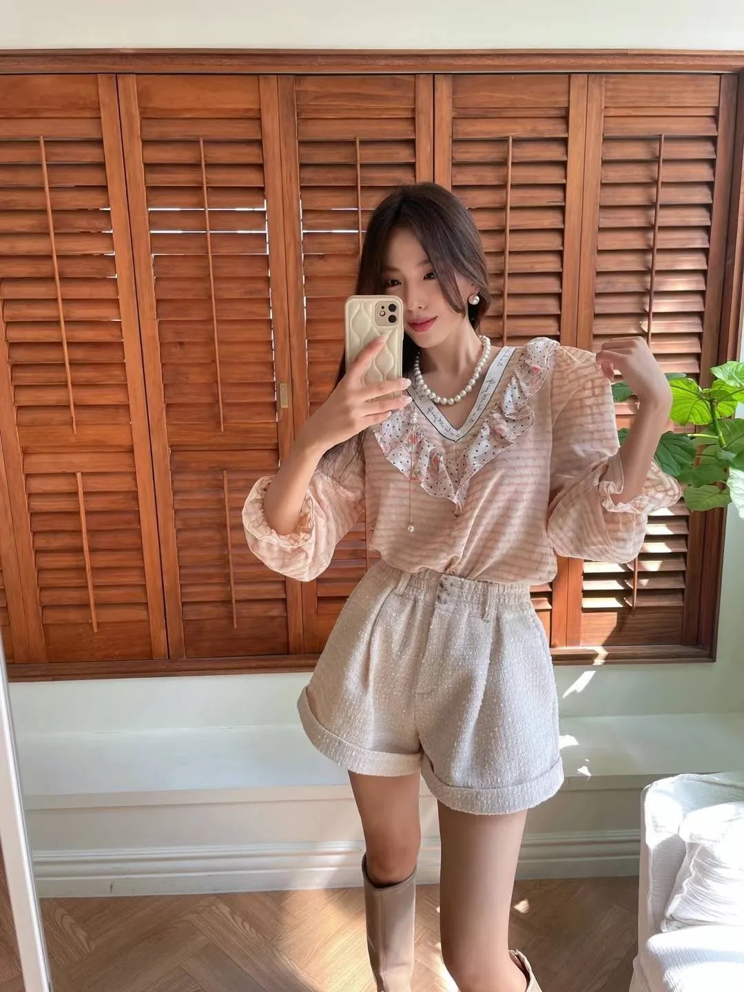 CS1056質感精緻小香織線Aline短褲 米 粉 藍 線上價$1120 官網價$1150