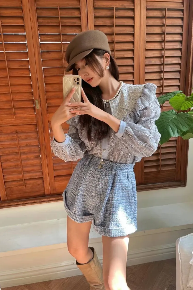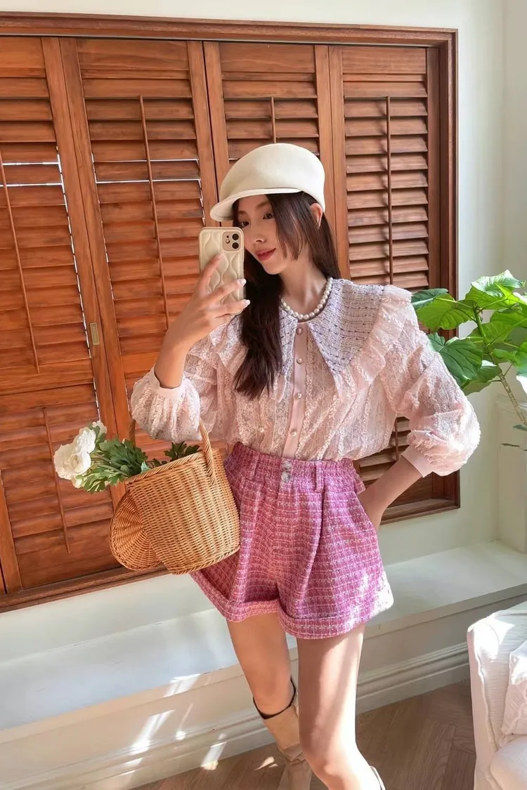 CS1057回購款精緻高級小香風翻領蕾絲美衣(原BA183) 粉 灰 線上價$1190 官網價$1220