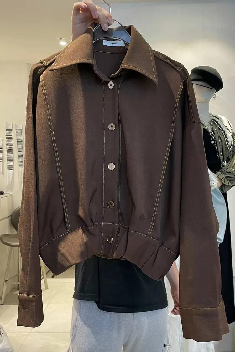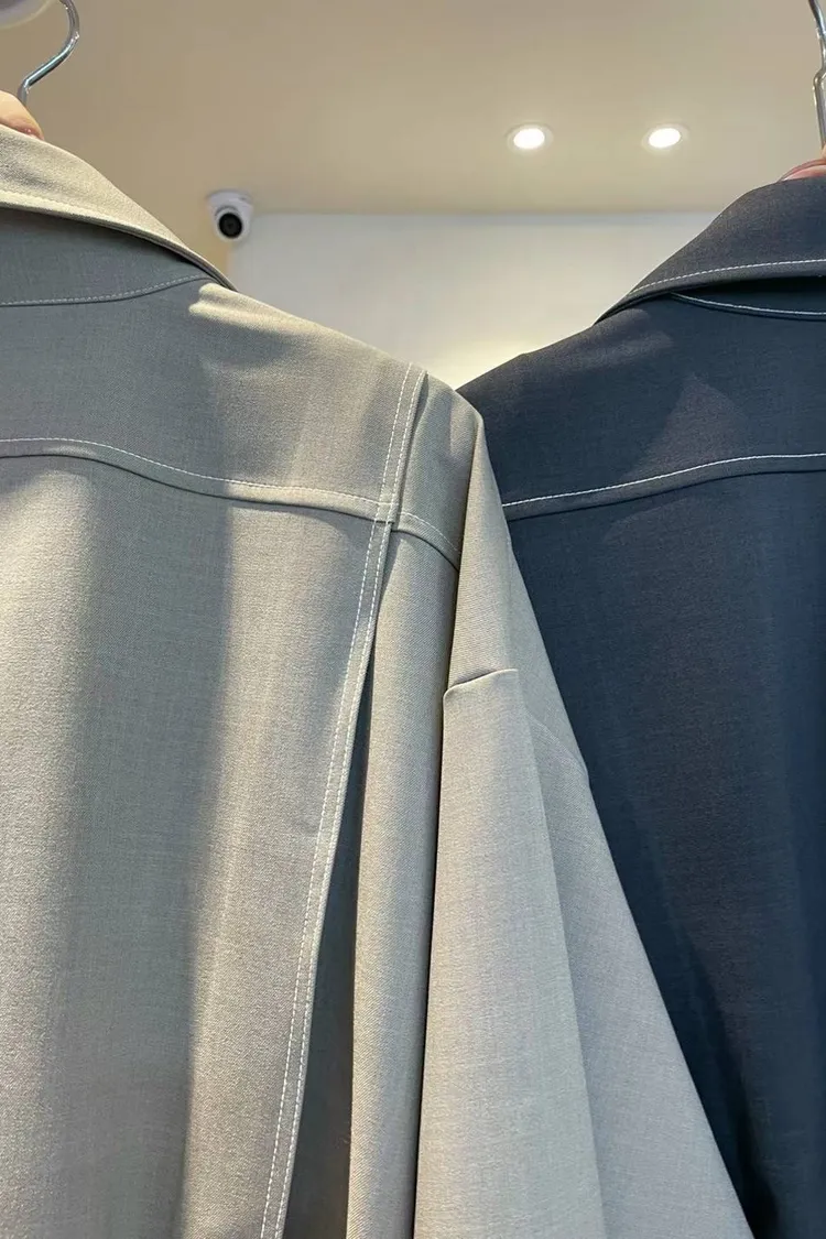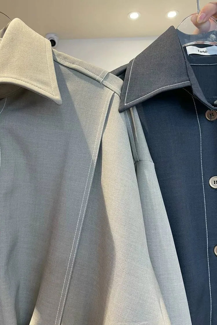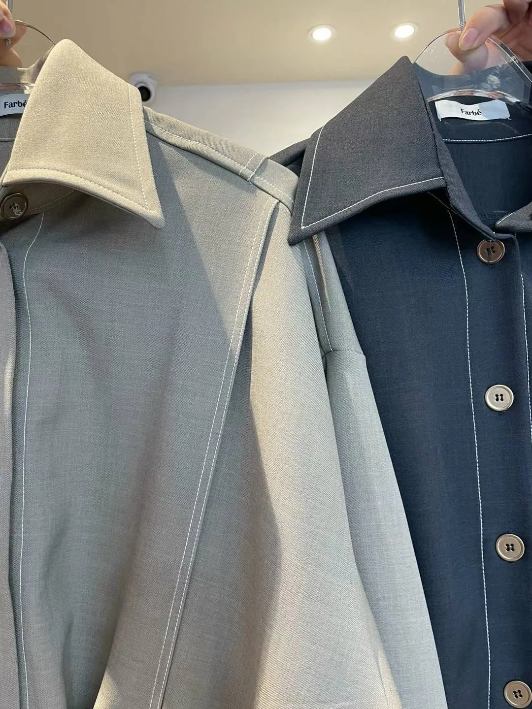 CS1058新款跳色車線休閒襯衫領上衣 灰 咖 黑 線上價$1460 官網價$1490