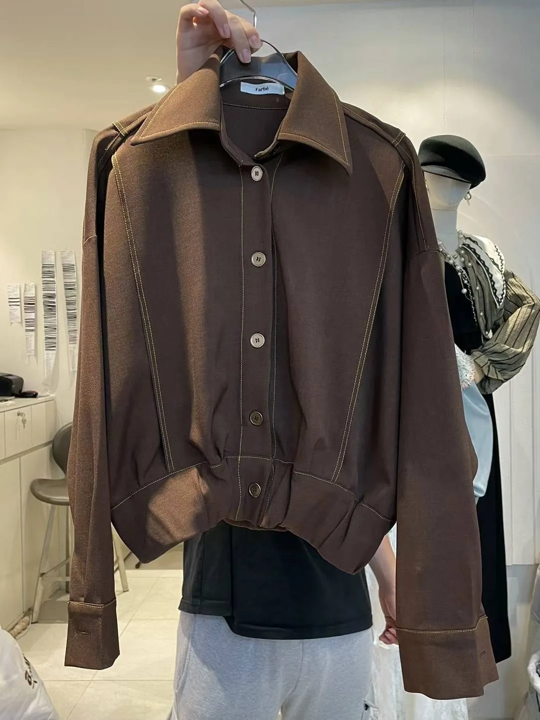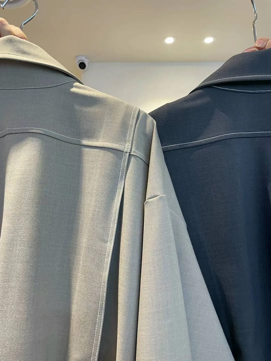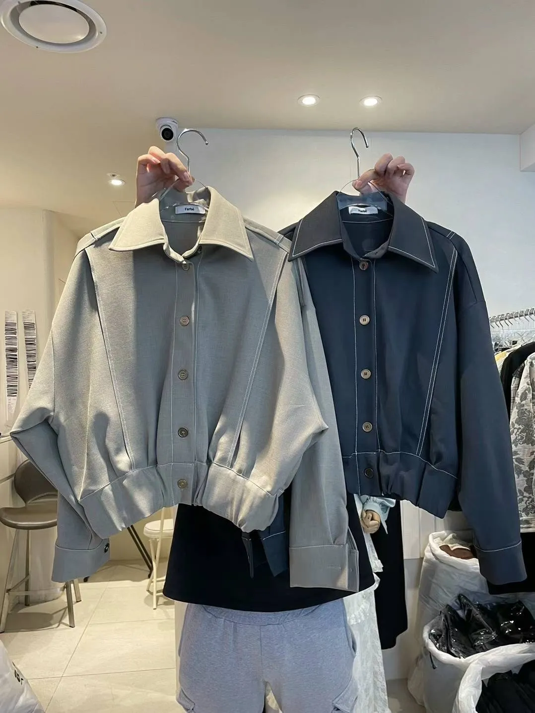 CS1058新款跳色車線休閒襯衫領上衣 灰 咖 黑 線上價$1460 官網價$1490