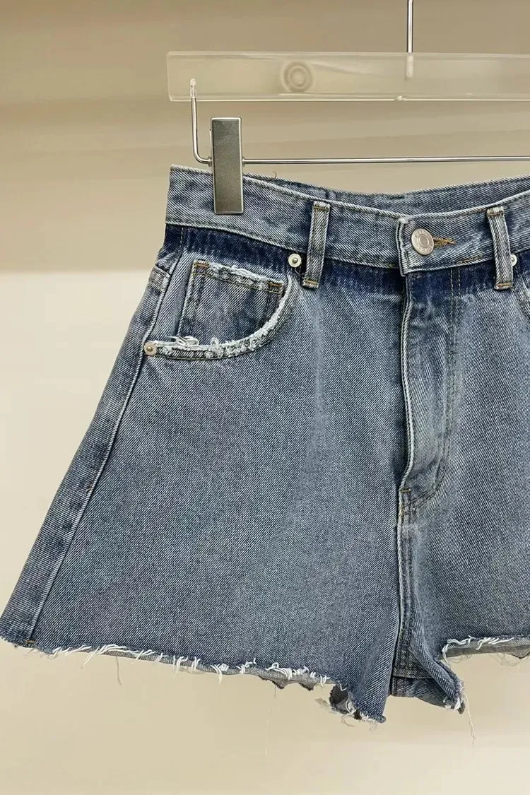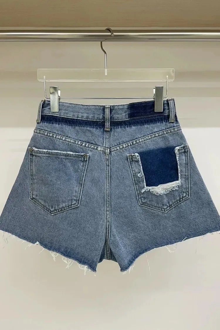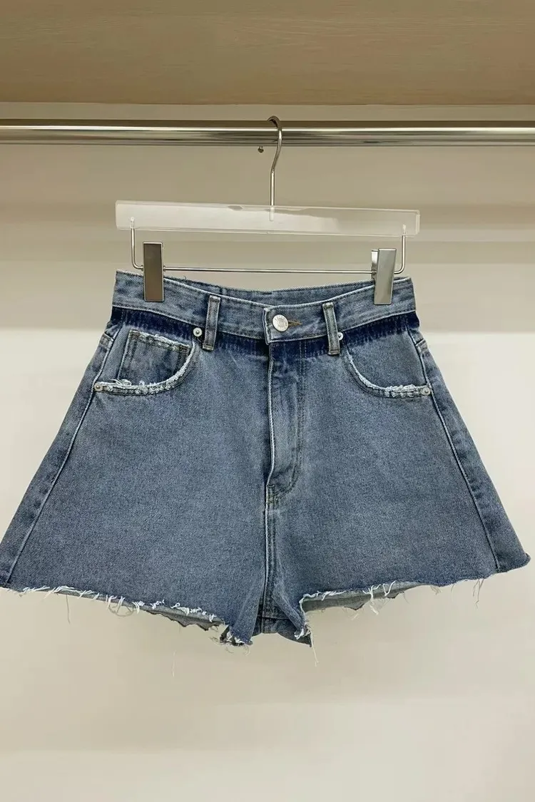CS1060回購款新款腰線深藍拚色牛仔不收邊短褲(原BA177) S M L 線上價$1010 官網價$1040