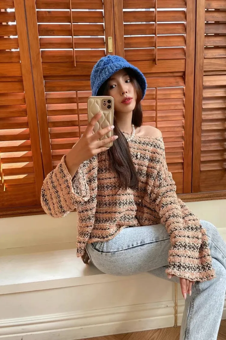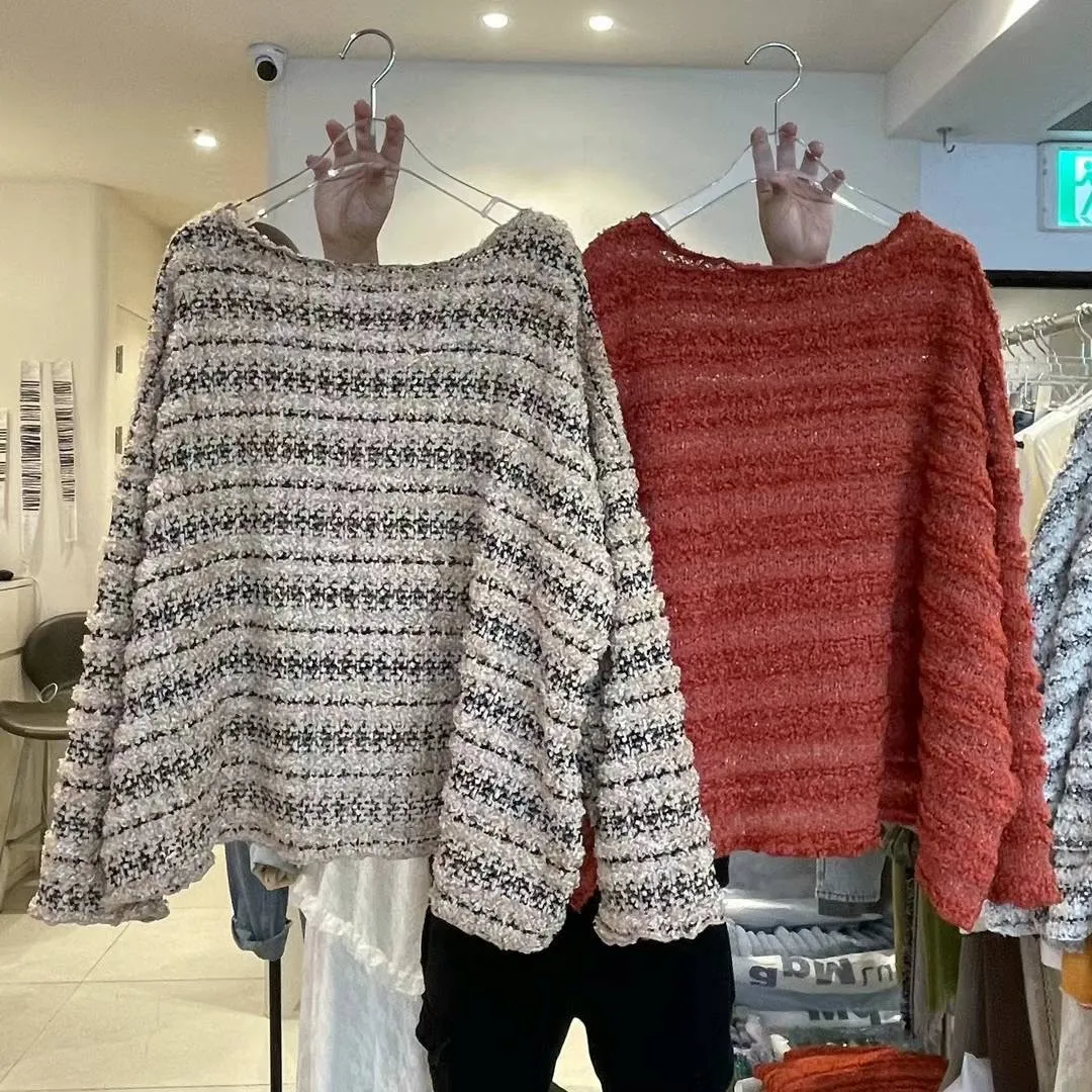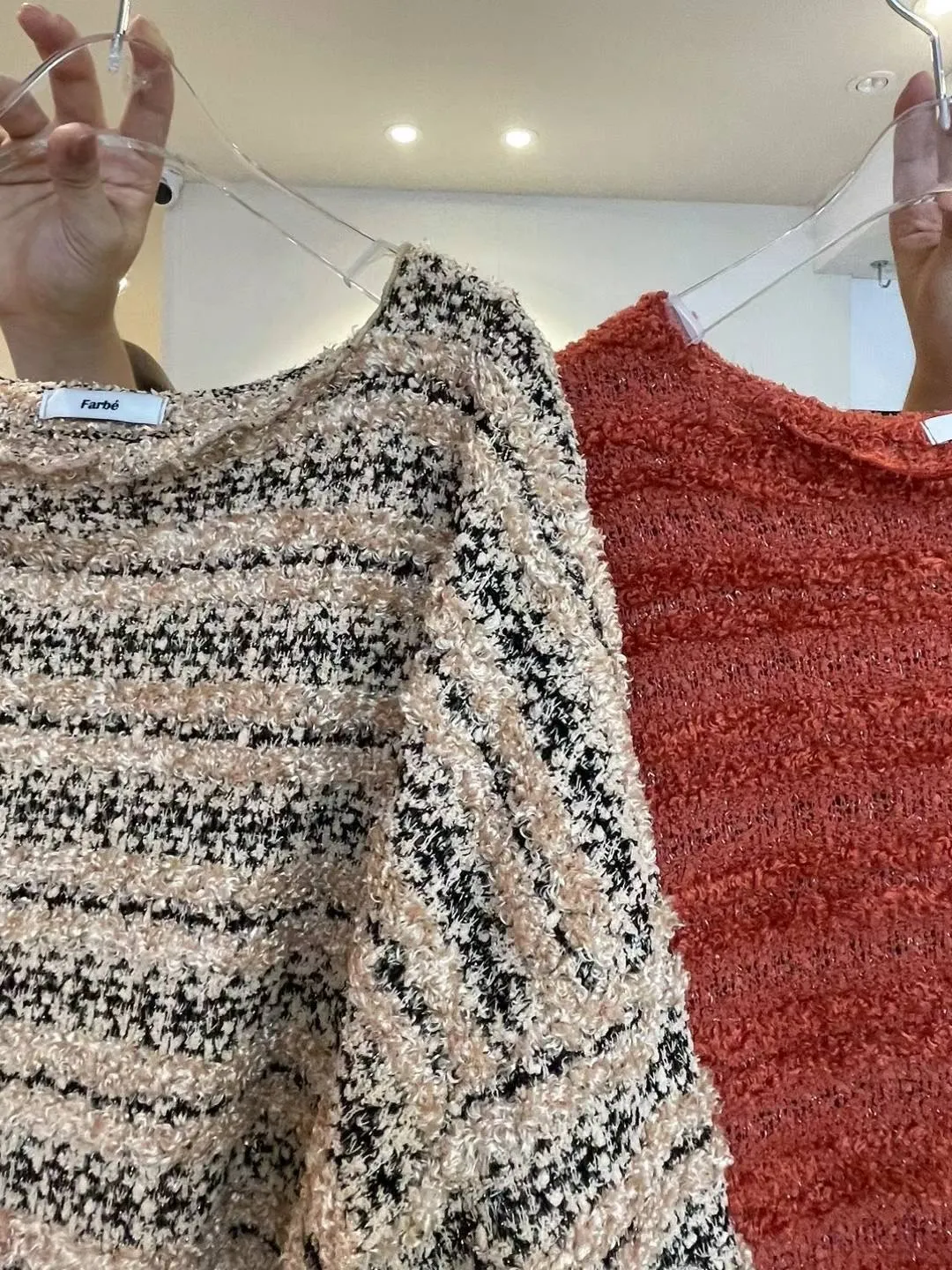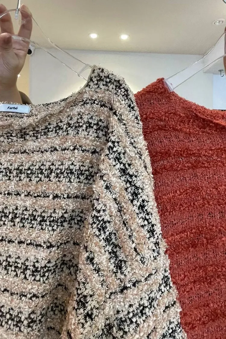 CS1061柔軟條紋美織線寬領上衣 白 橘 奶茶 線上價$960 官網價$990