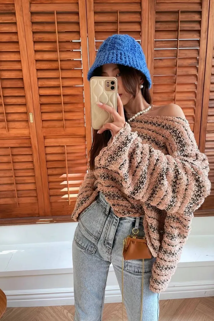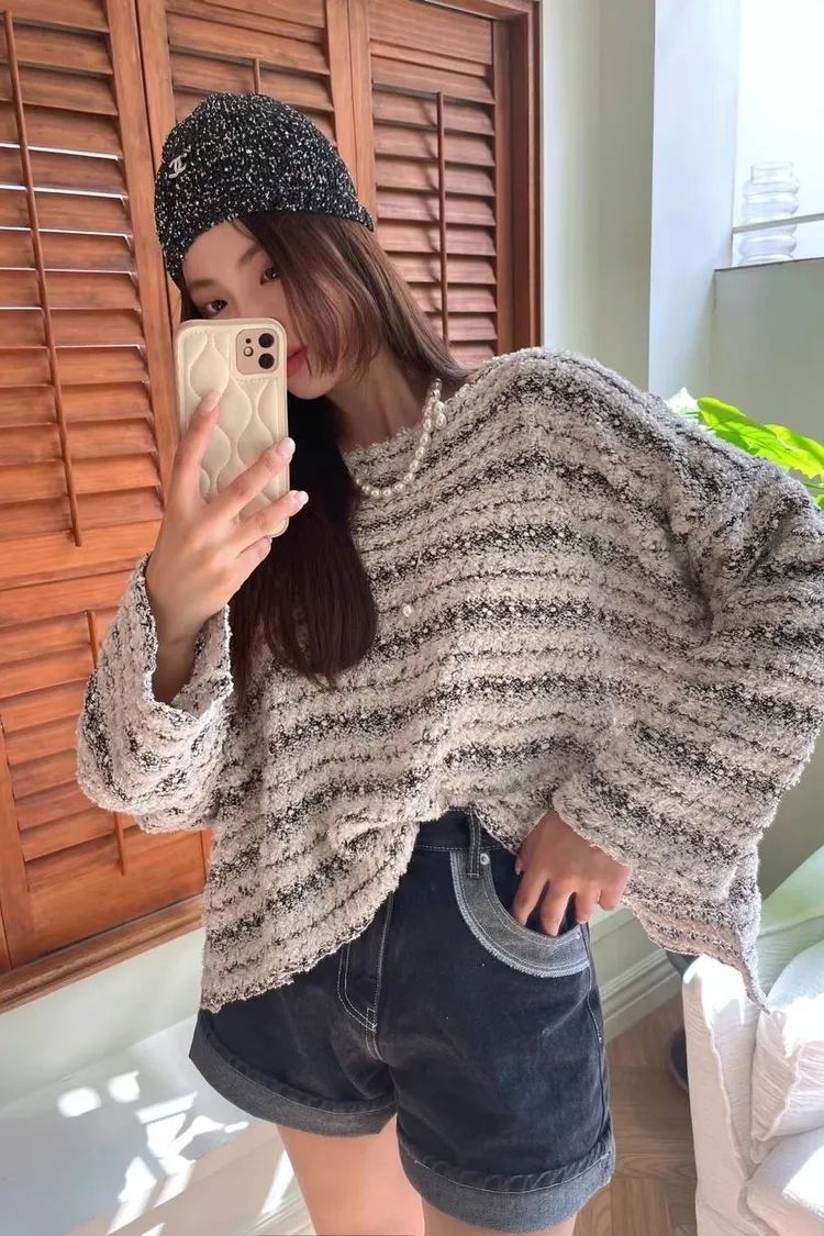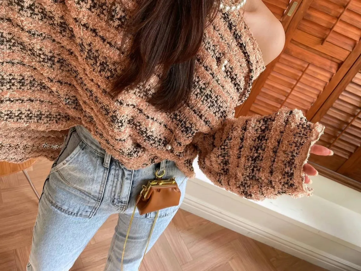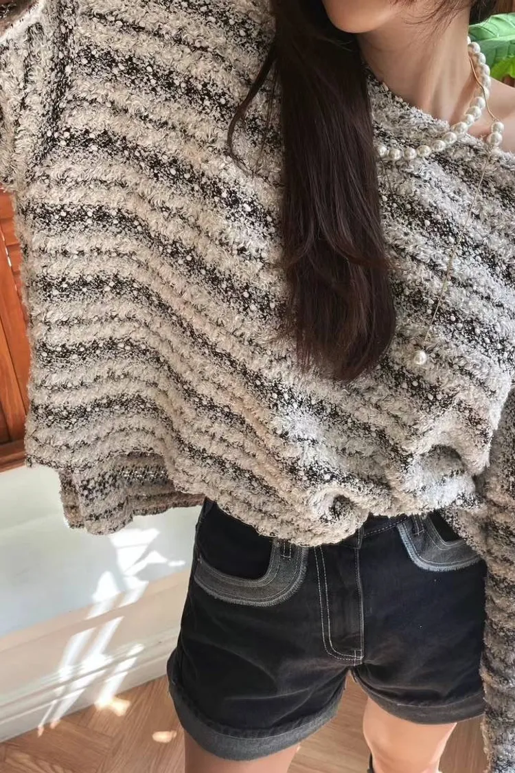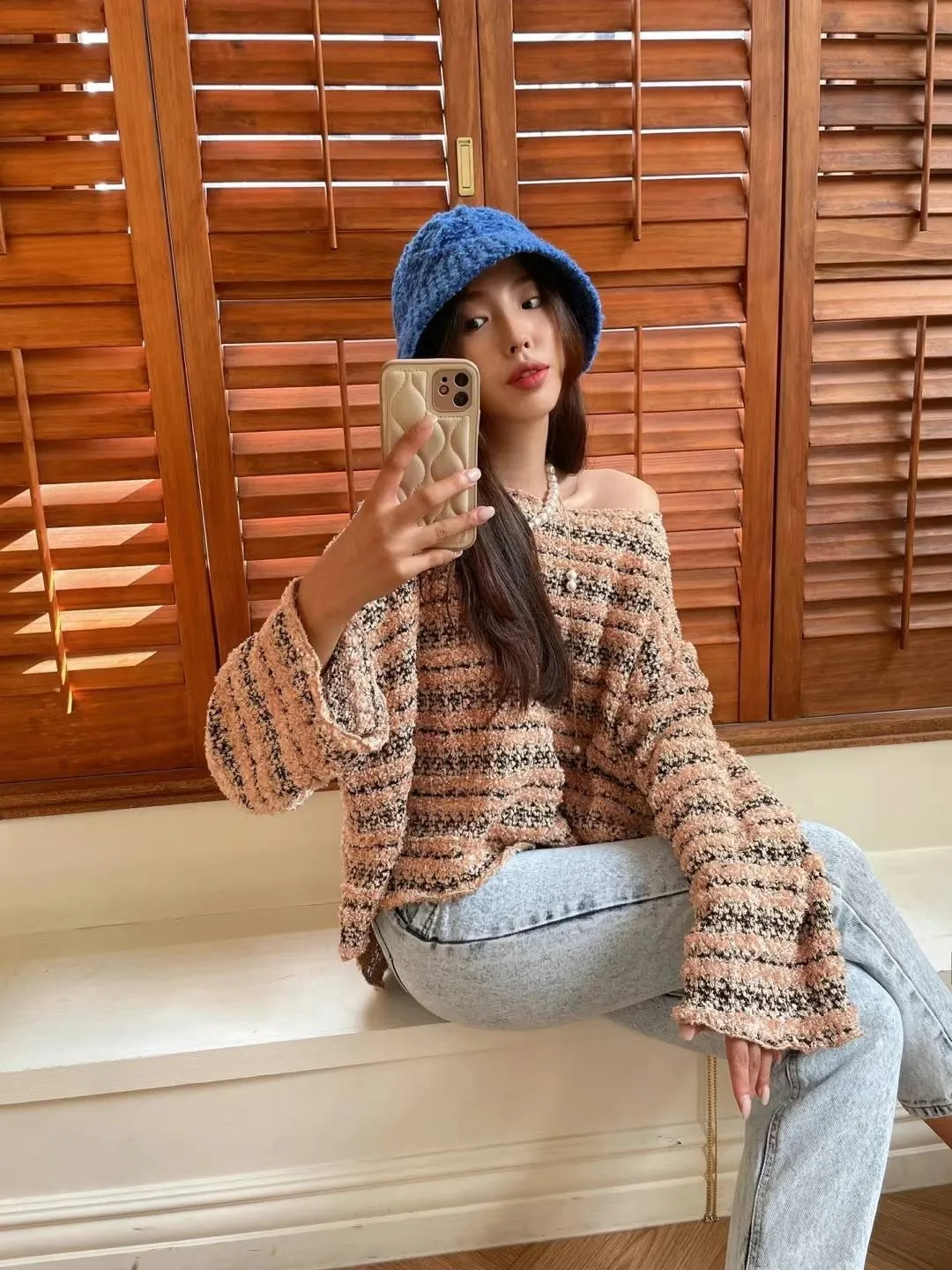 CS1061柔軟條紋美織線寬領上衣 白 橘 奶茶 線上價$960 官網價$990