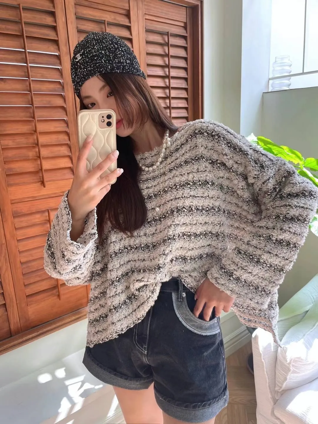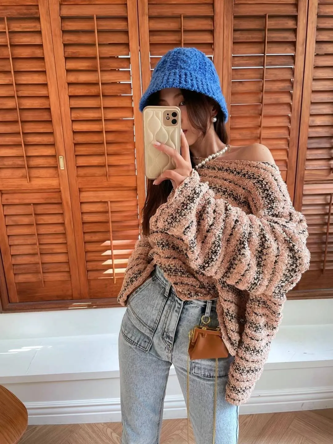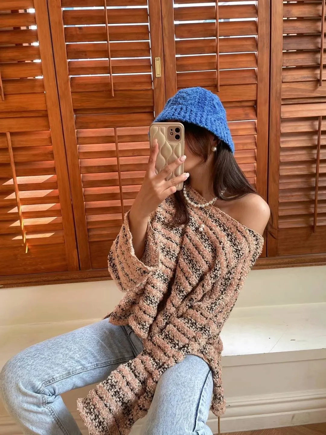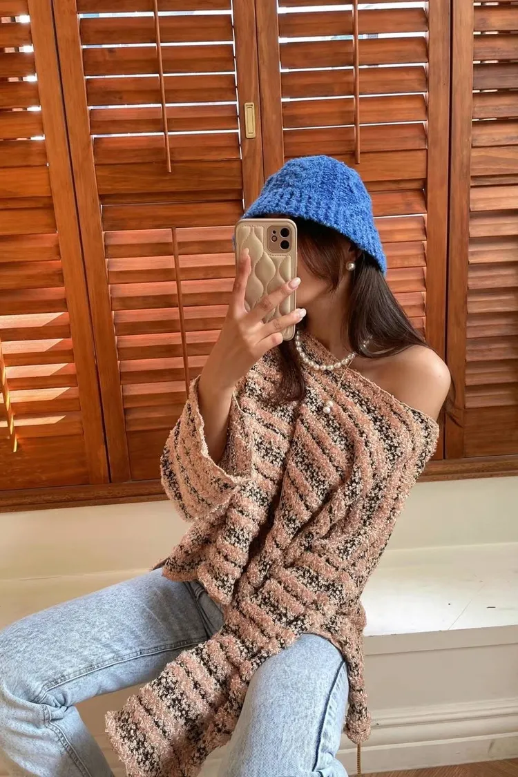 CS1061柔軟條紋美織線寬領上衣 白 橘 奶茶 線上價$960 官網價$990