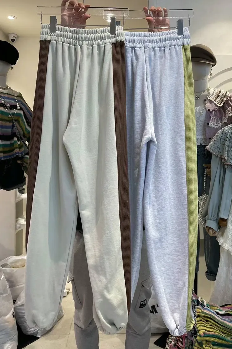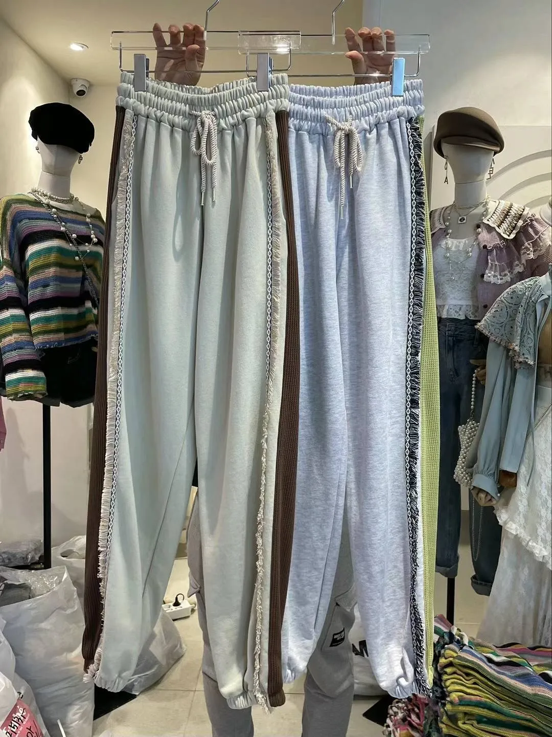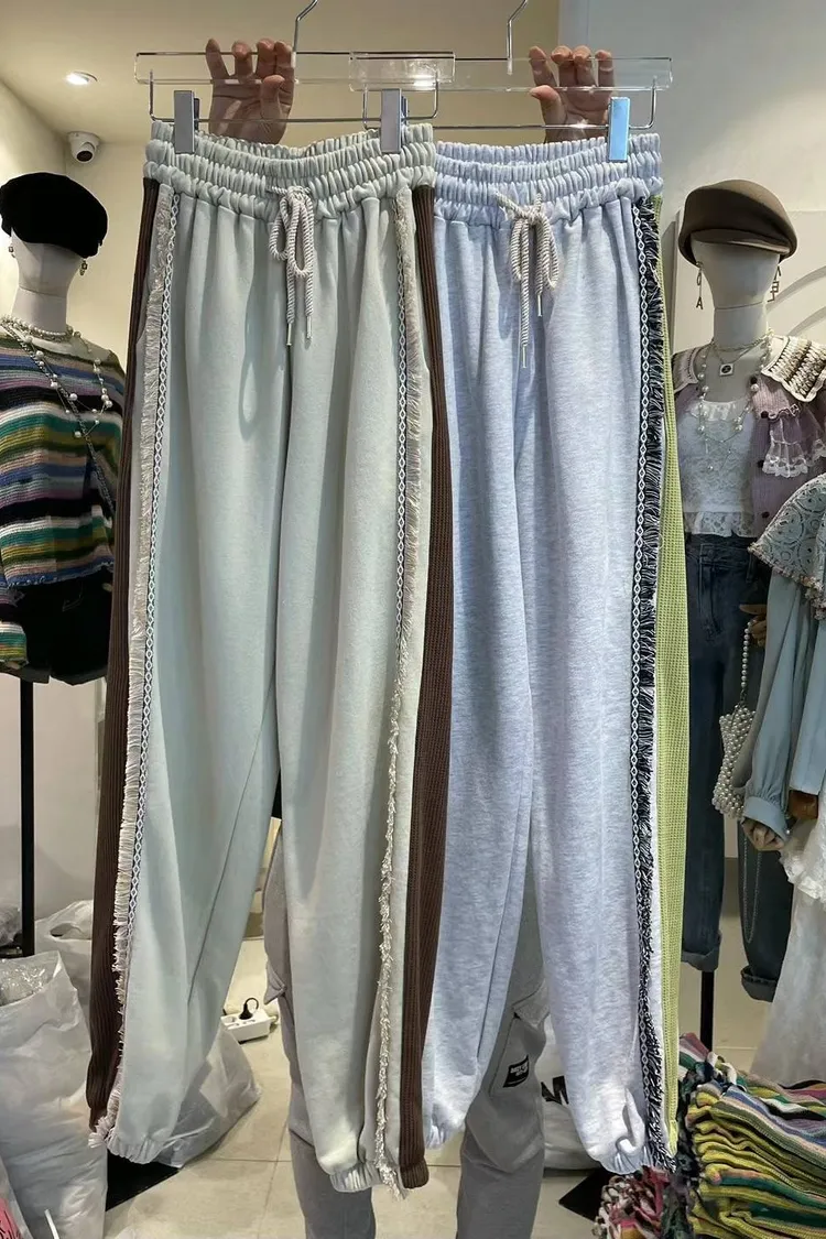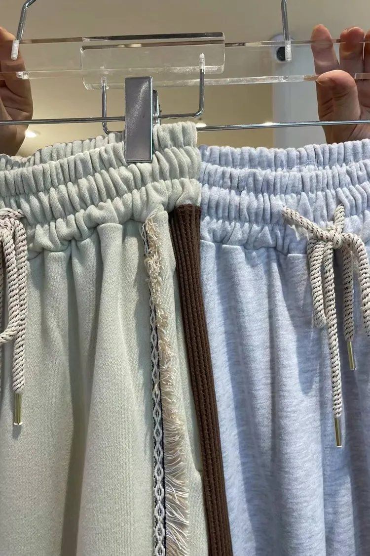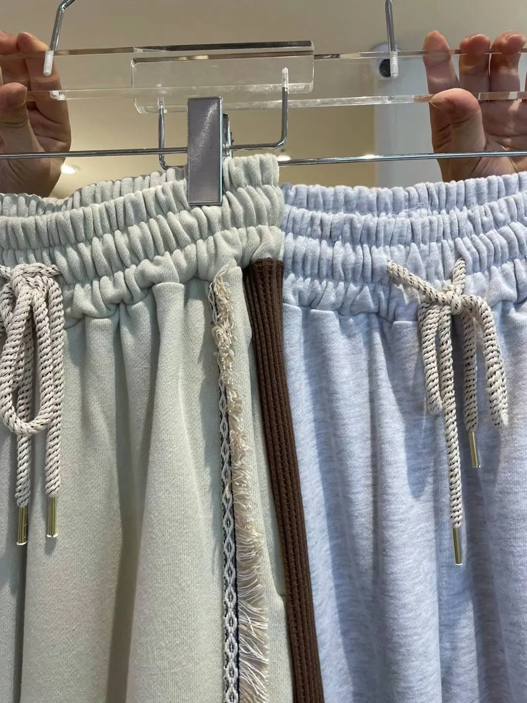 CS1065可愛抽繩拼接流蘇刺繡休閒長褲(側邊分色) 咖 綠 線上價$1220 官網價$1250