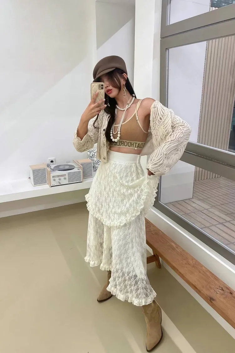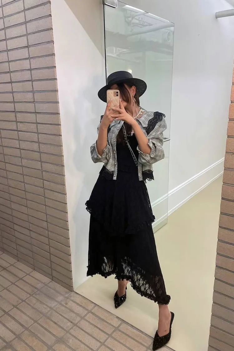 CS1067輕盈質感蕾絲裙 白 黑 線上價$1460 官網價$1490
