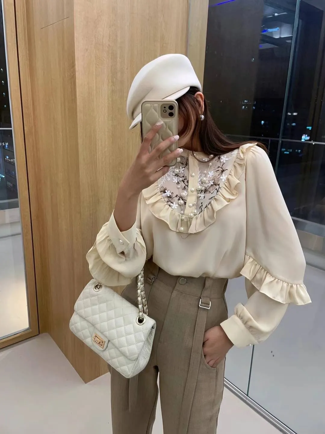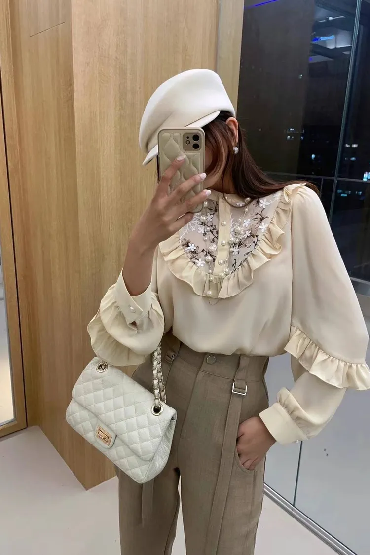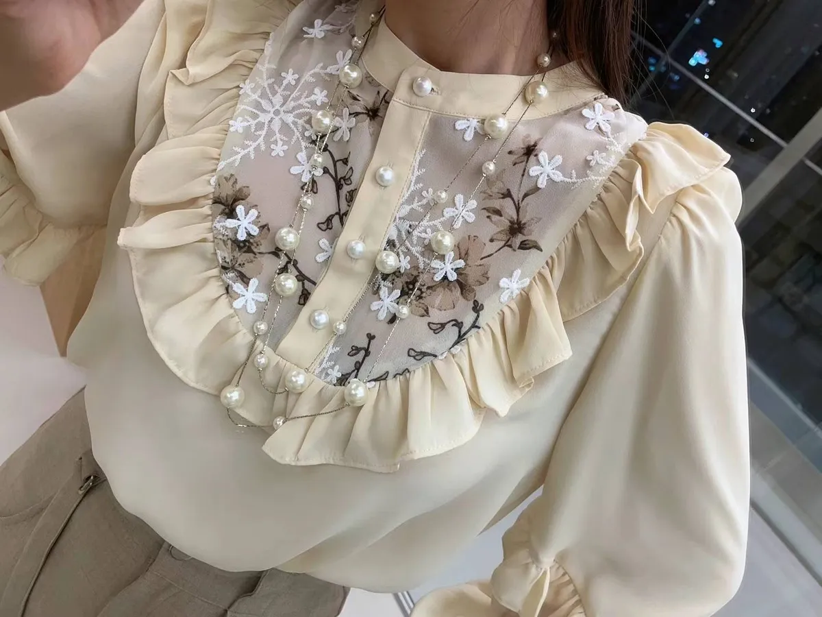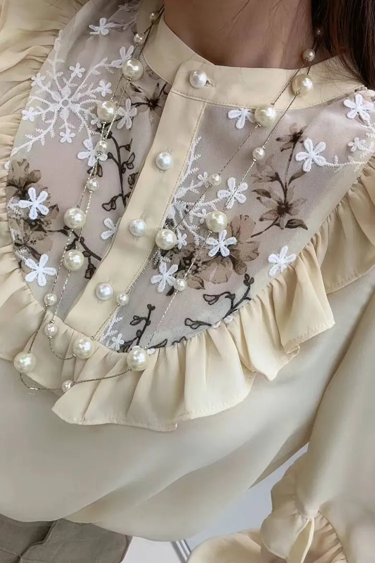 CS1075雪紡超美網紗刺繡小花美領上衣 粉 黃 線上價$1190 官網價$1220