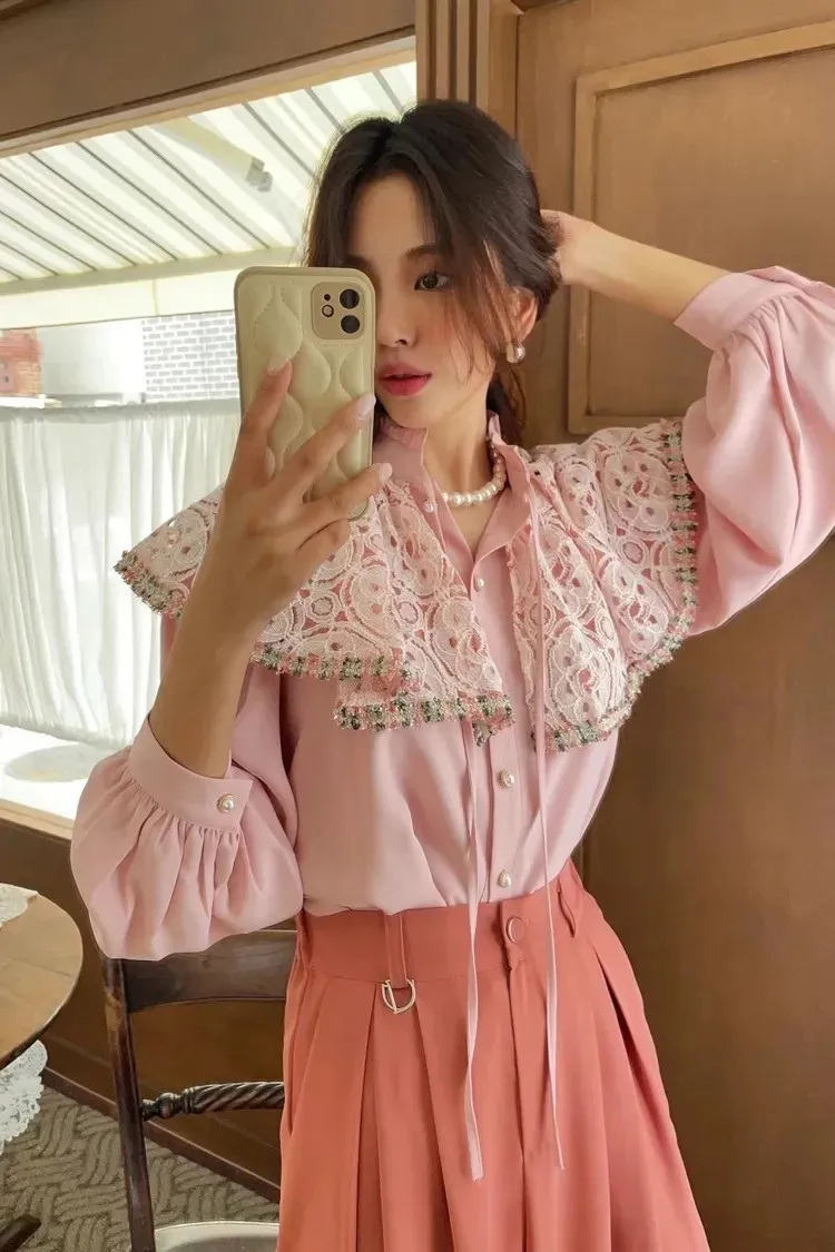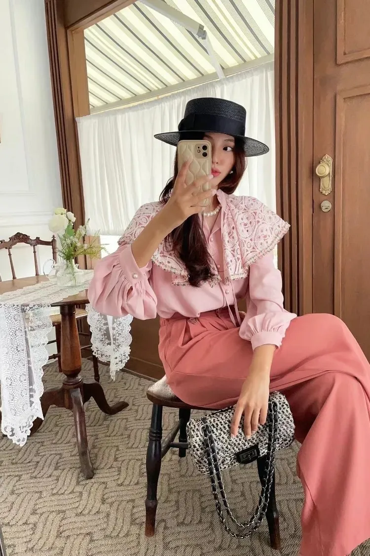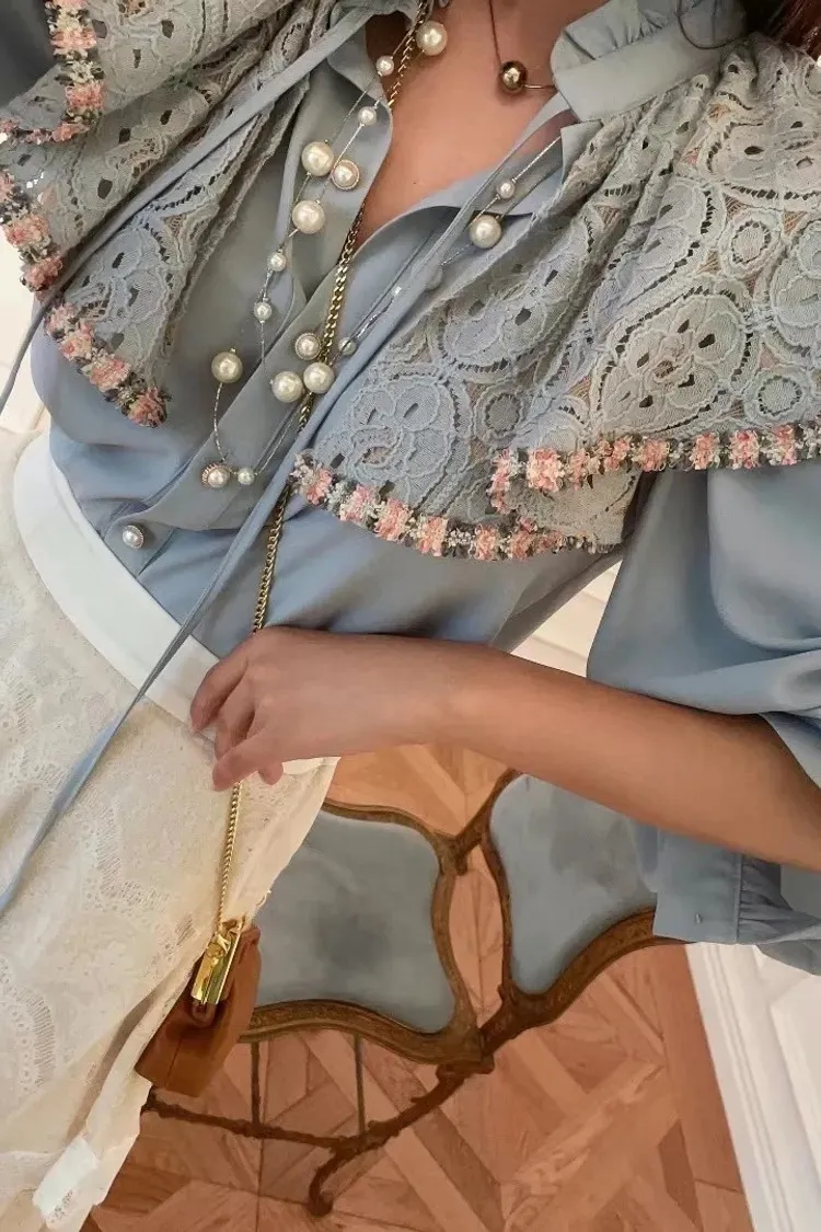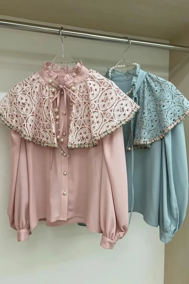 CS1076回購款雪紡拼接小斗篷美領上衣(原BA182) 粉 藍 線上價$1260 官網價$$1290