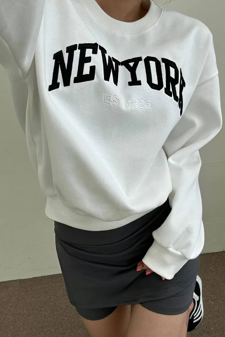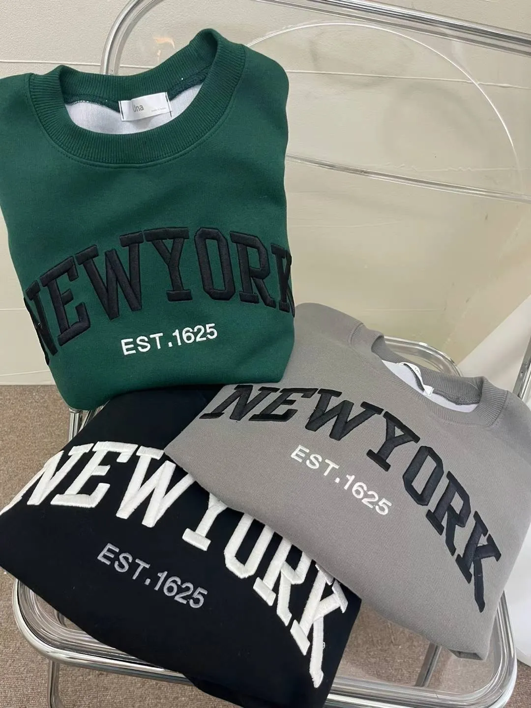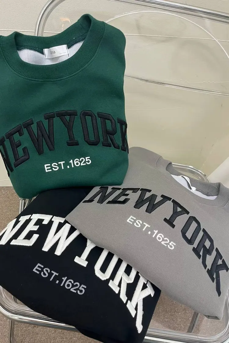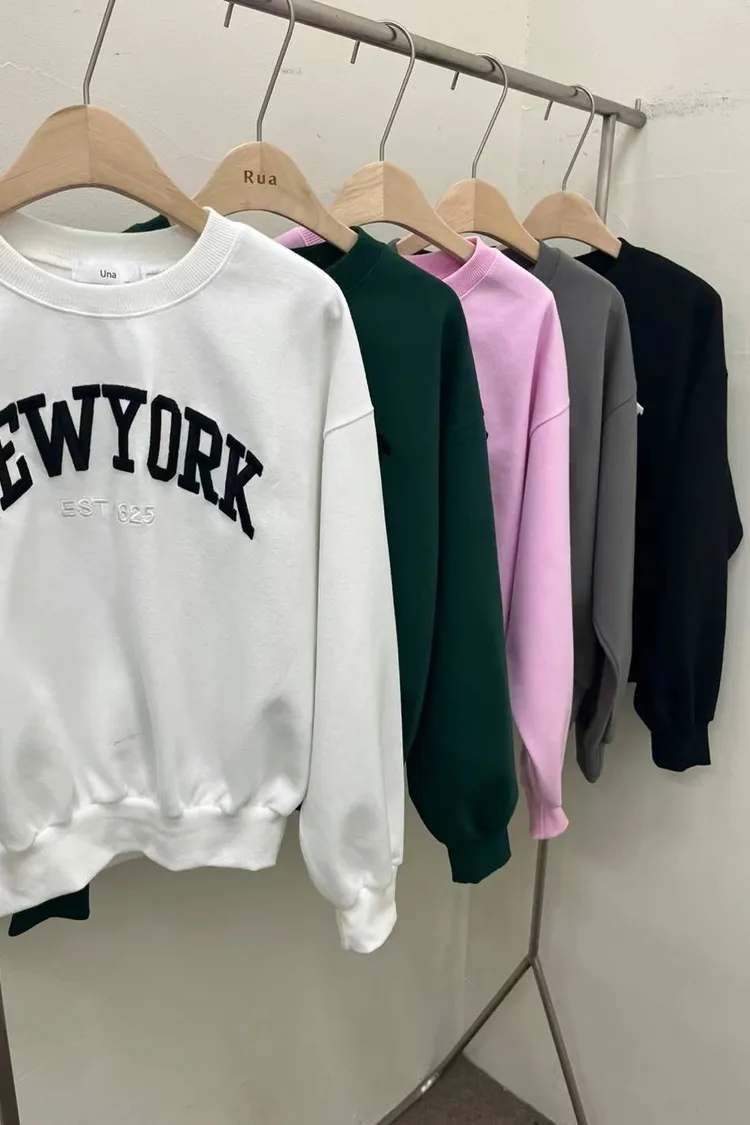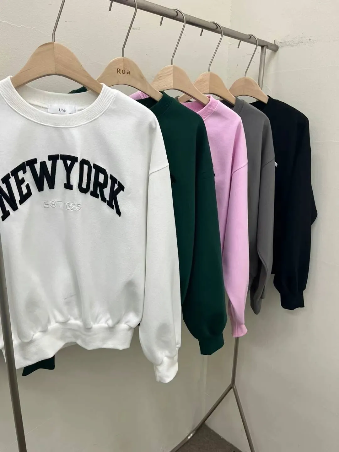 CS1080休閒質感刺繡NewYork大學T 白 綠 可可 粉 黑 線上價$550 官網價$580
