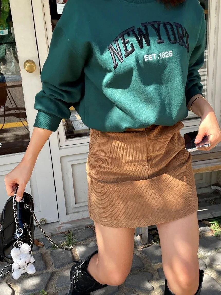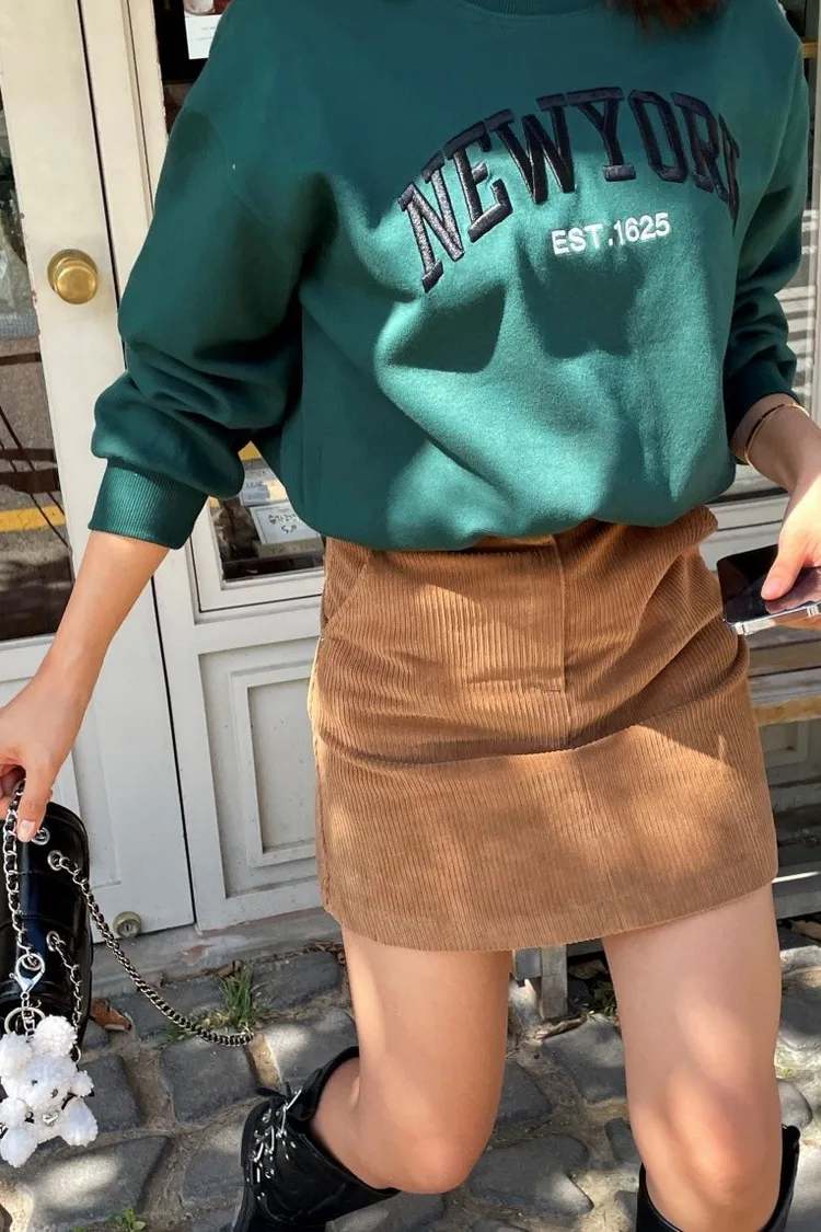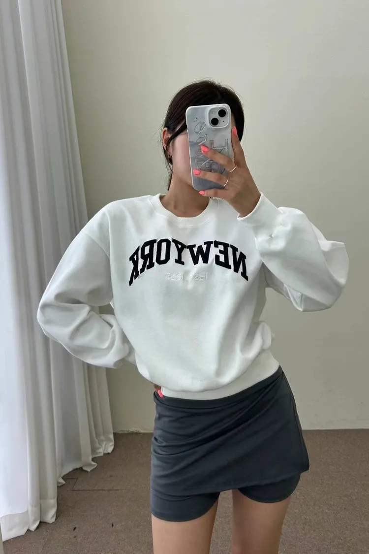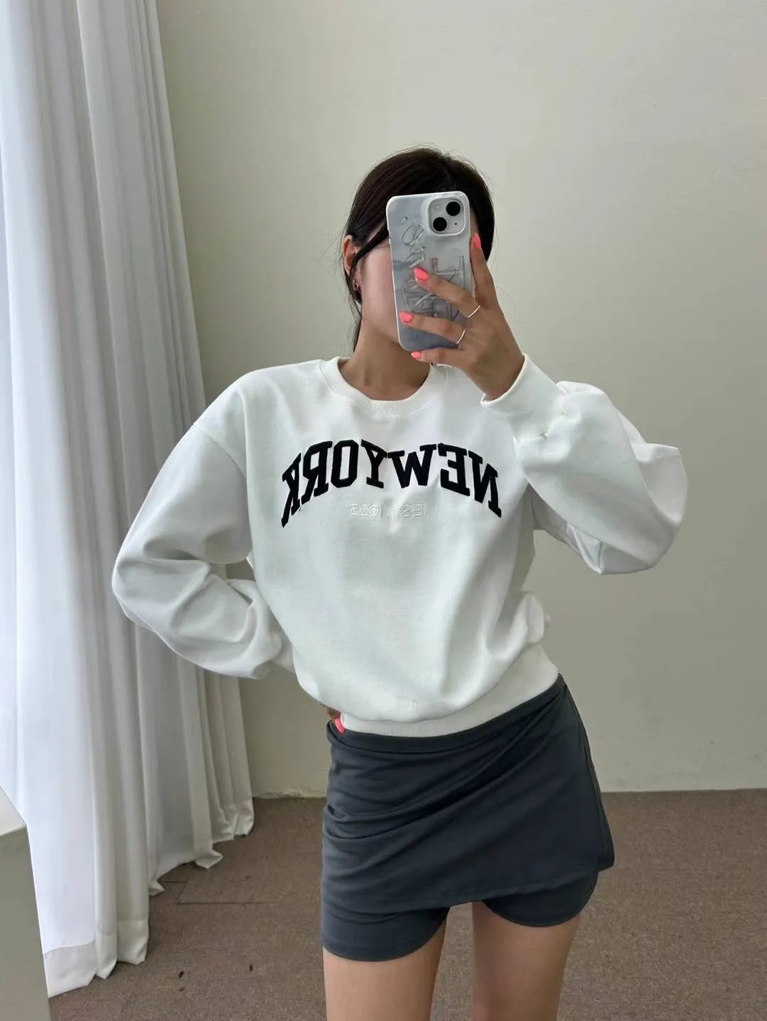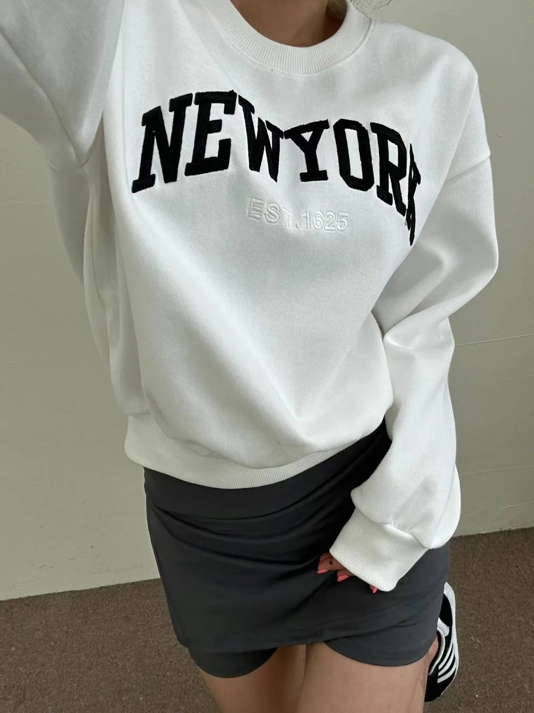 CS1080休閒質感刺繡NewYork大學T 白 綠 可可 粉 黑 線上價$550 官網價$580