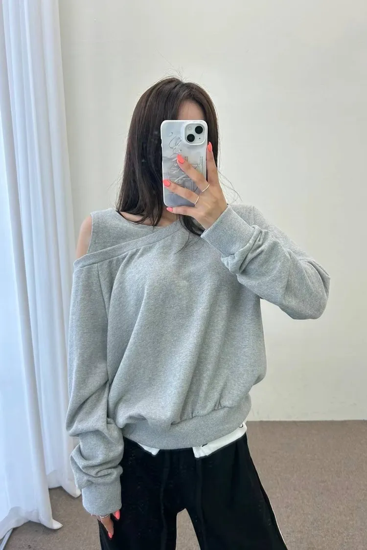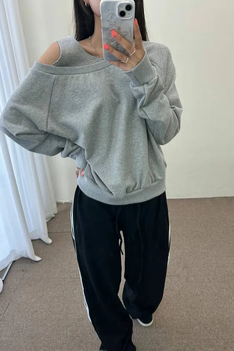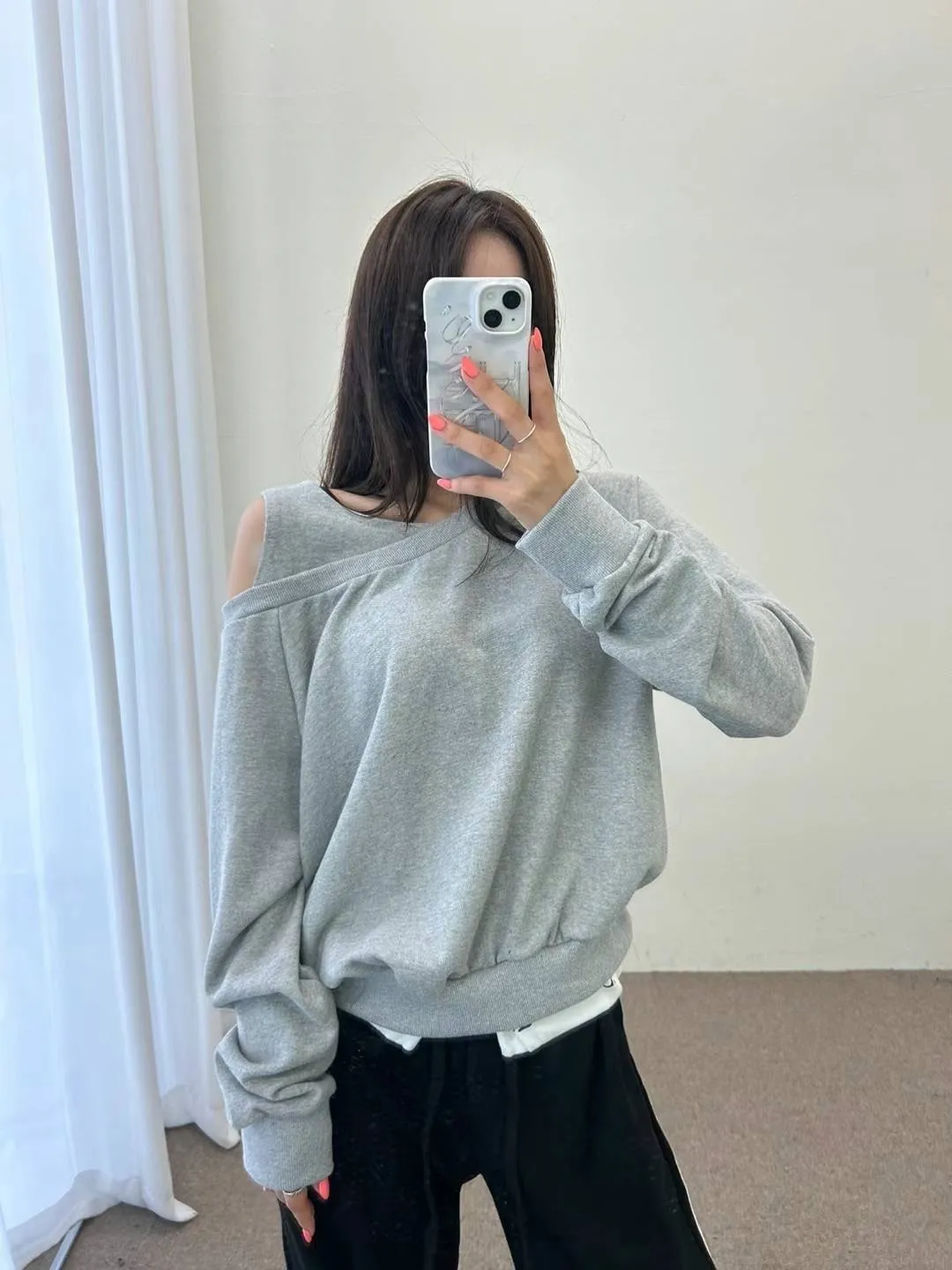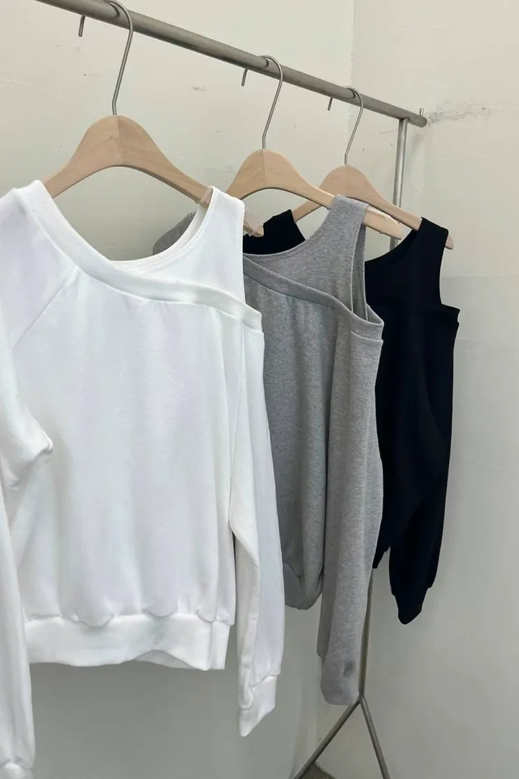 CS1084不對稱小露肩設計款大學T 白 灰 黑 線上價$469 官網價$499