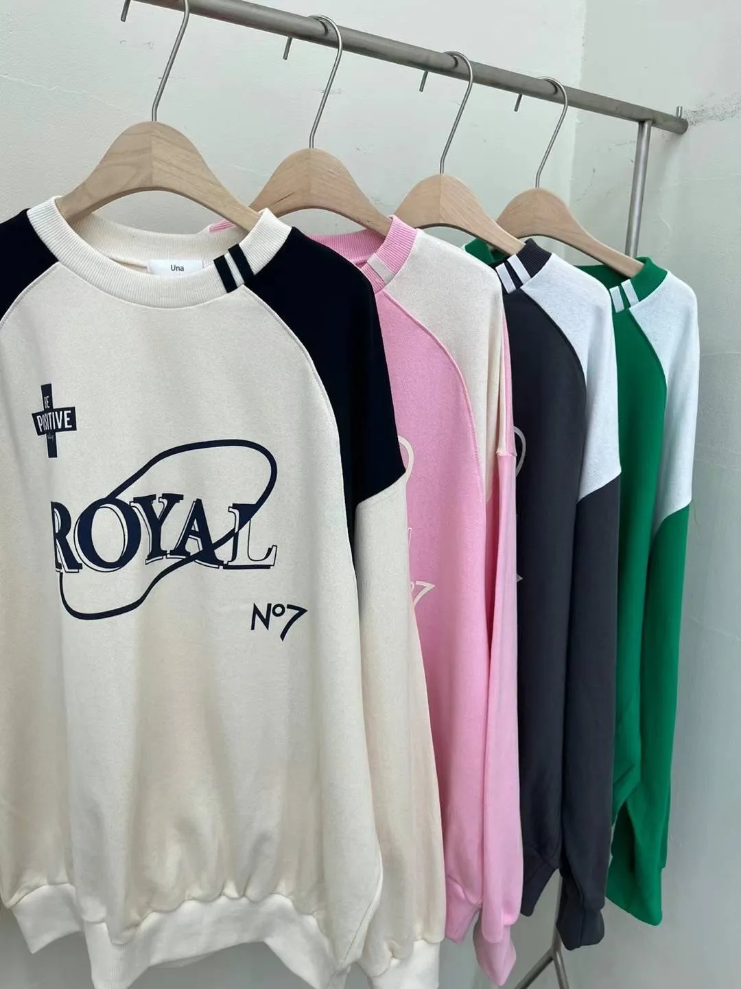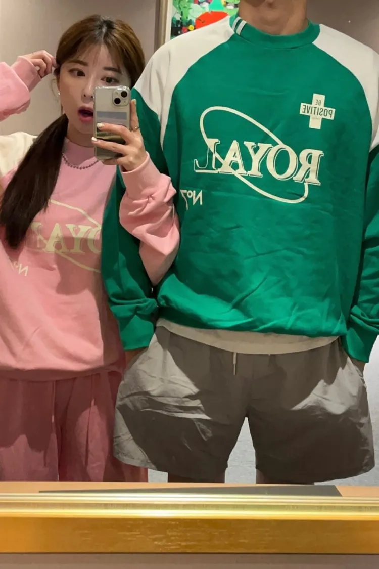 CS1086拚接色Royal大學T(中間分色) 米 粉 綠 灰 線上價$560 官網價$590