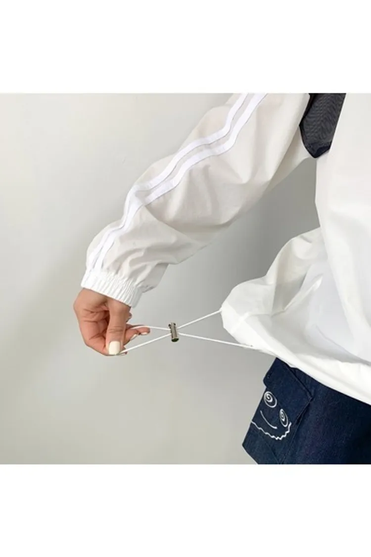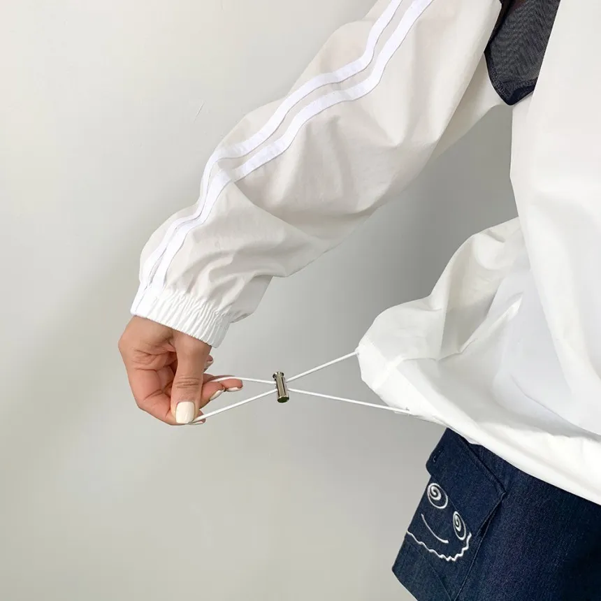 聚酯 超薄款 透膚手袖設計 腰下擺抽繩 性感休閒運動風 手袖鬆緊