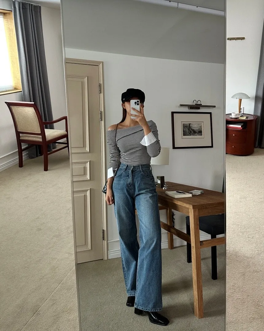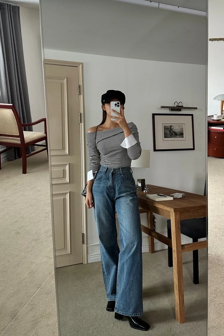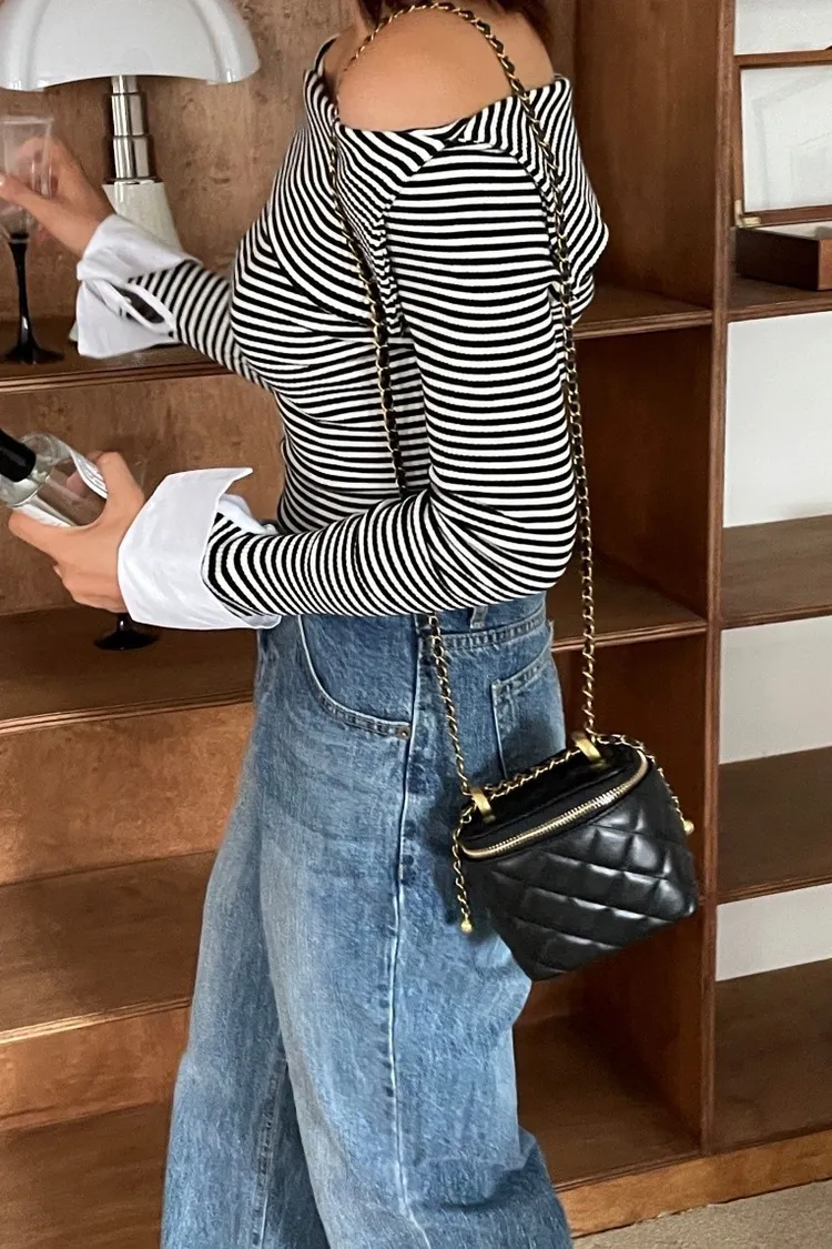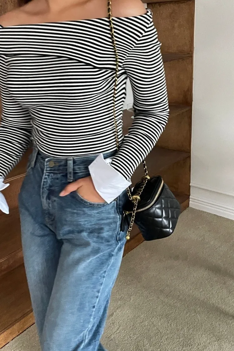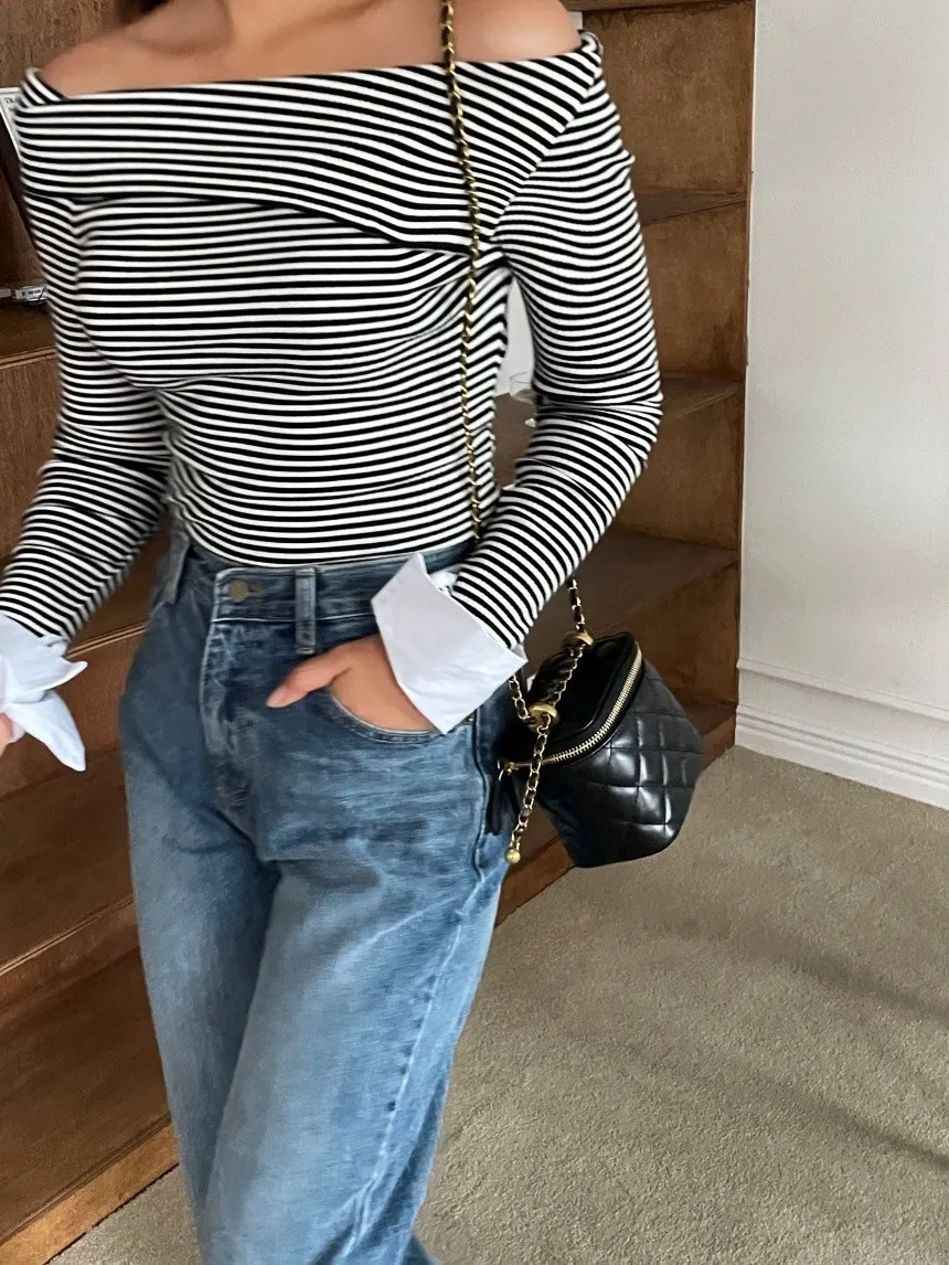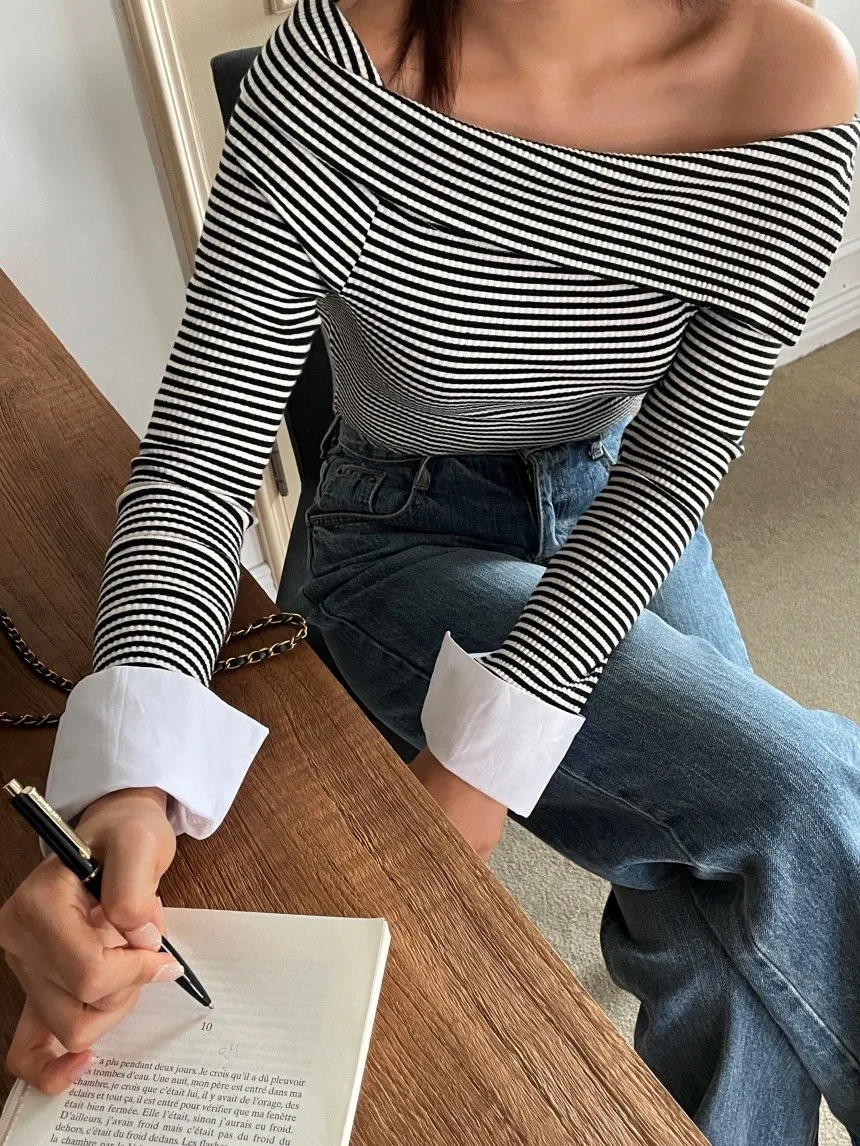 CS1094一字翻領條紋好身材上衣 紅 黑 線上價$530 官網價$560