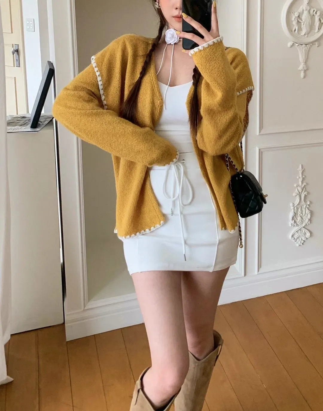 CS1114秋款飄逸水手大翻領小外套 白 黃 粉 咖 線上價$1120 官網價$1160