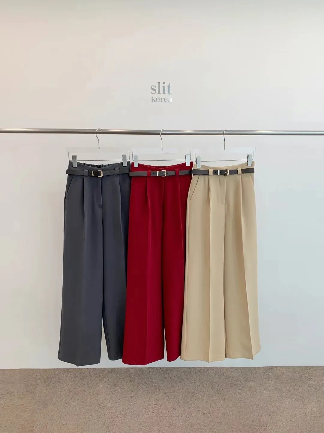 CS1121 舒適寬寬長褲(附皮帶) 灰 紅 卡其 線上價$1220 官網價$1250