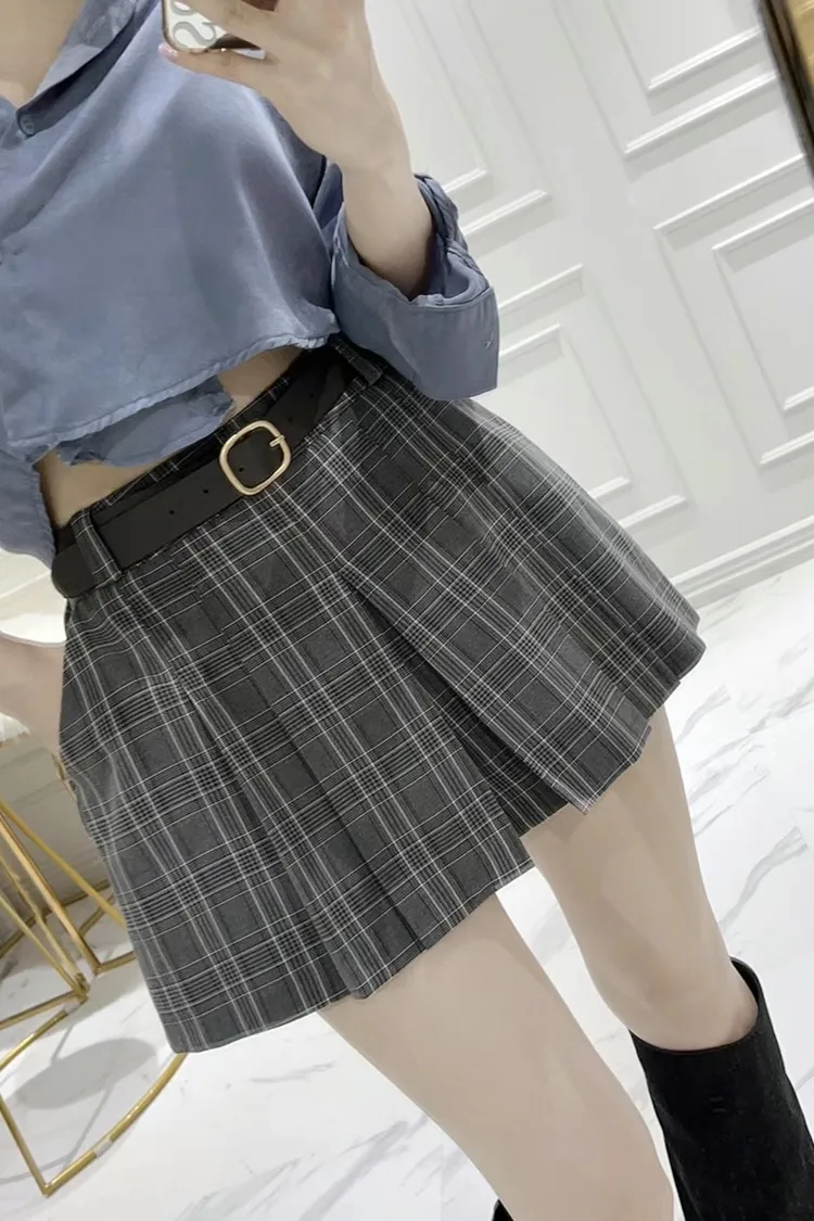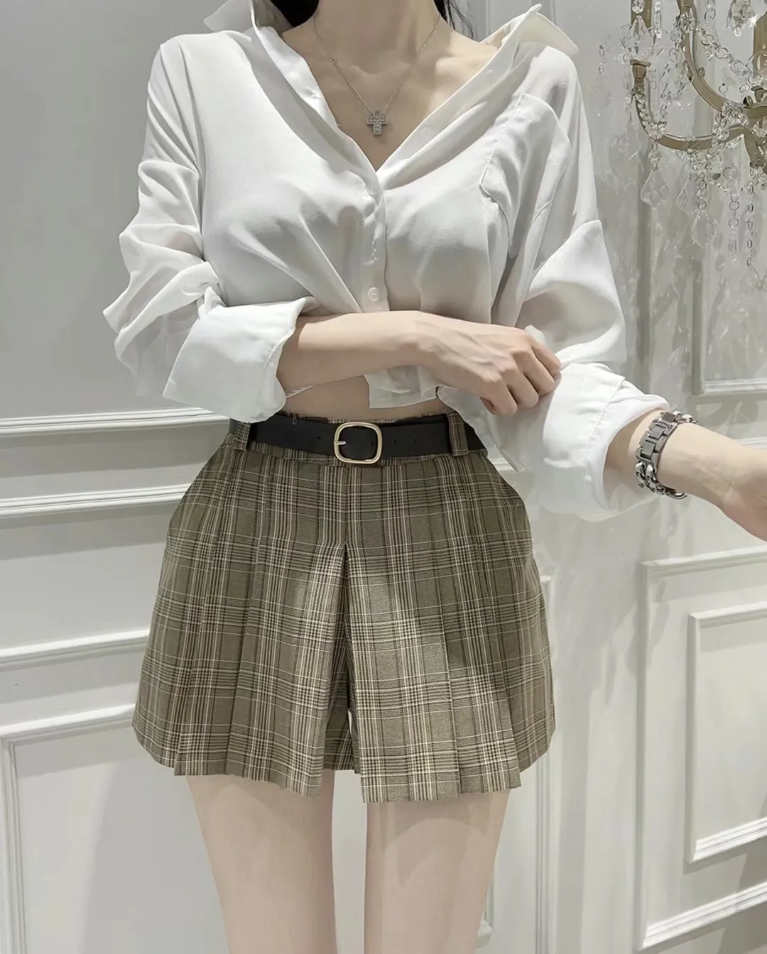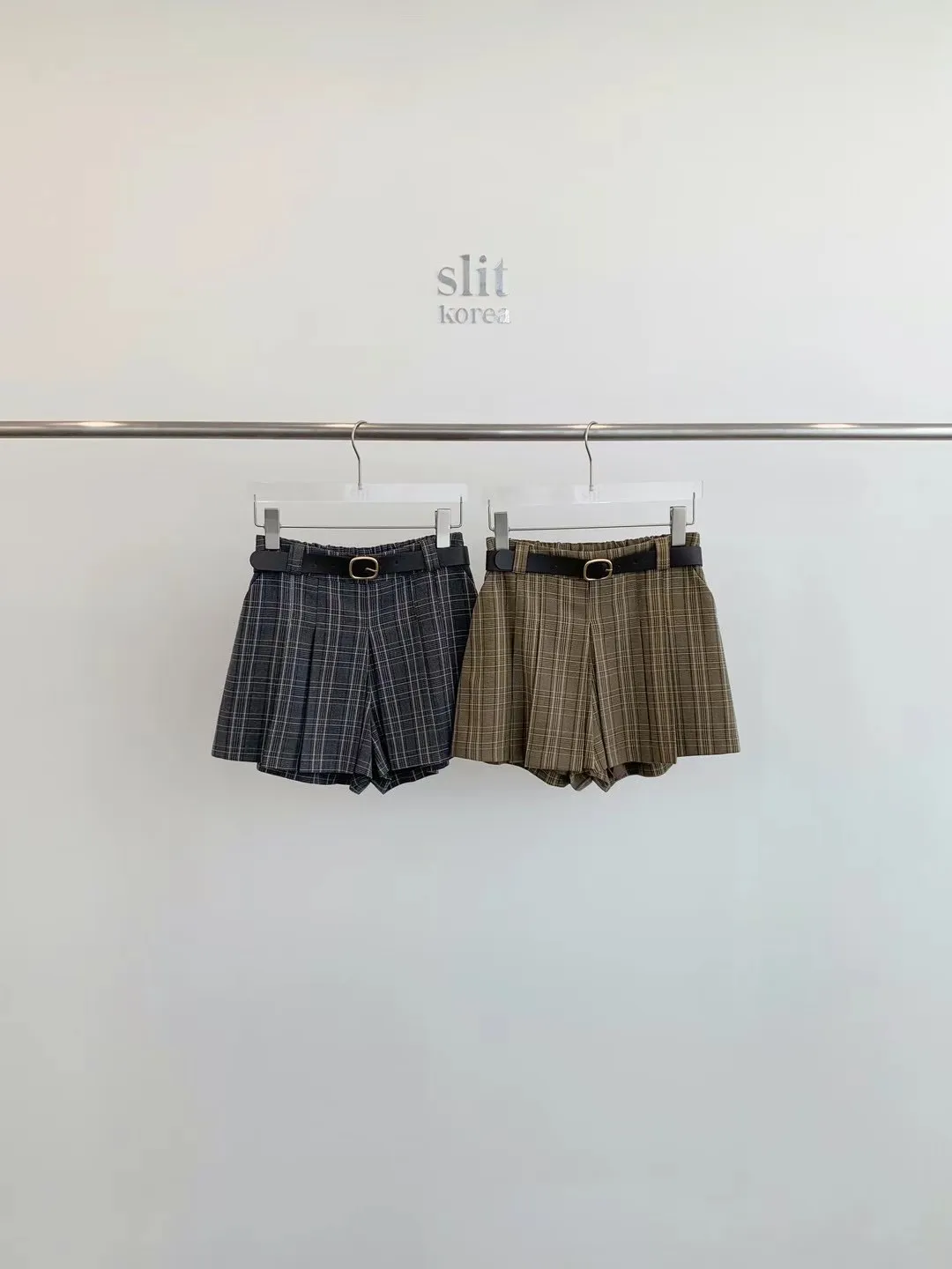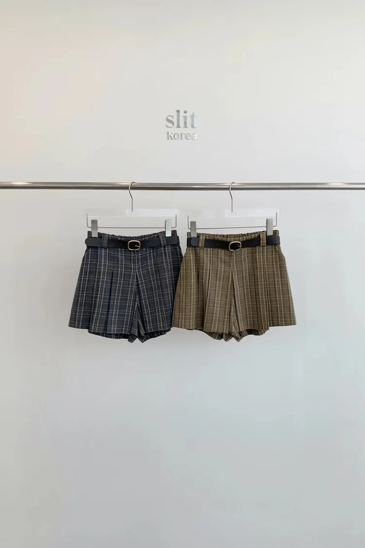 CS1124質感格紋短褲(附皮帶) 灰 奶茶 線上價$1160 官網價$1190