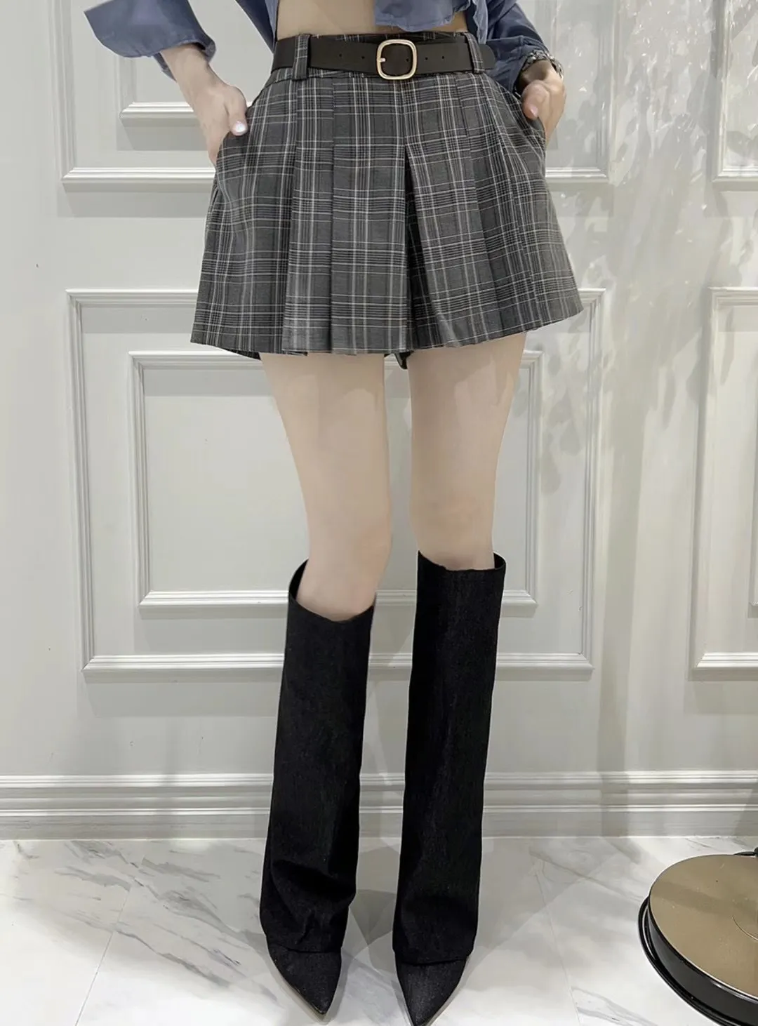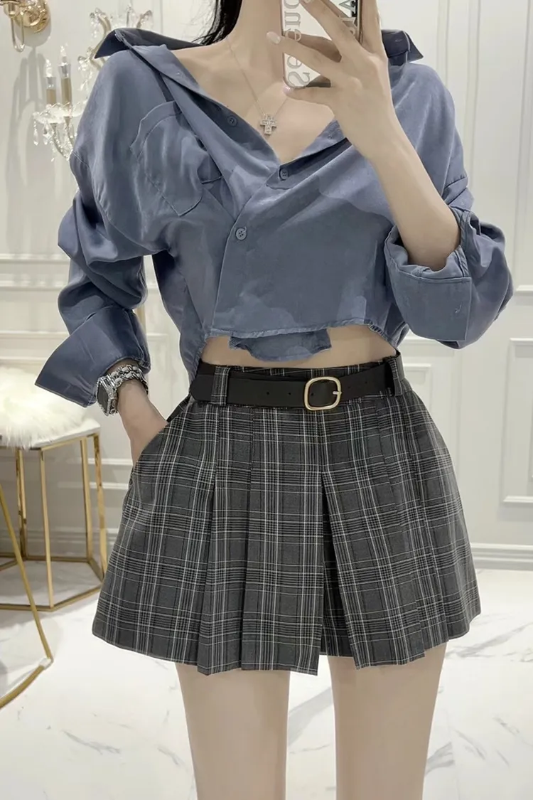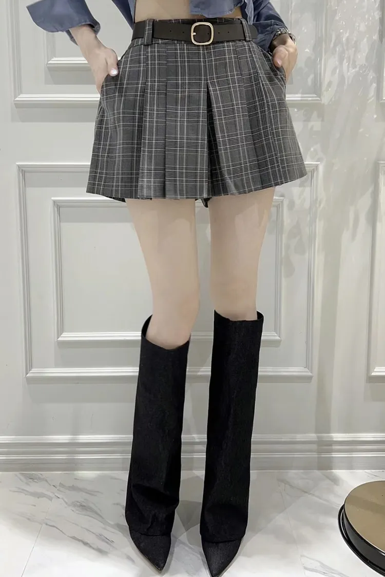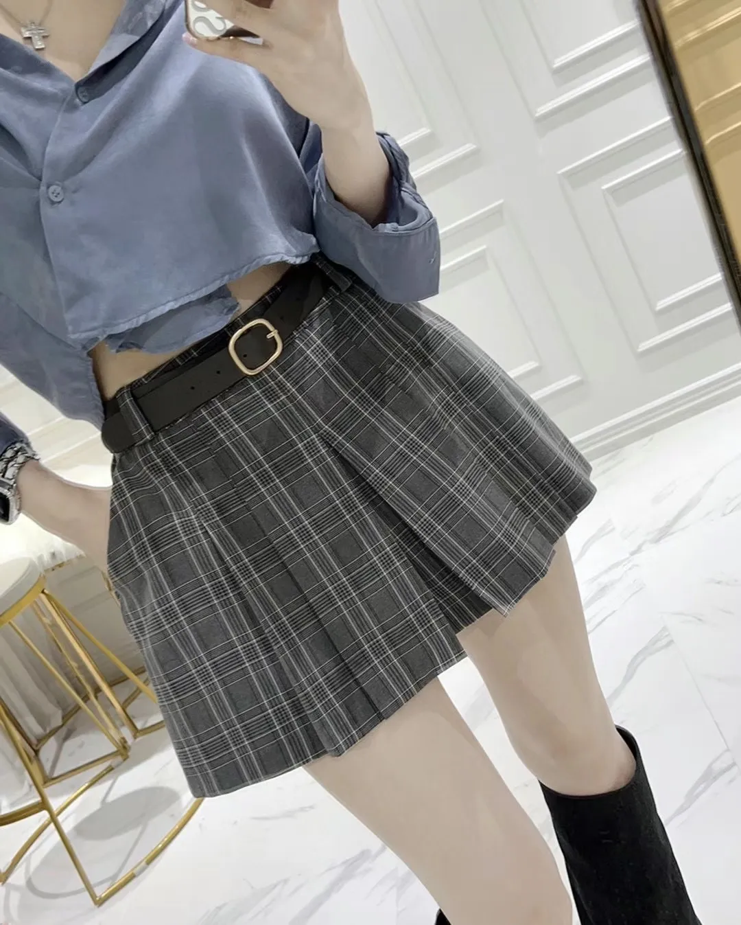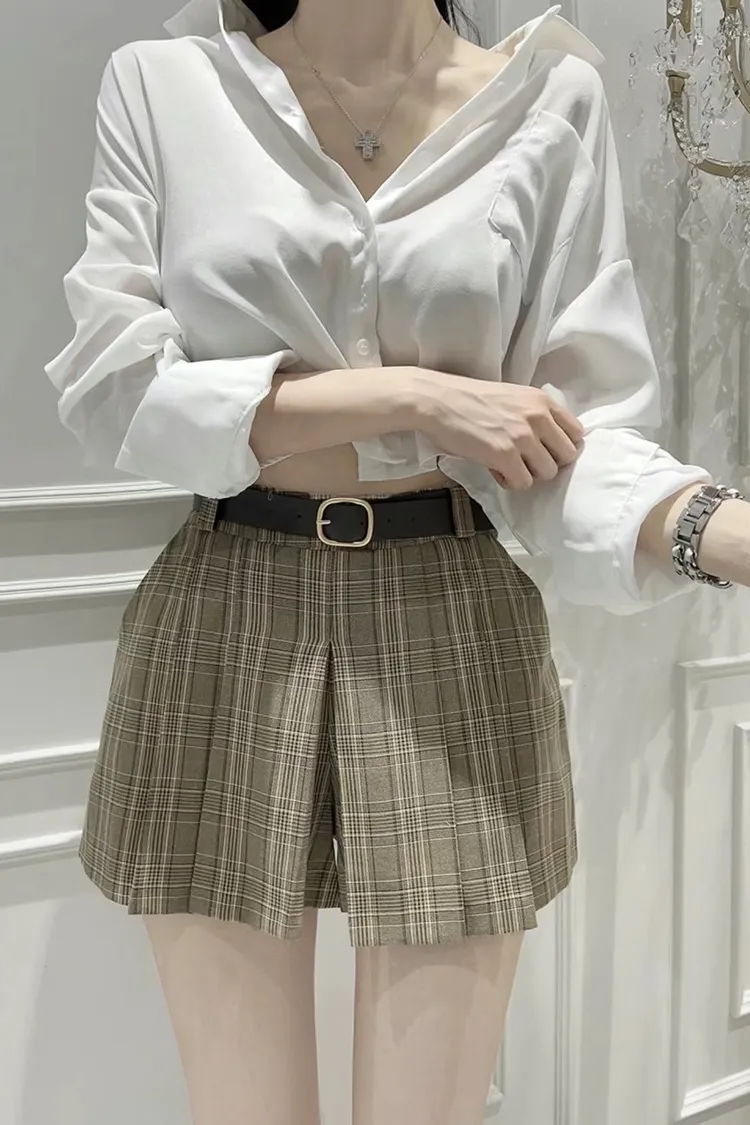 CS1124質感格紋短褲(附皮帶) 灰 奶茶 線上價$1160 官網價$1190