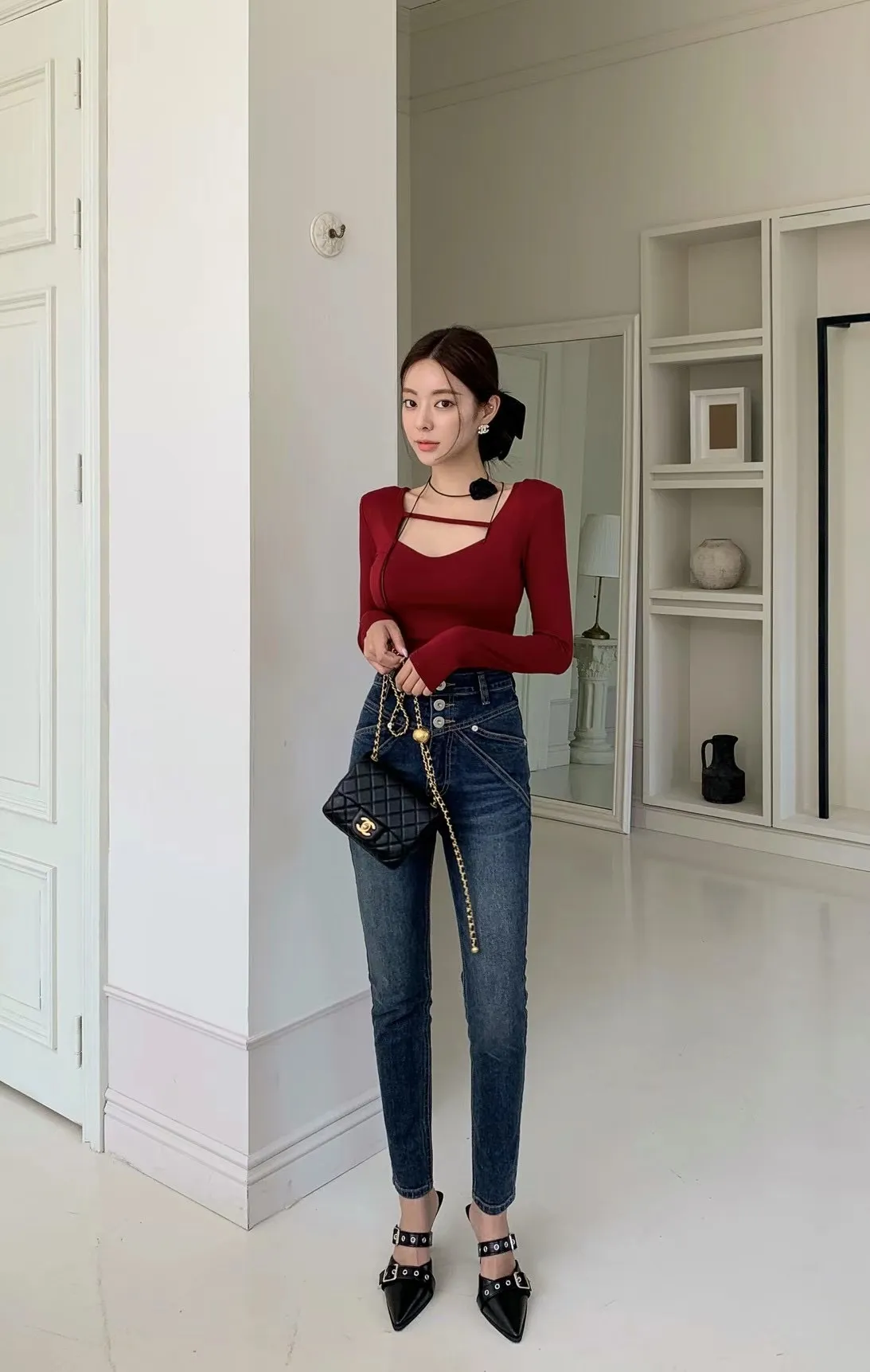 CS1128細腿合身款三釦牛仔長褲 S M L 線上價$1140 官網價$1170