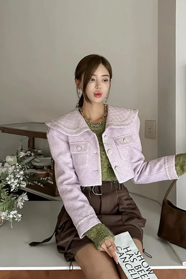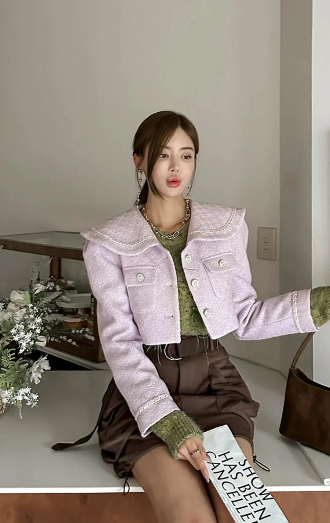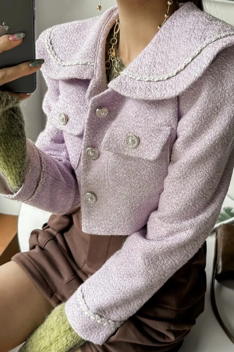 CS1129大翻領小香風短版外套 米 紫 線上價$2190 官網價$2220