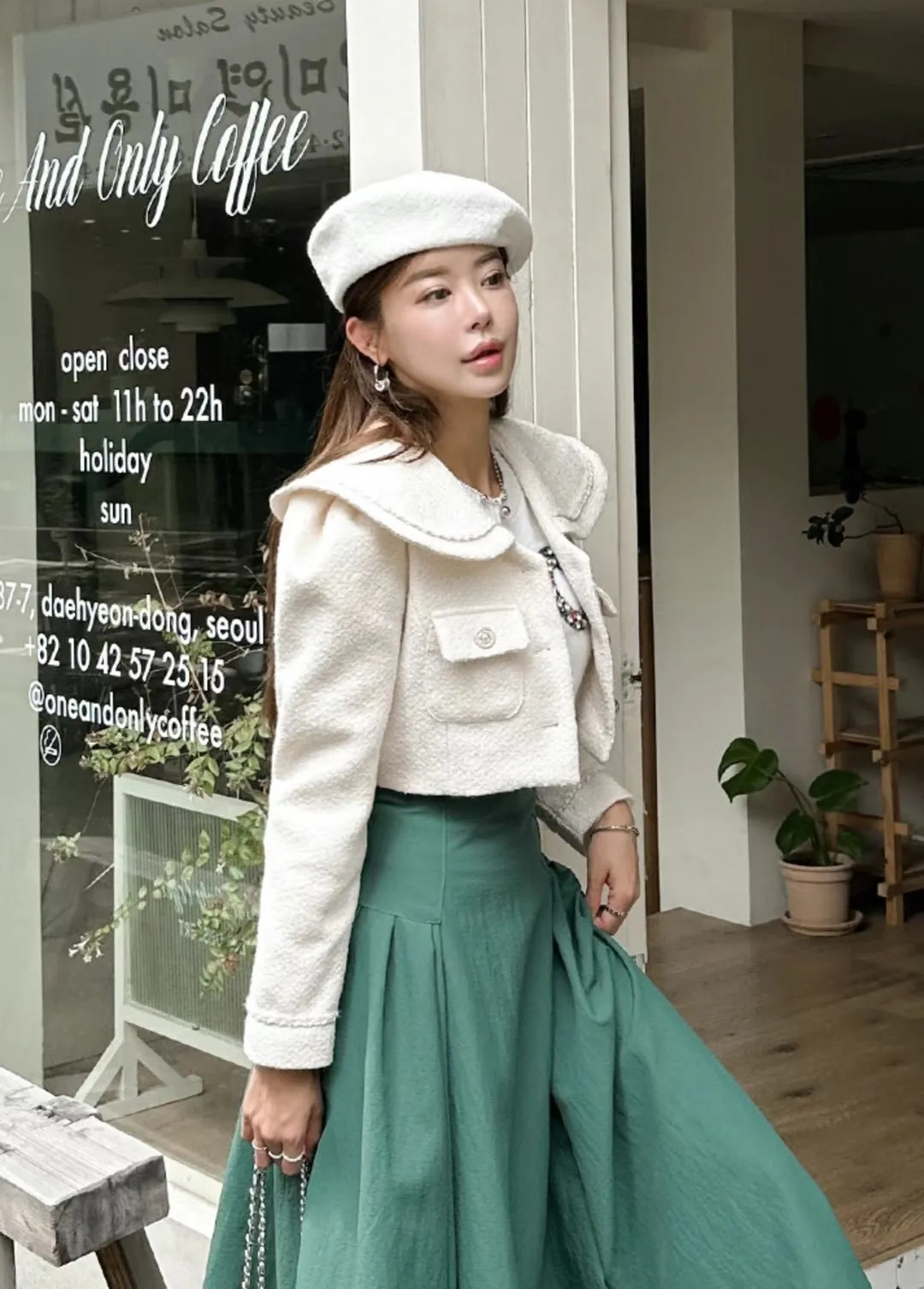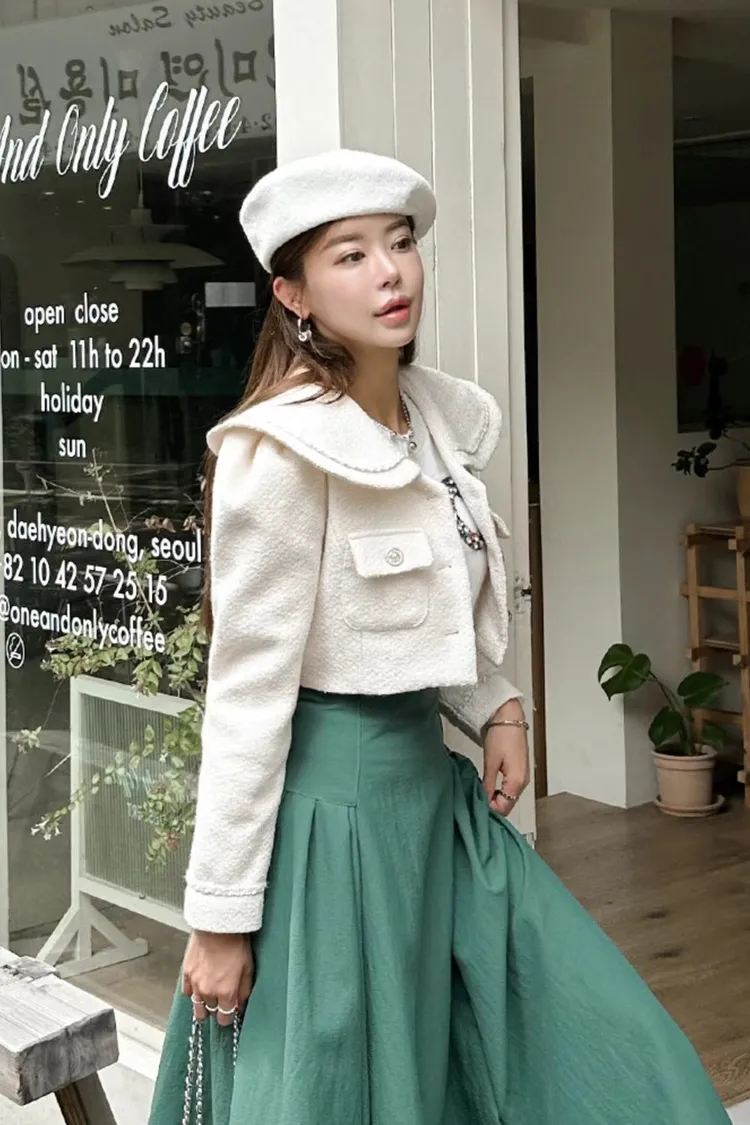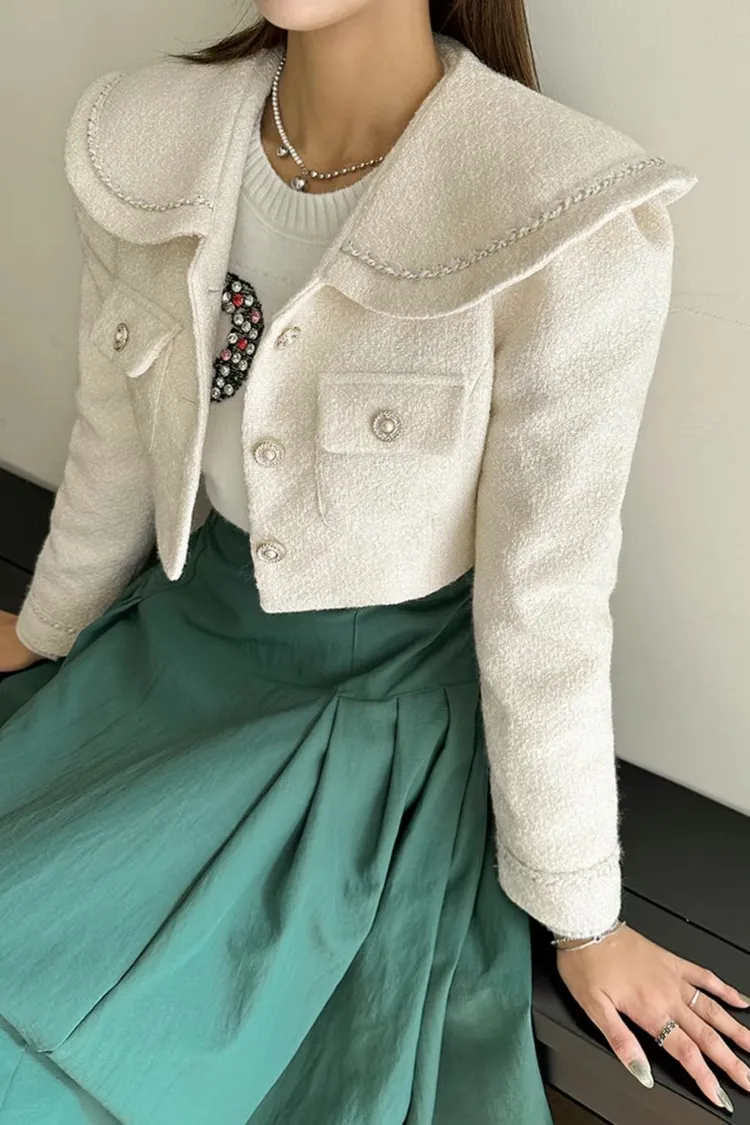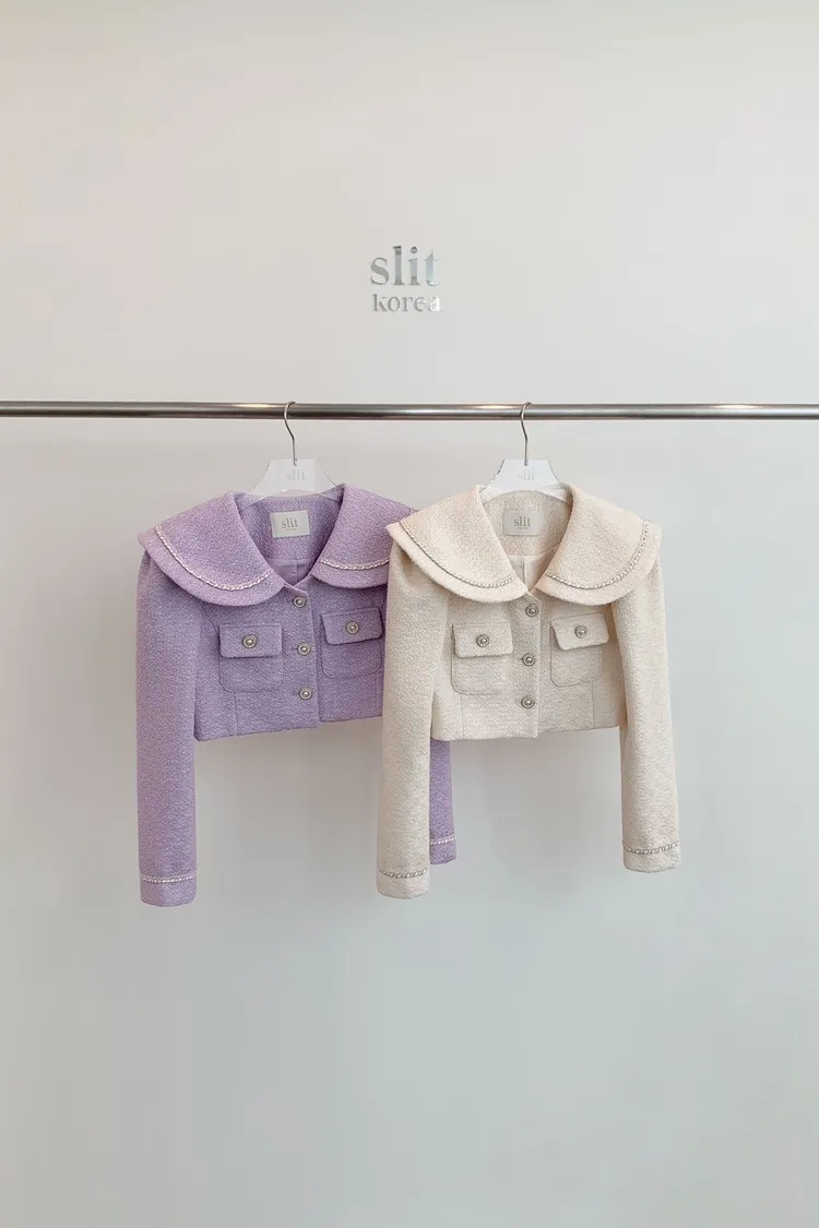 CS1129大翻領小香風短版外套 米 紫 線上價$2190 官網價$2220