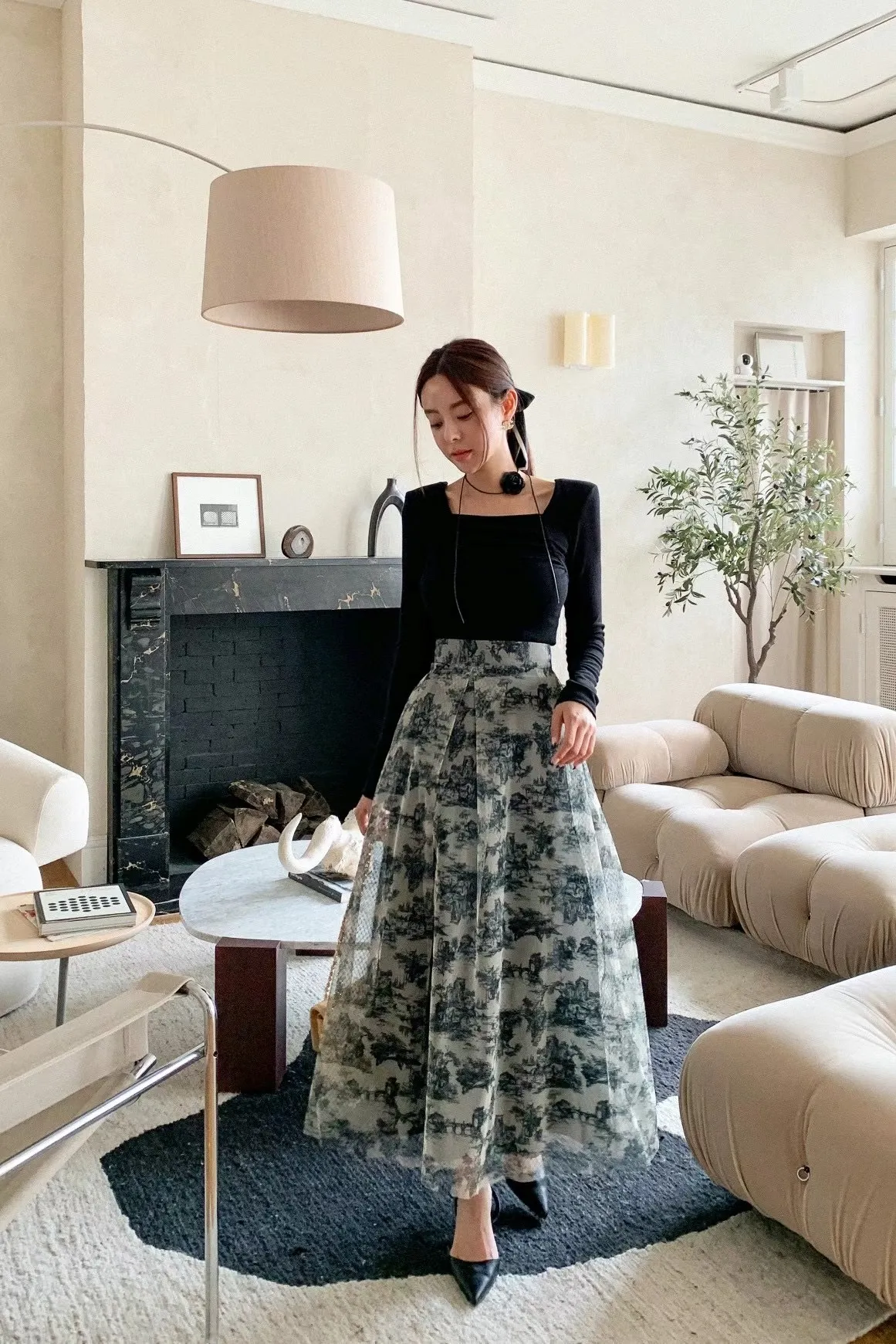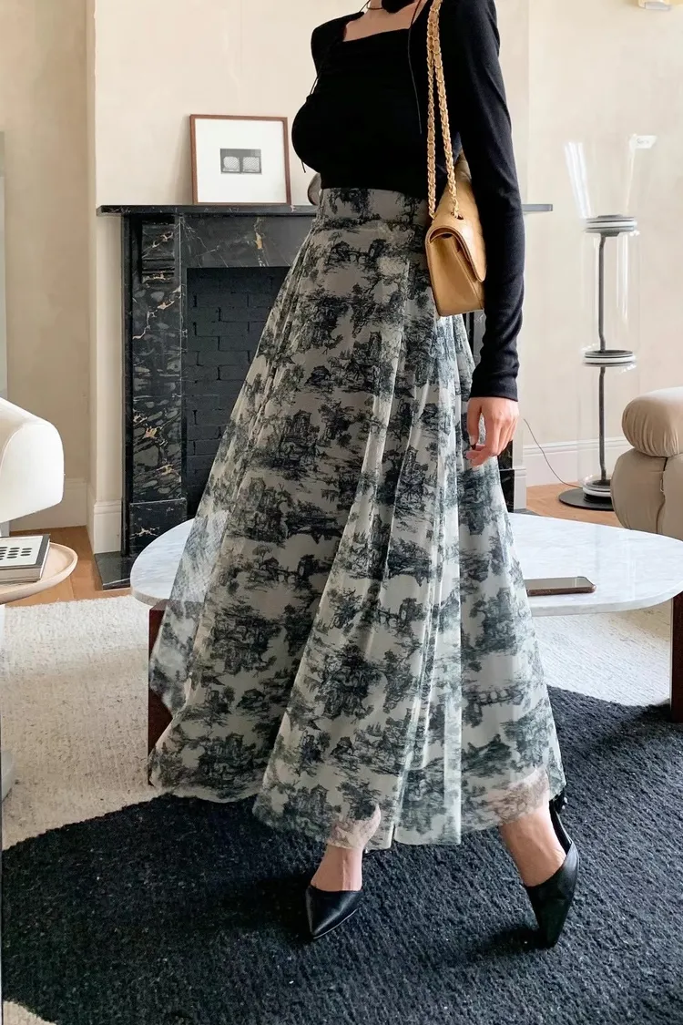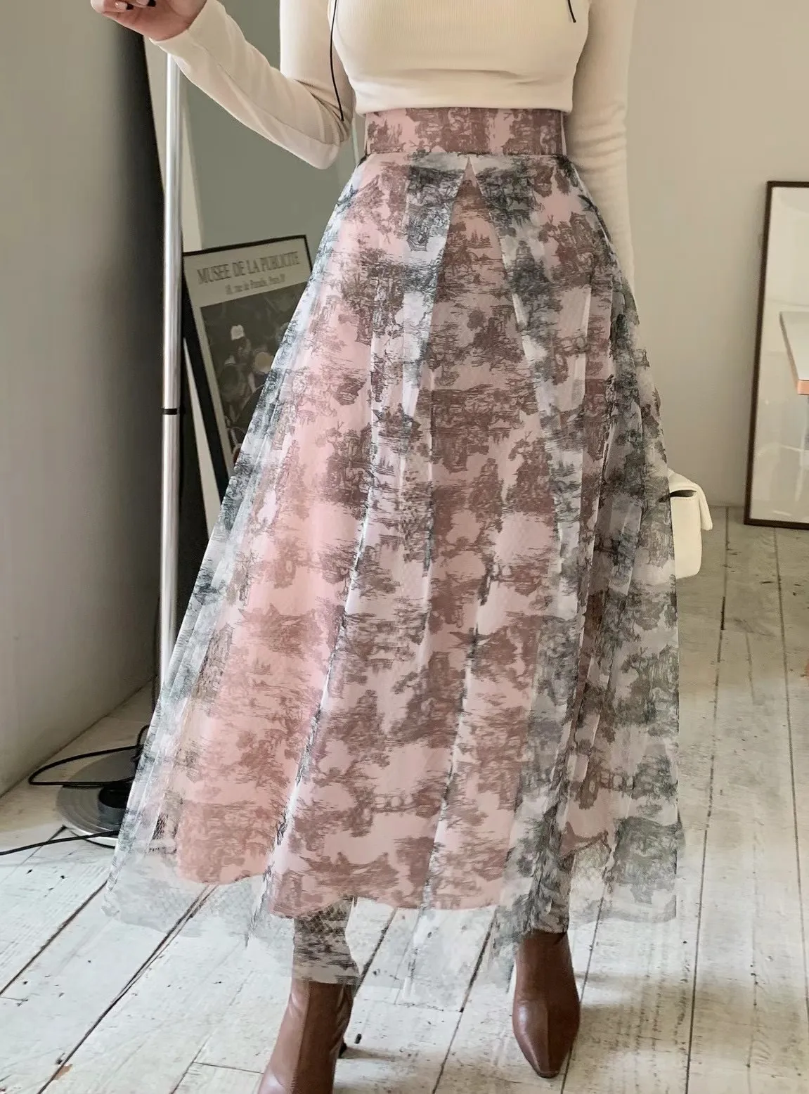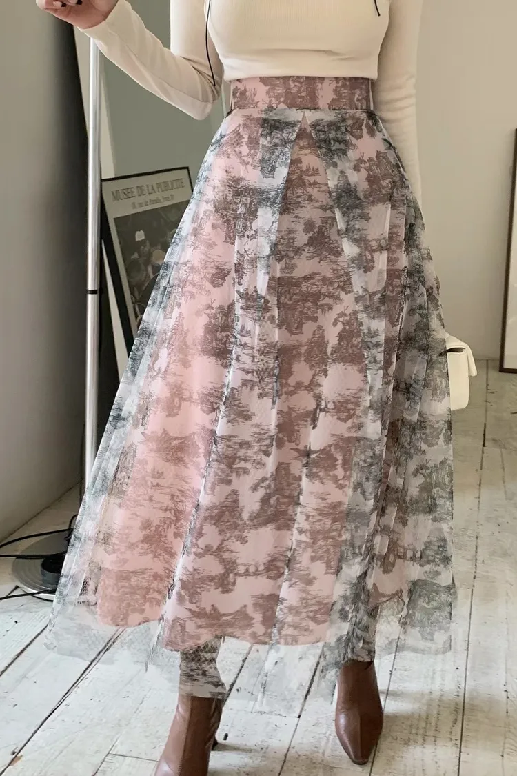 CS1132復古潑墨輕盈紗裙 黑 粉 線上價$1450 官網價$1480