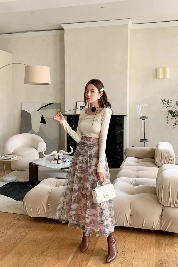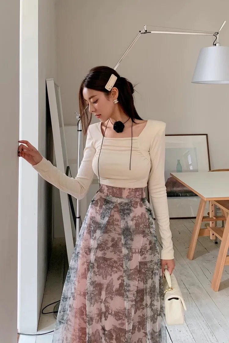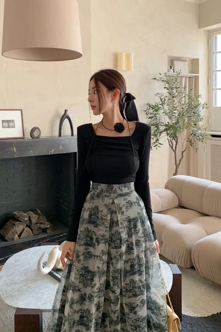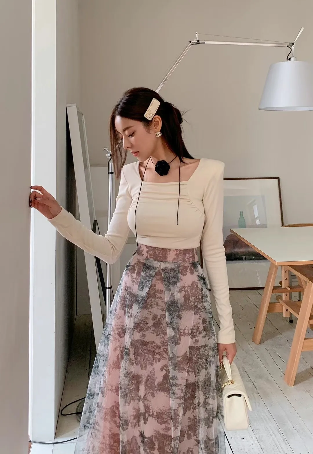 CS1132復古潑墨輕盈紗裙 黑 粉 線上價$1450 官網價$1480