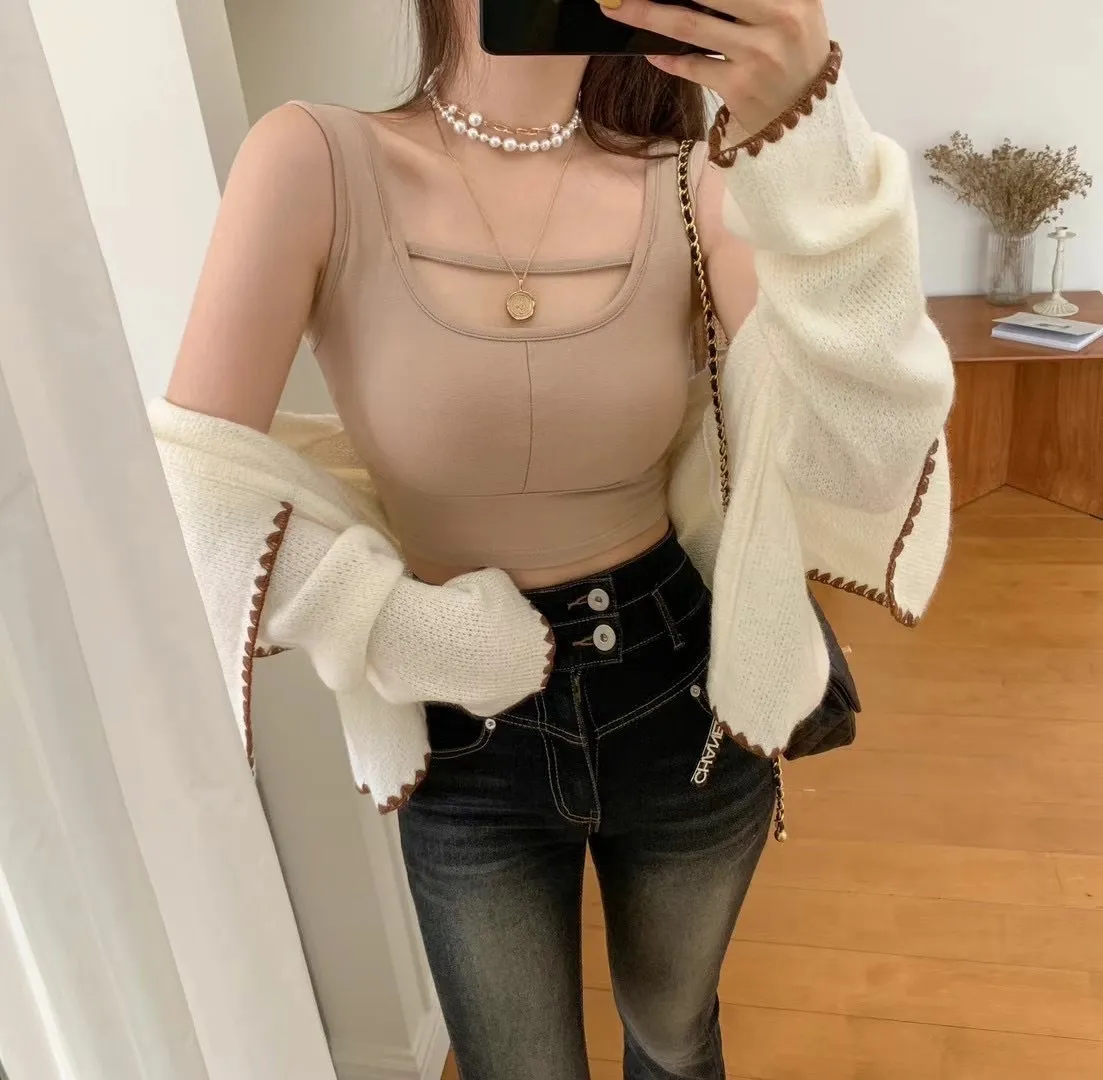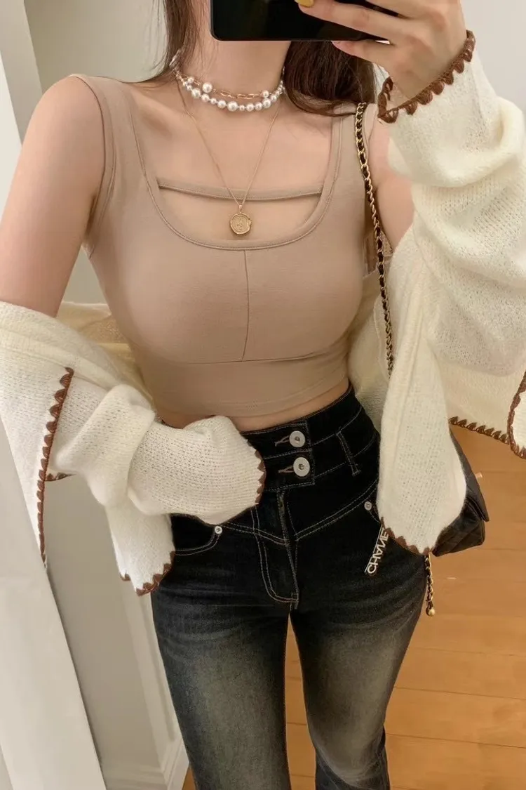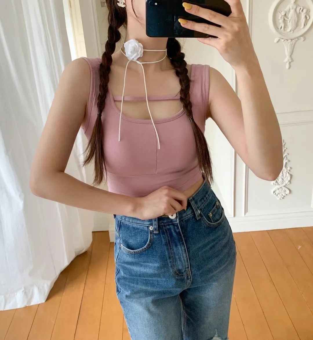 CS1137單線條簍胸小性感背心 白 綠 粉 黑 奶茶 線上價$560 官網價$590
