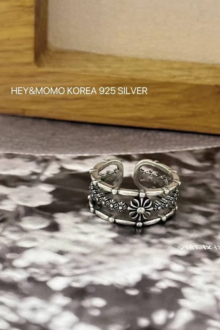 CS134復古寬版三層簍空克羅心純銀925可調式戒指 線上價$530 官網價$550