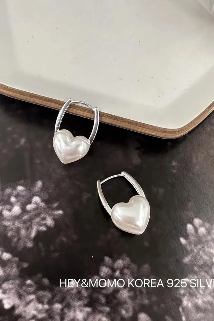 CS135愛心立體珍珠純銀925耳環