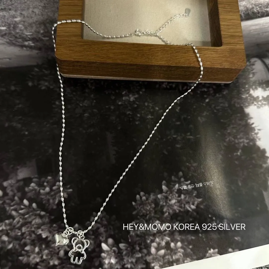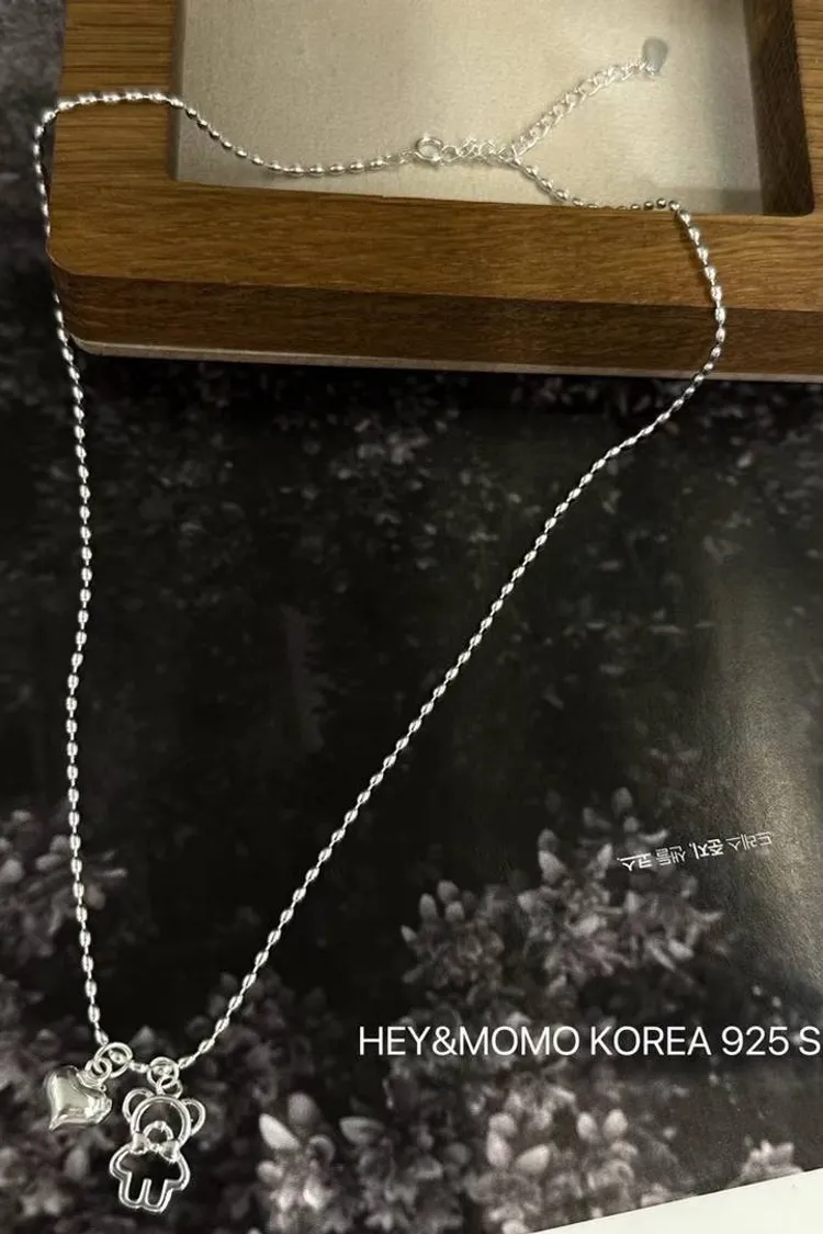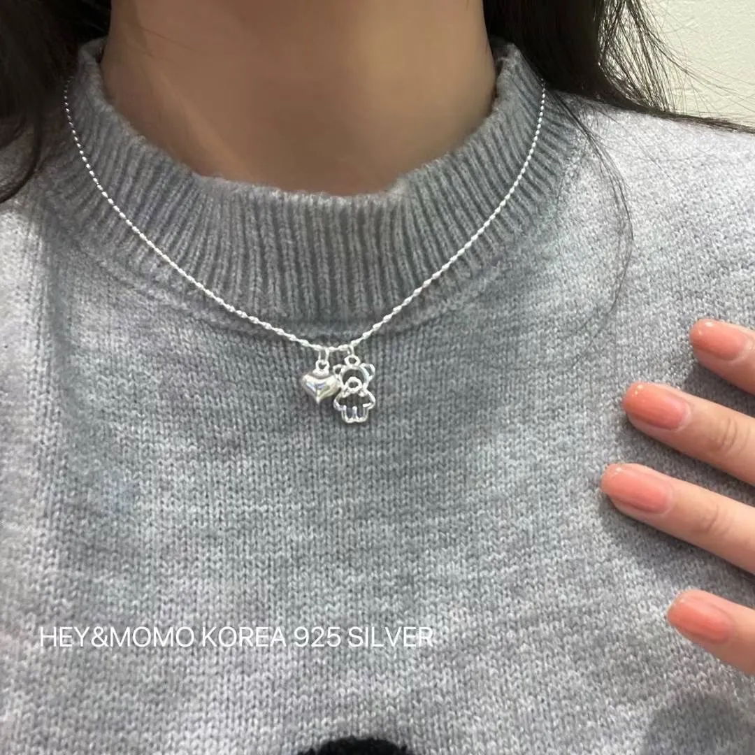 CS143簍空熊熊鑲嵌愛心純銀925項鍊